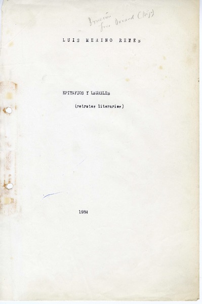 Epitafios y laureles: (Retratos literarios) [manuscrito] Luis Merino Reyes.