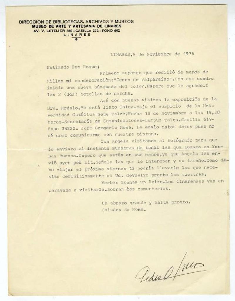 Linares, Chile [a] Roque Esteban Scarpa Carta, 1976 noviembre 5, [manuscrito] Pedro Olmos.