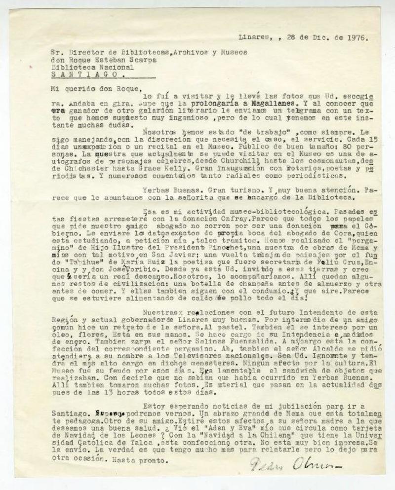 Linares, Chile [a] Roque Esteban Scarpa Carta, 1976 diciembre 28, [manuscrito] Pedro Olmos.