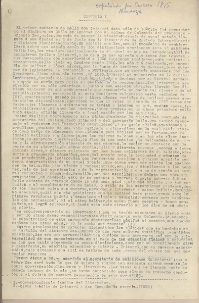 [El primer contacto de Bello con Irisarri...] [manuscrito] Guillermo Feliú Cruz.
