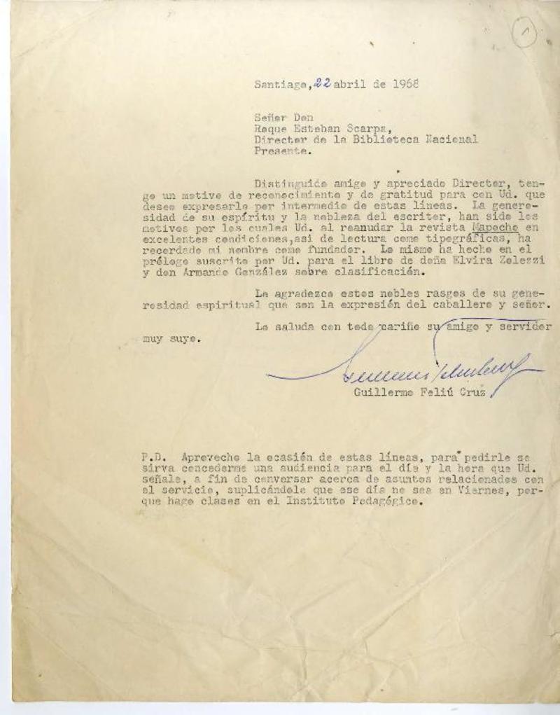Feliú Cruz, Guillermo - Correspondencia - Scarpa, Roque Esteban - Autores chilenos - Manuscritos chilenos