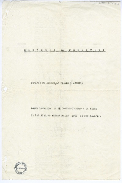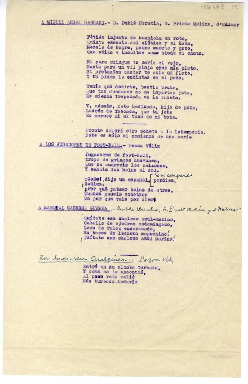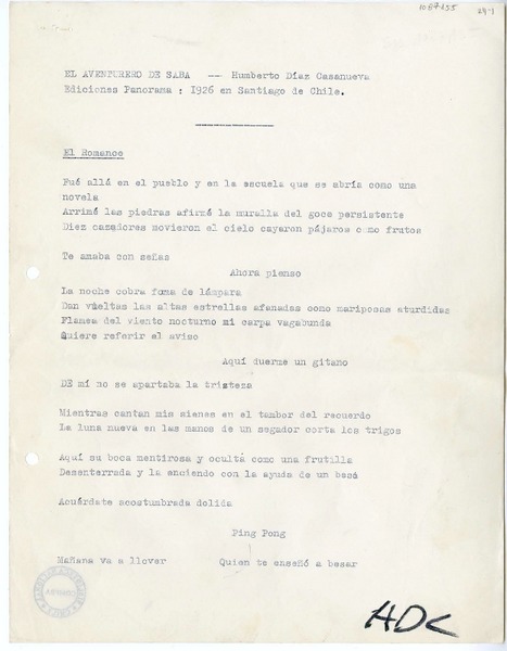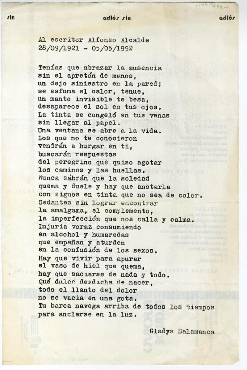Alcalde, Alfonso - Manuscritos chilenos - Poesías chilenas