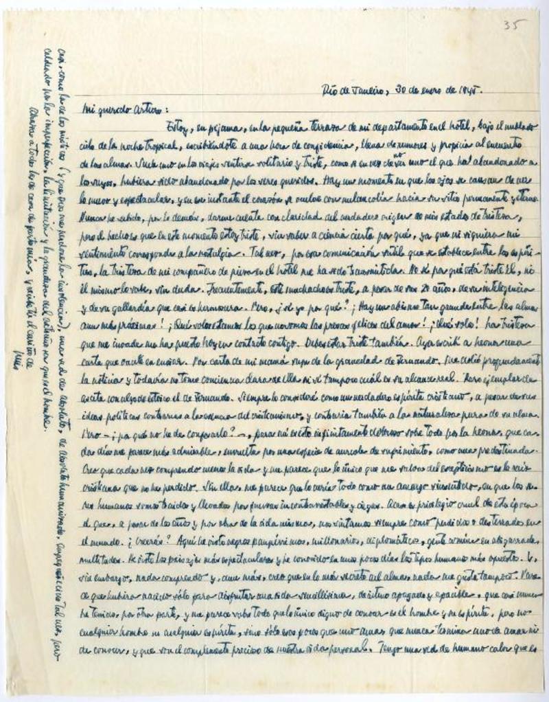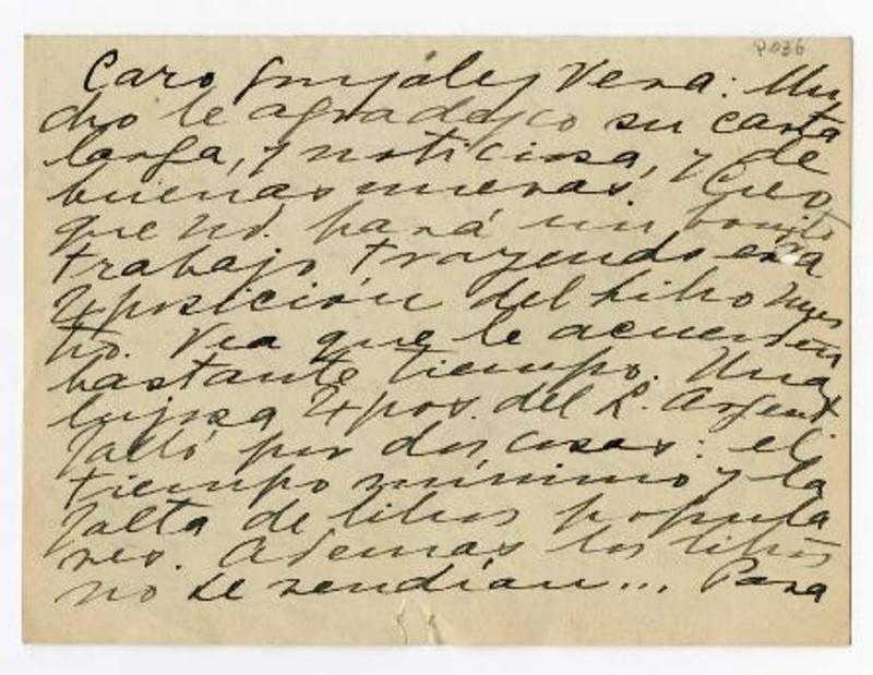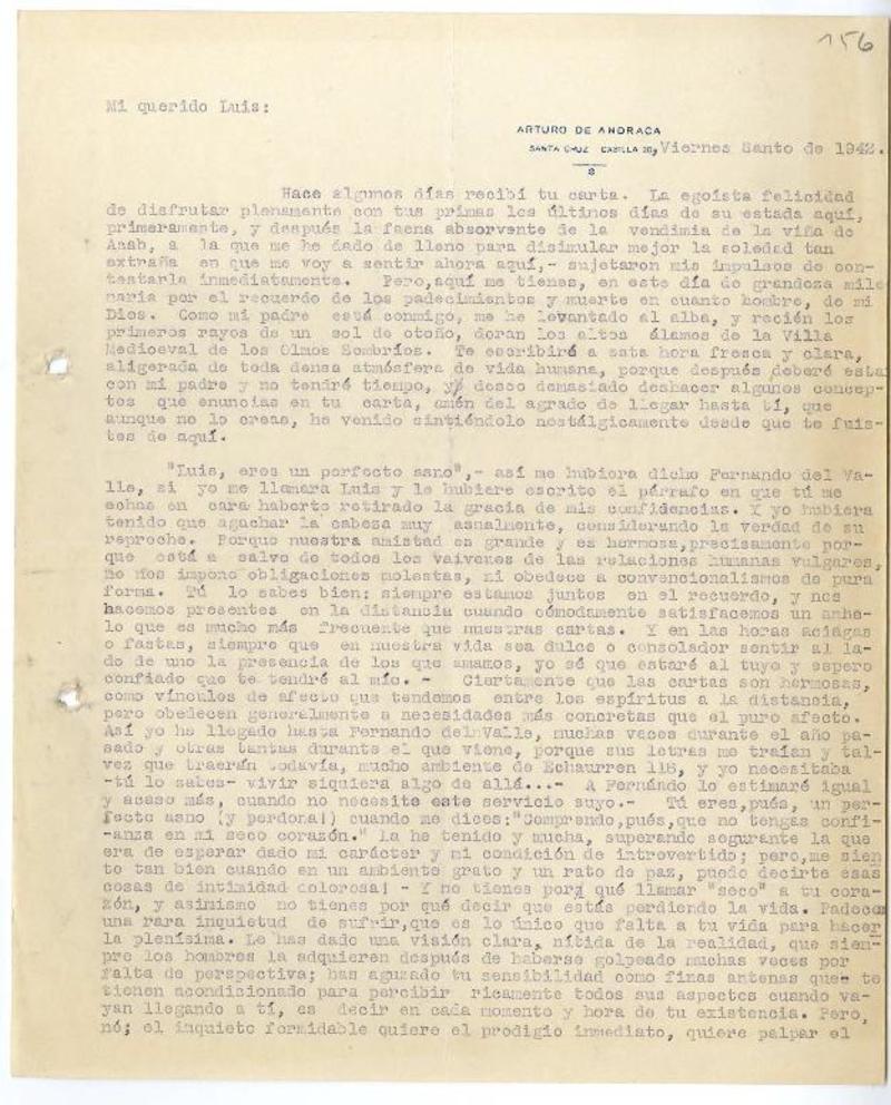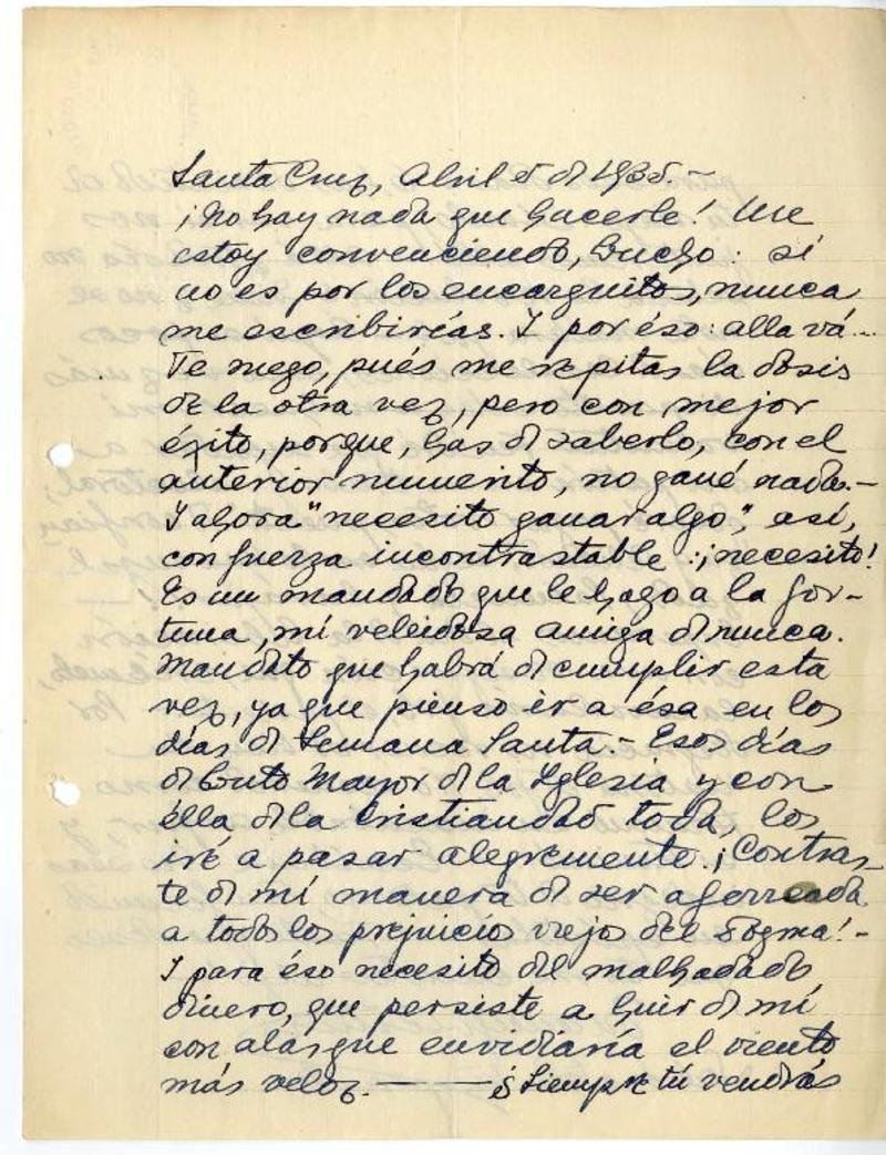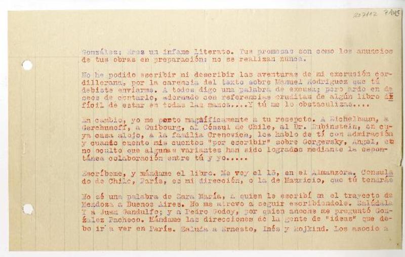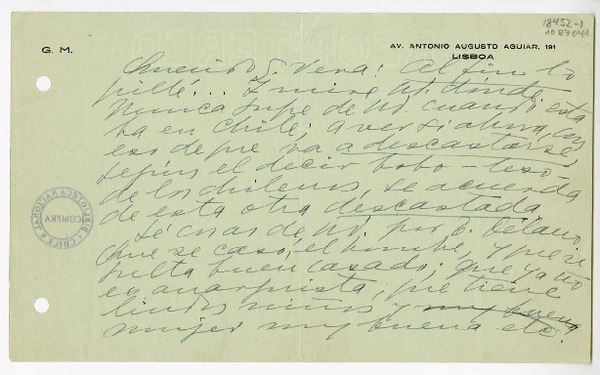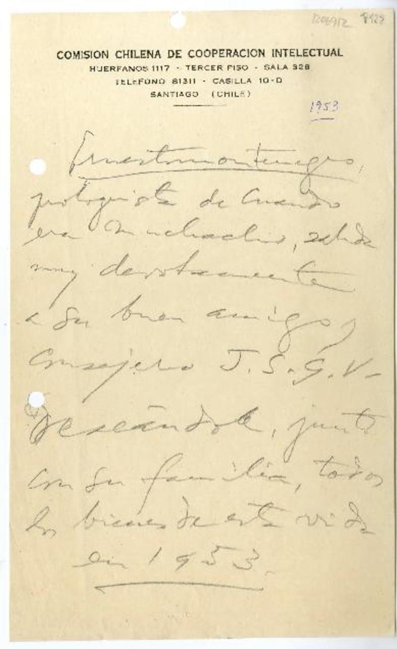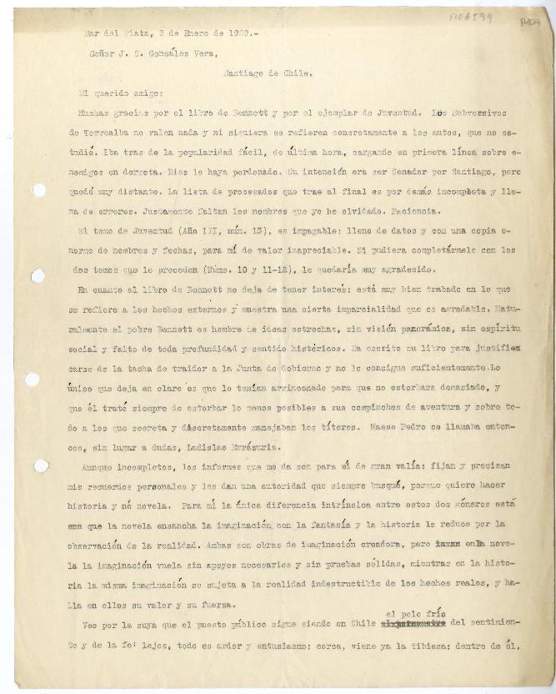 Valparaíso, La Serena y Buenos Aires [a] José Santos González Vera Cartas, Entre 1935 y 1938, [manuscrito] Ernesto Montenegro.