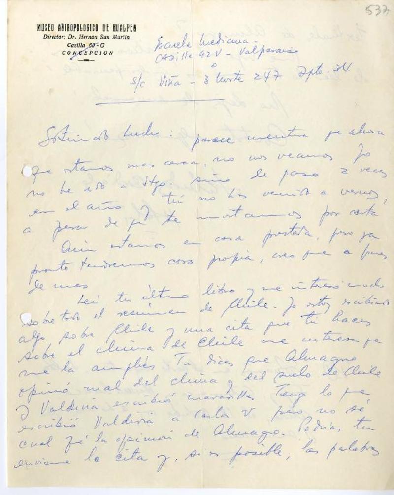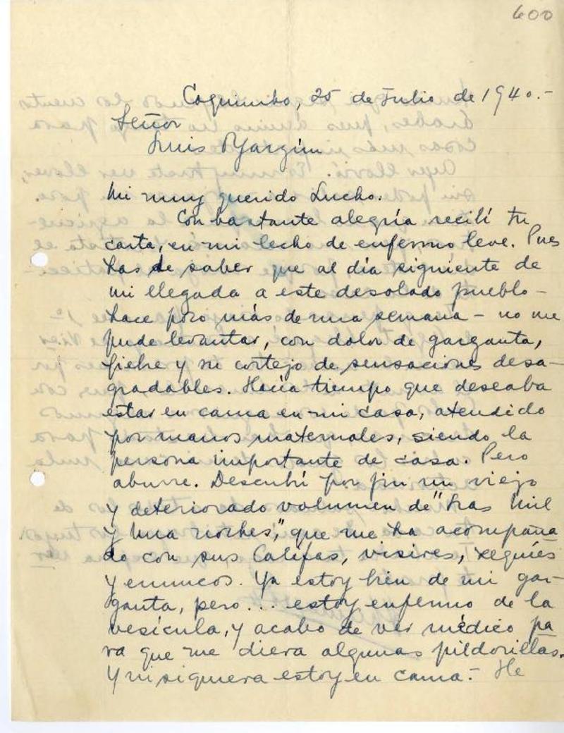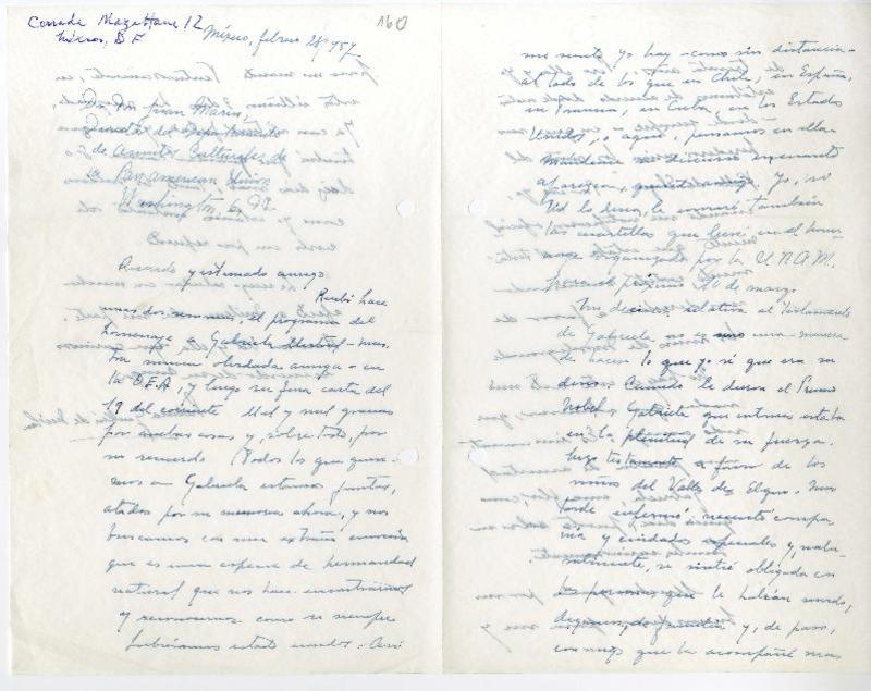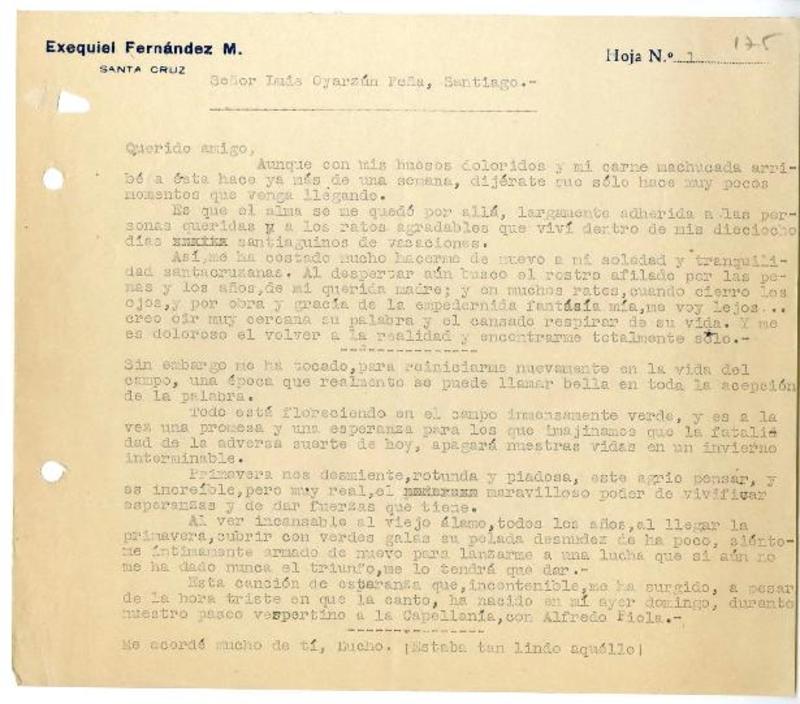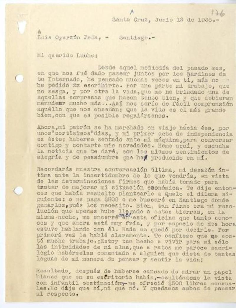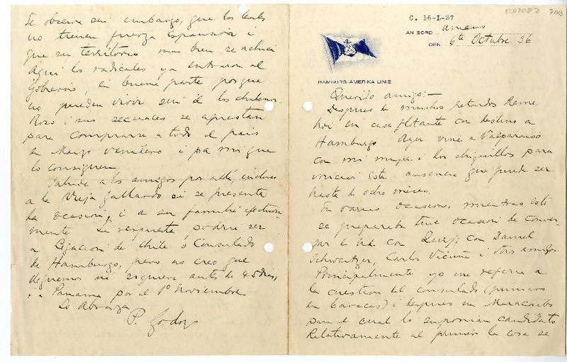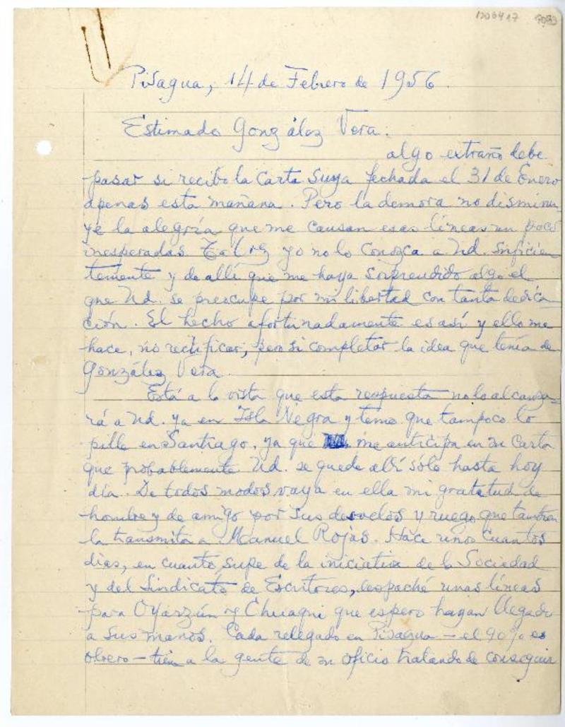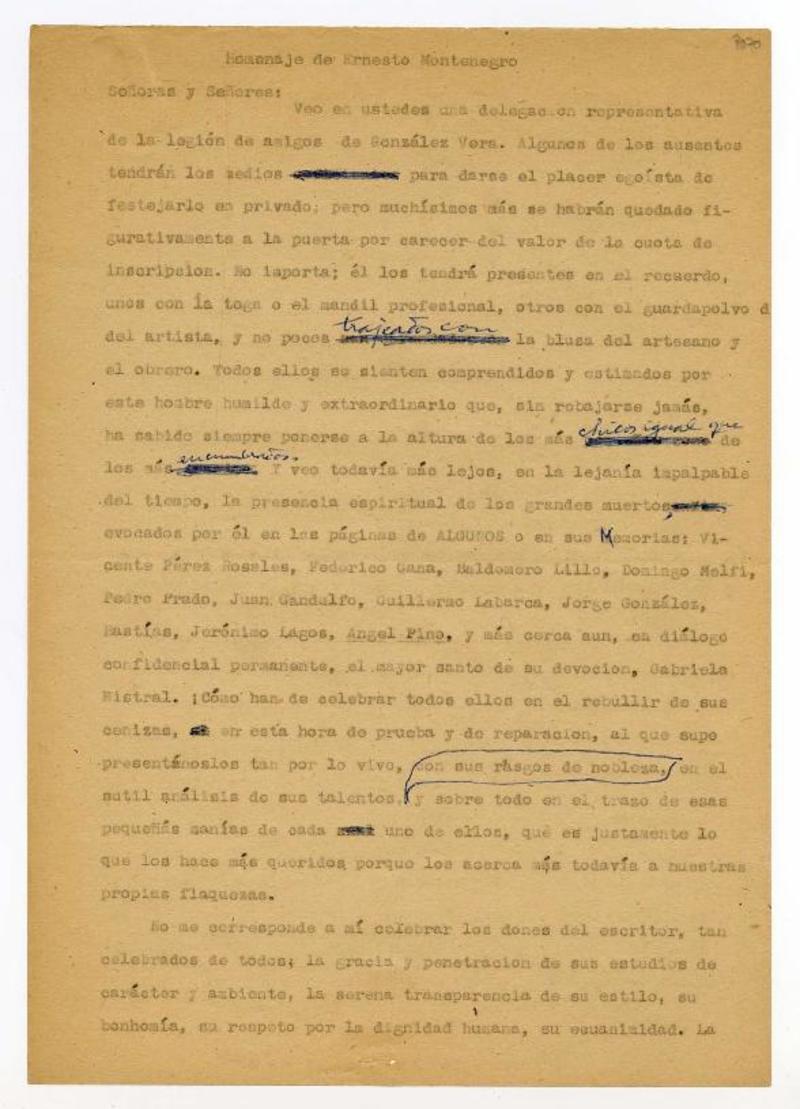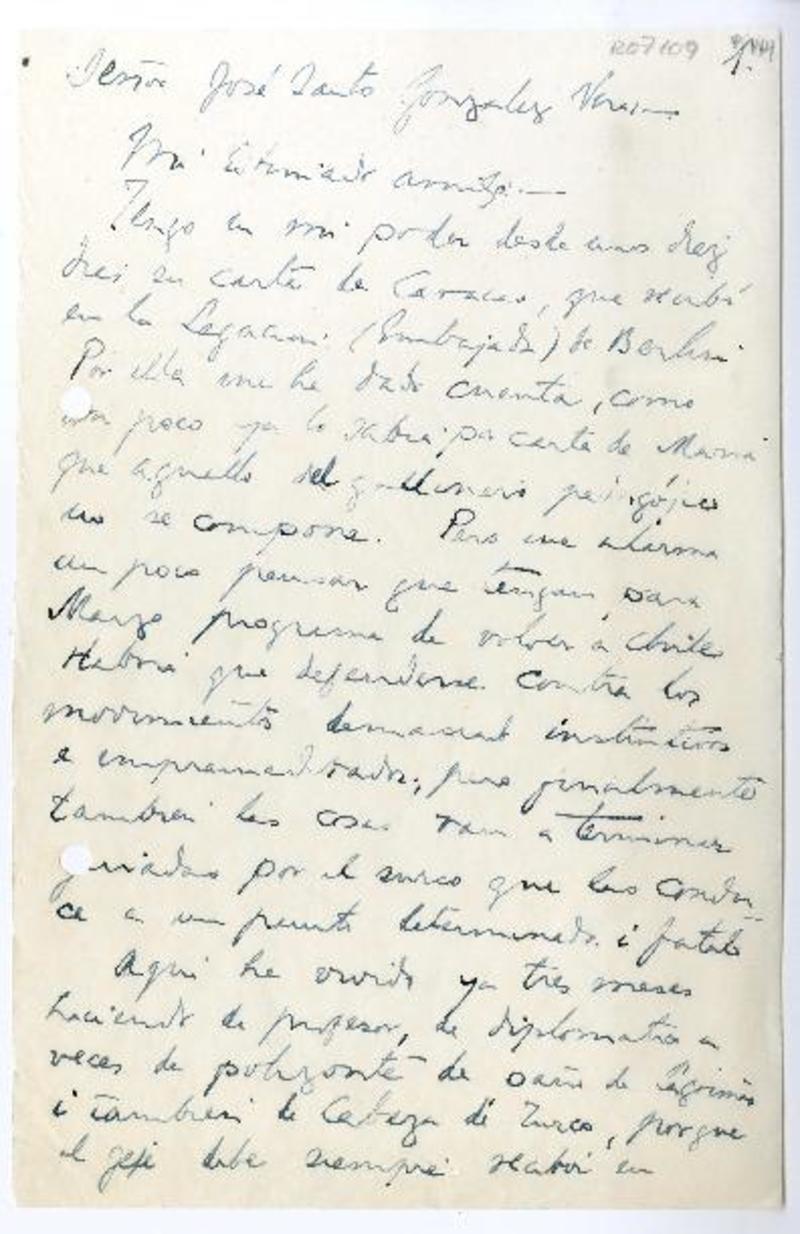 Valparaíso, La Serena y Buenos Aires [a] José Santos González Vera Cartas, Entre 1935 y 1938, [manuscrito] Ernesto Montenegro.