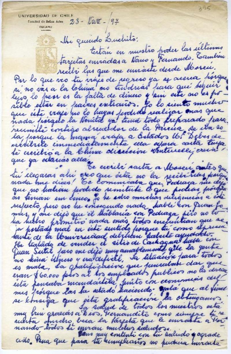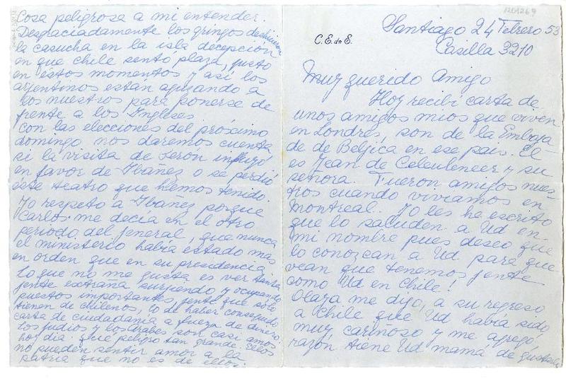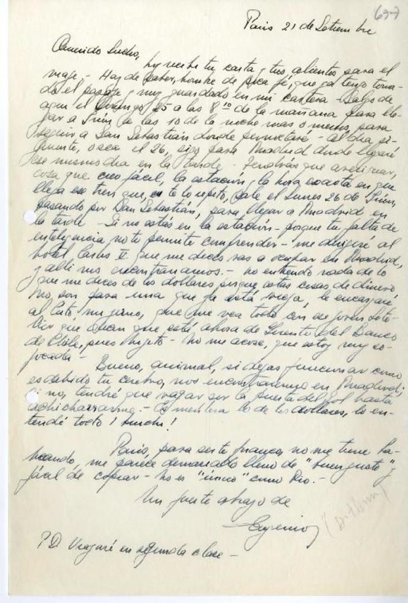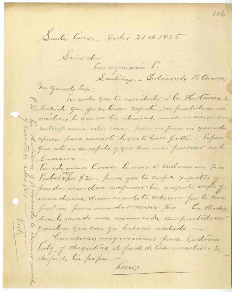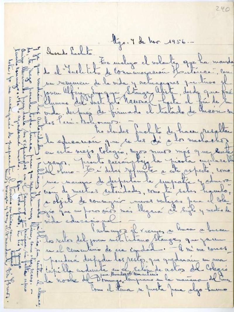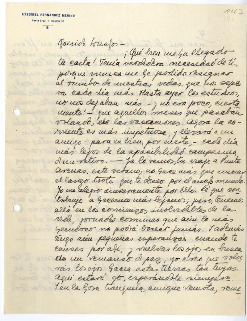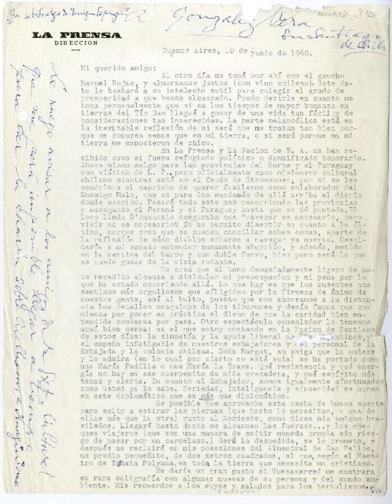 Valparaíso, La Serena y Buenos Aires [a] José Santos González Vera Cartas, Entre 1935 y 1938, [manuscrito] Ernesto Montenegro.