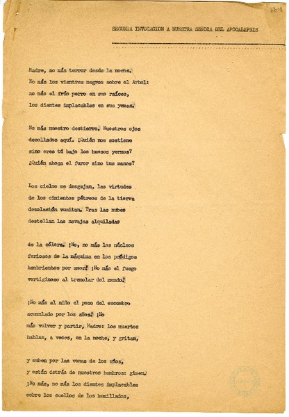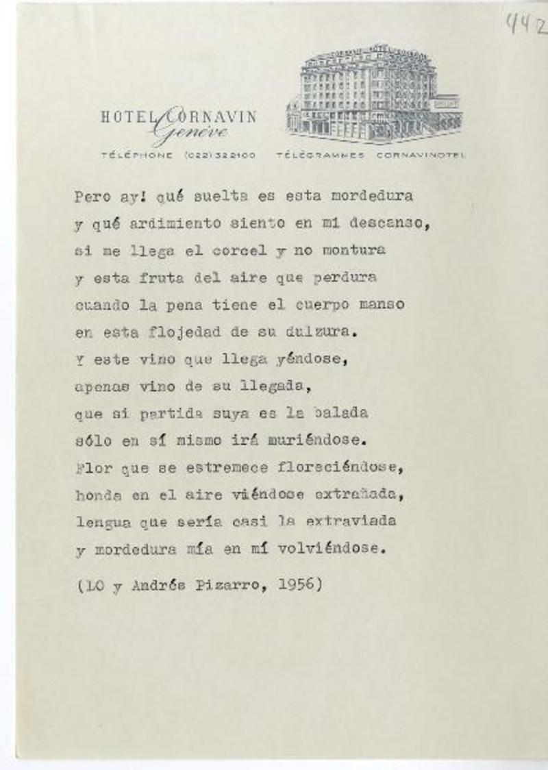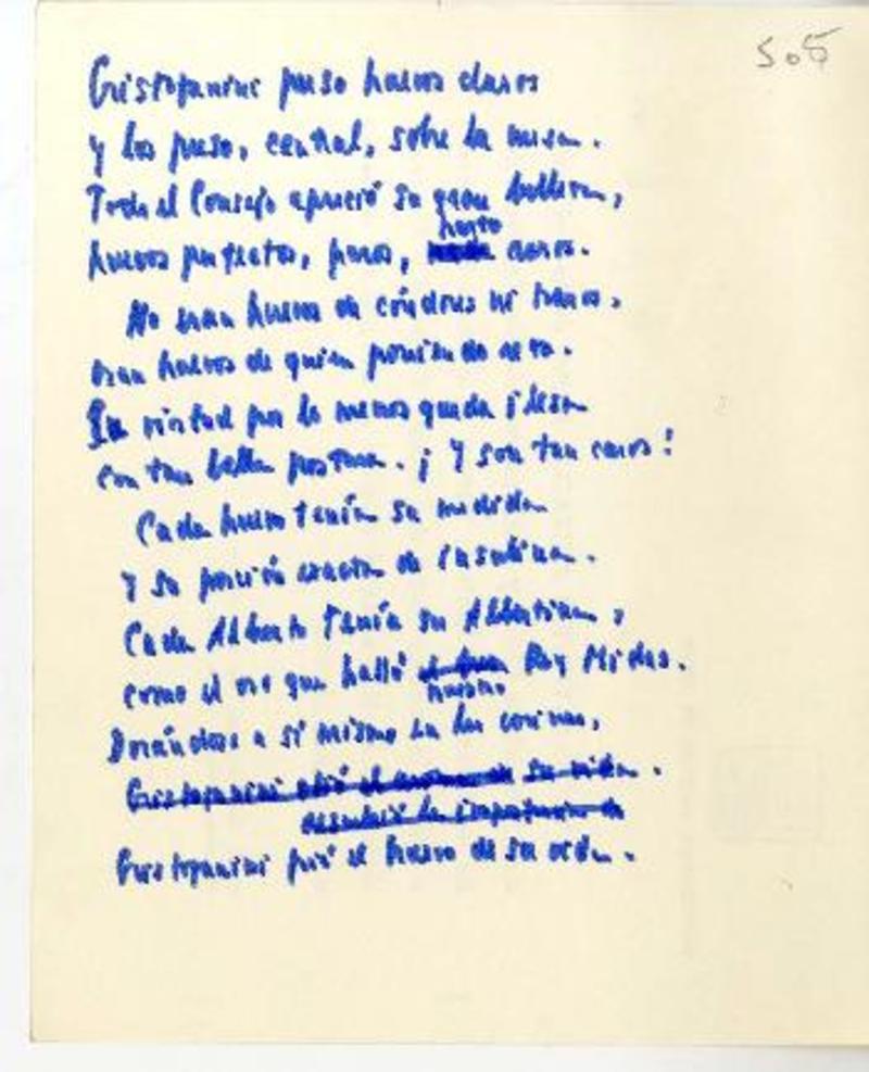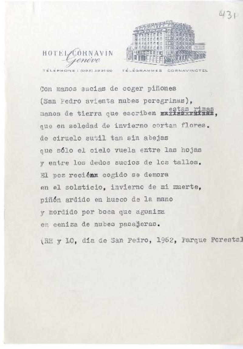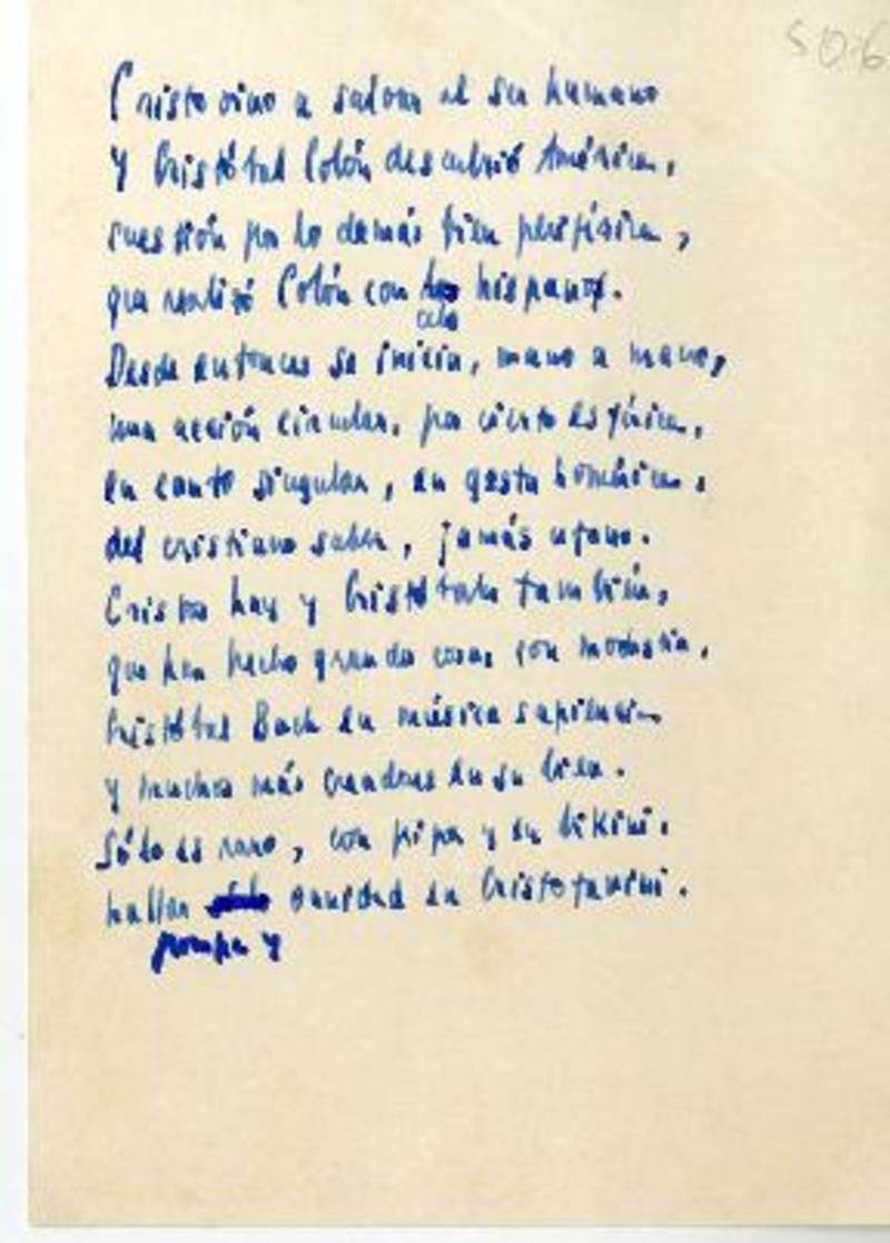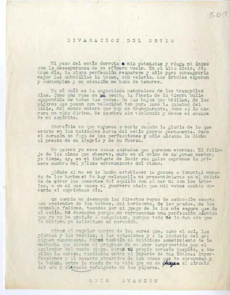 [Yo he venido a mirar la tierra ...] [manuscrito] Oscar Castro.
