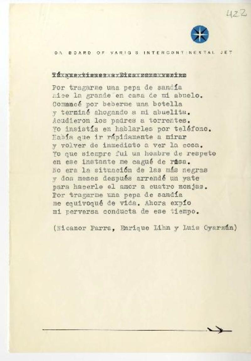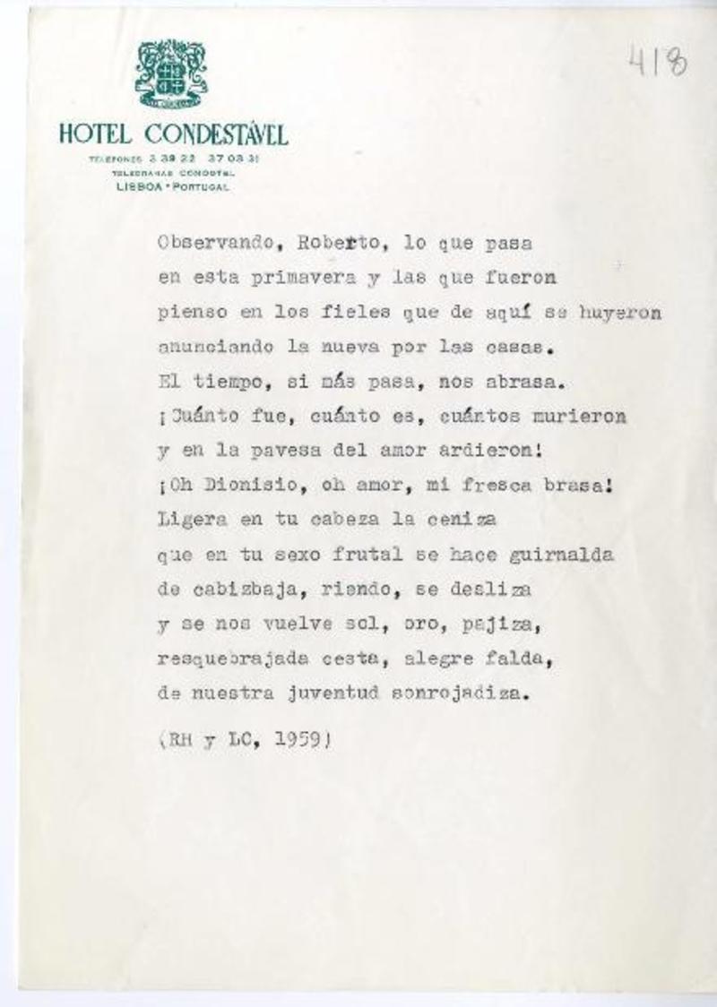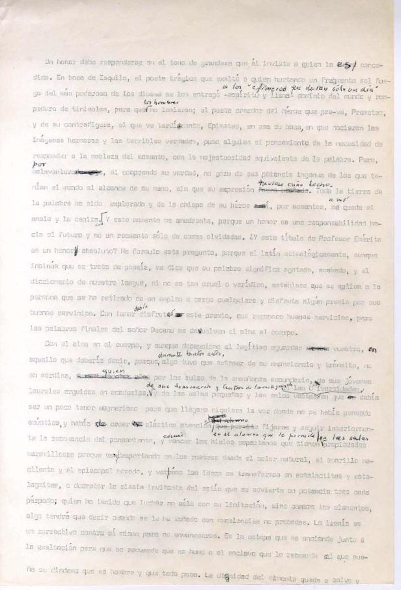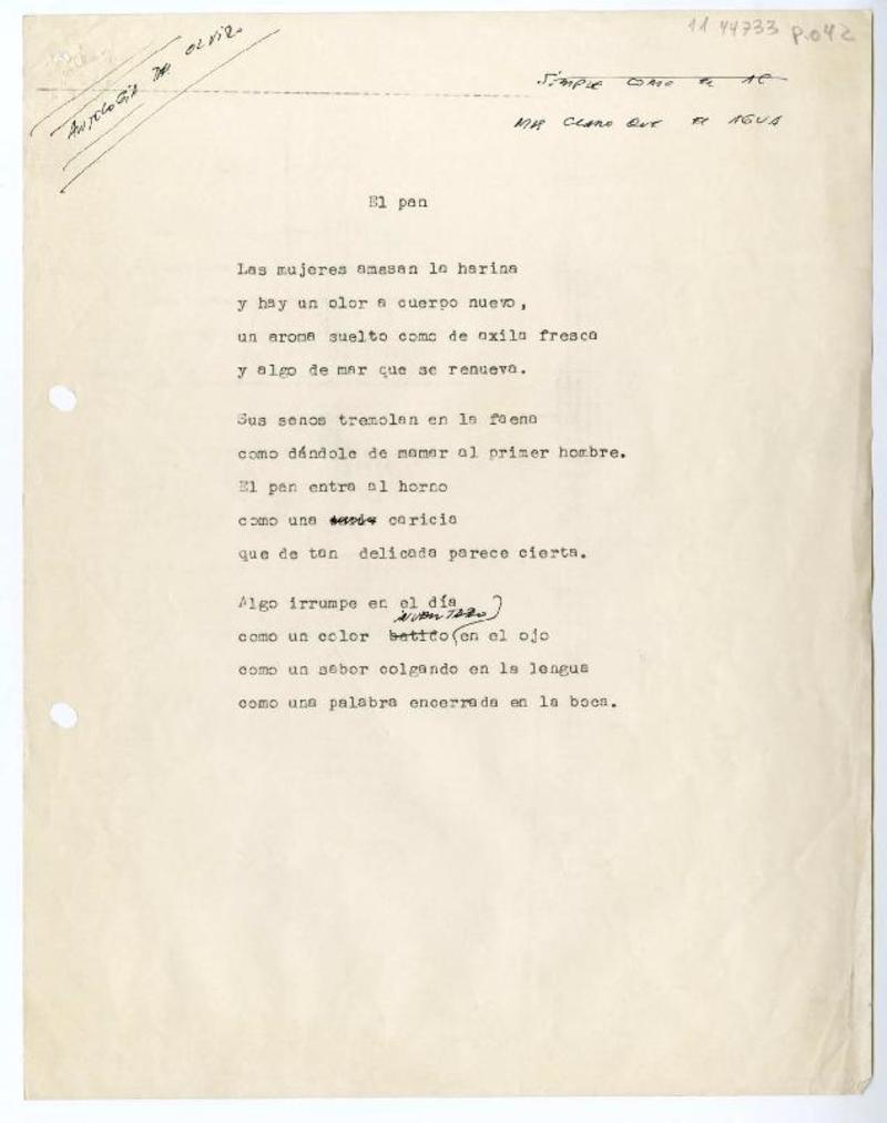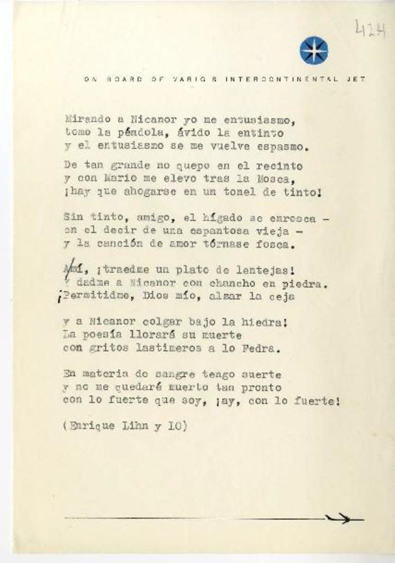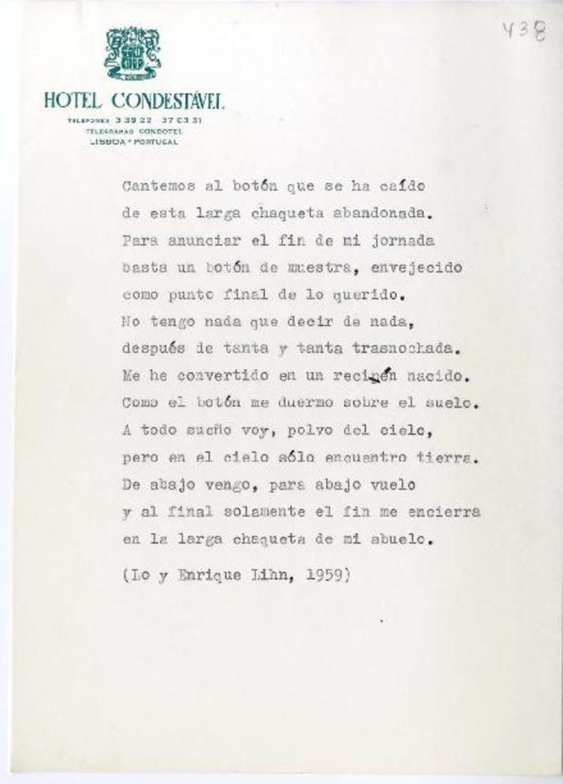 [Yo he venido a mirar la tierra ...] [manuscrito] Oscar Castro.
