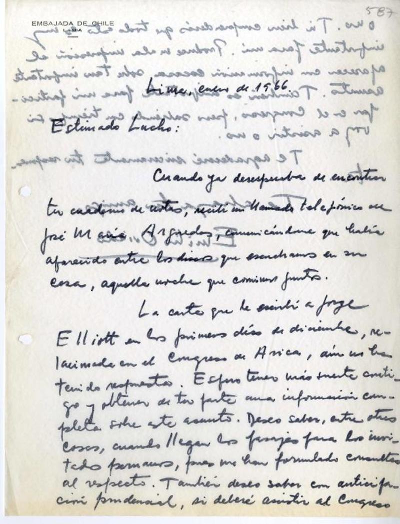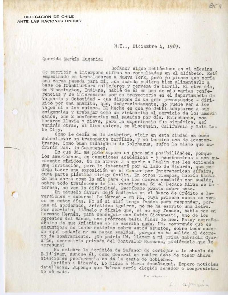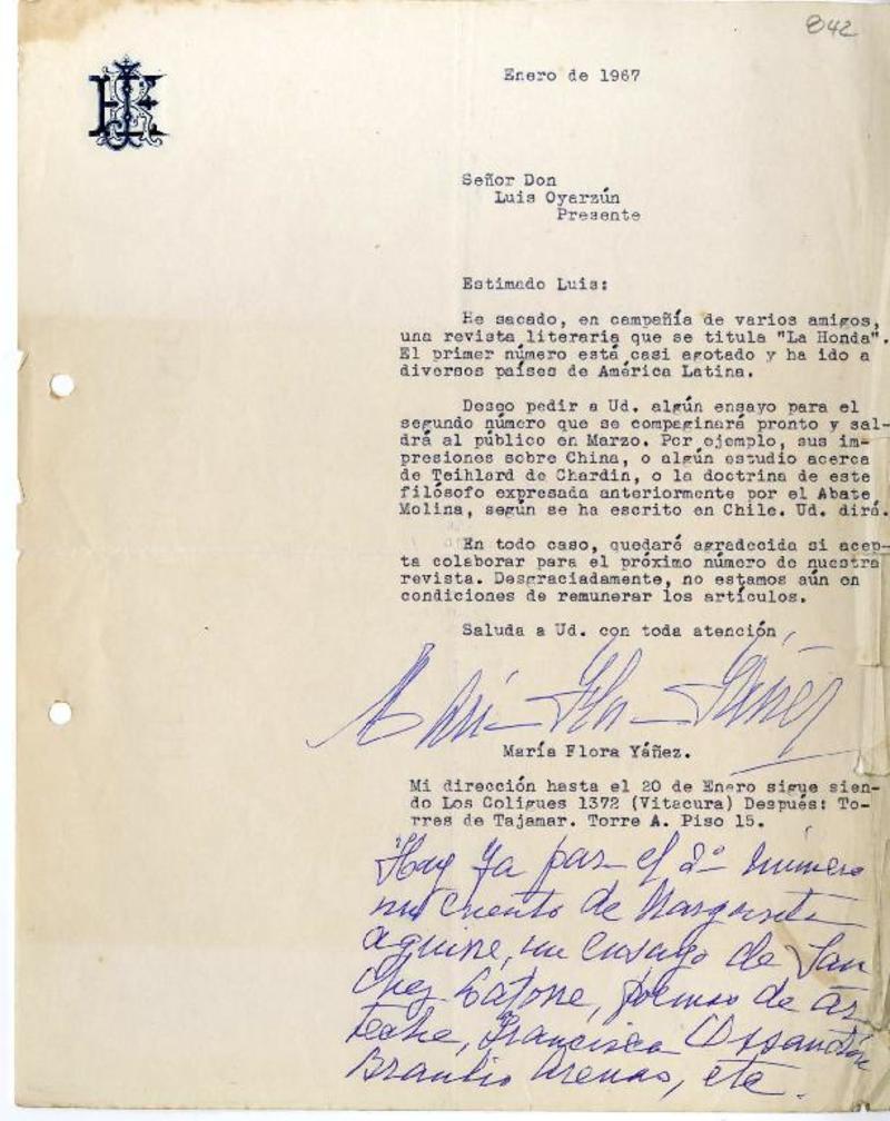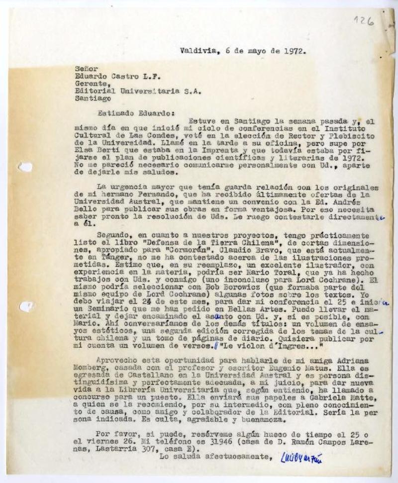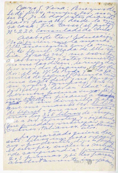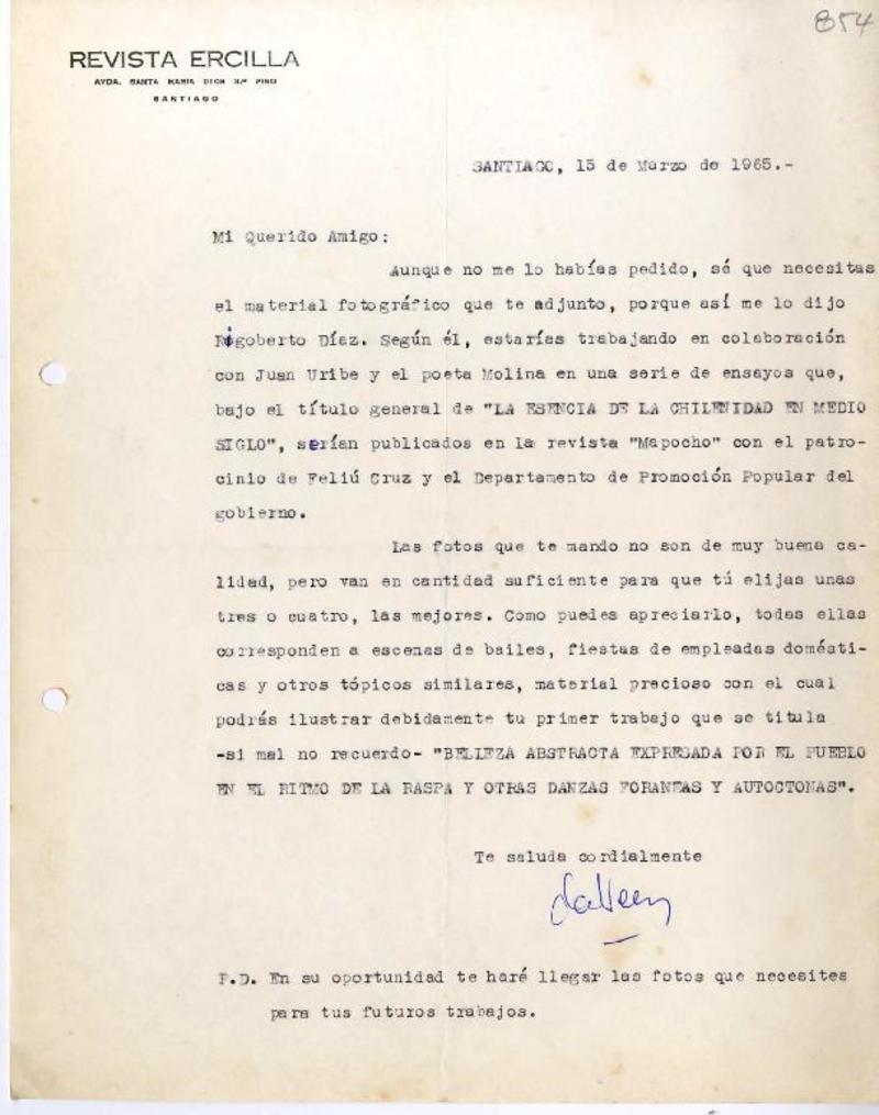 Navarro Eliana - Correspondencia - Autores chilenos - Manuscritos chilenos - Mujica, Gustavo