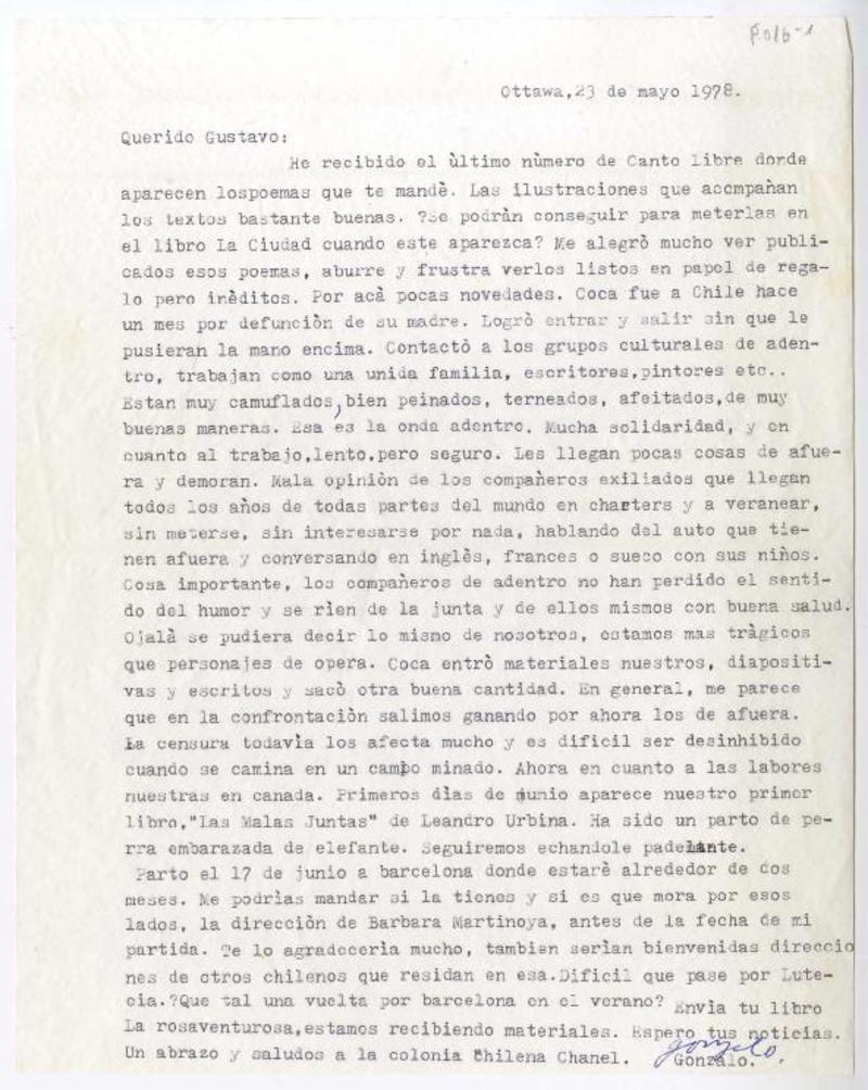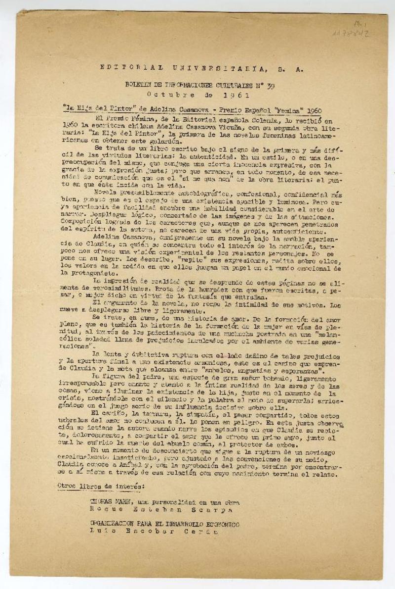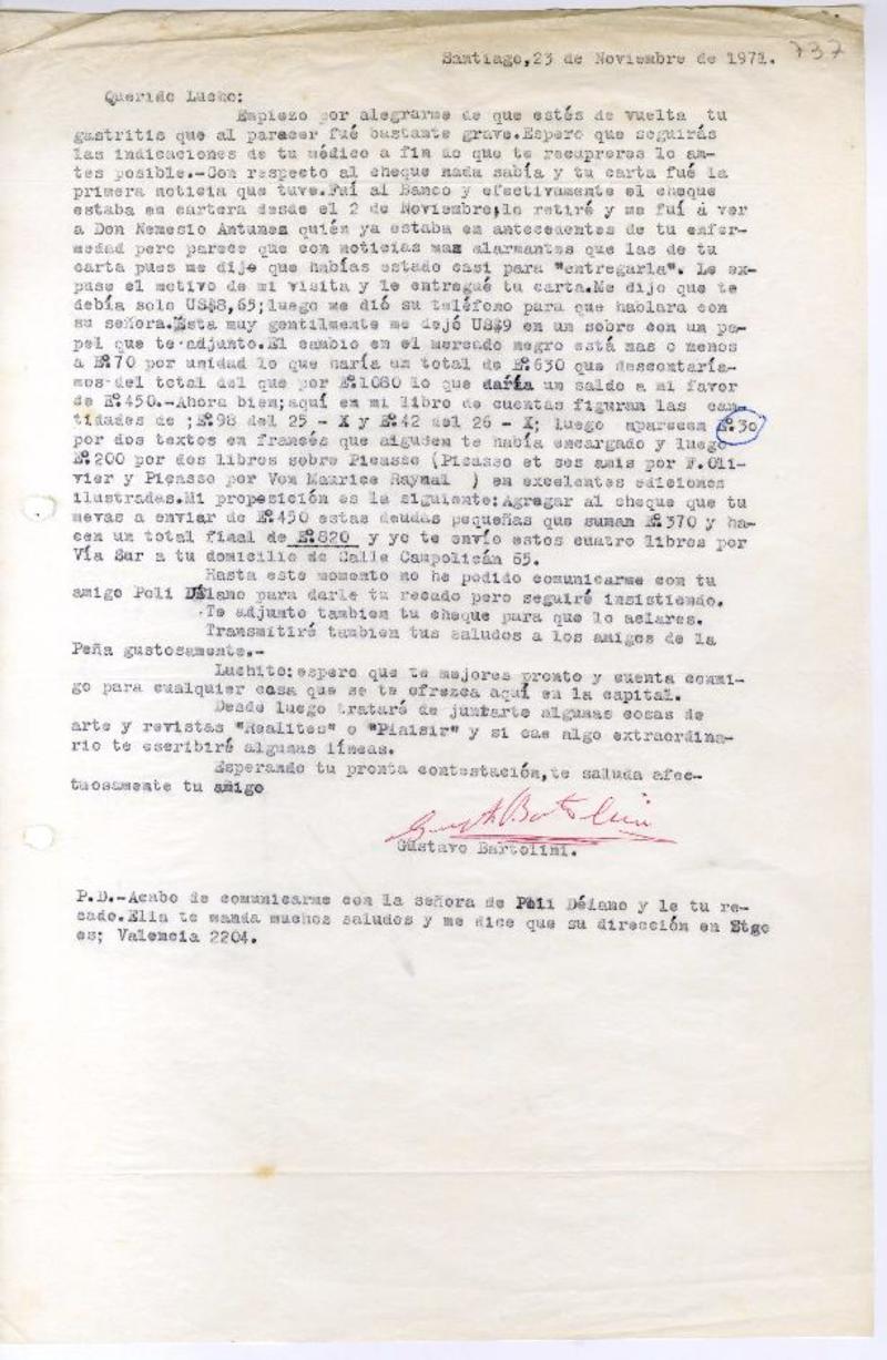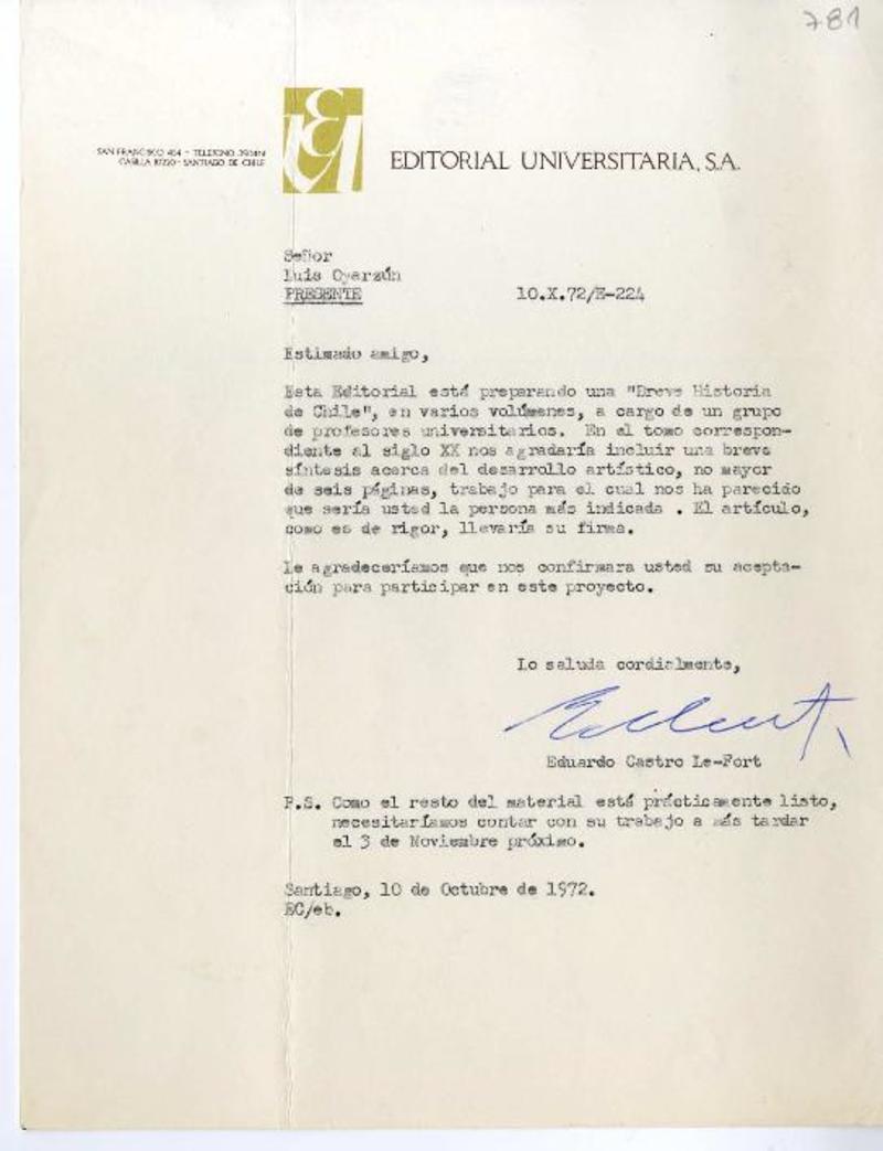 Navarro Eliana - Correspondencia - Autores chilenos - Manuscritos chilenos - Mujica, Gustavo