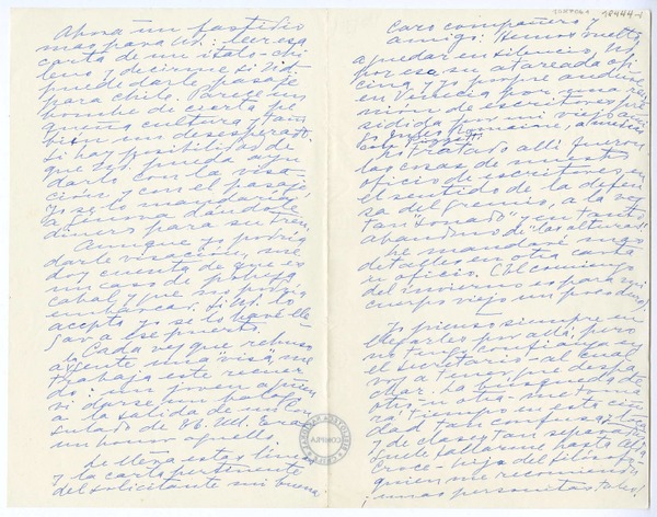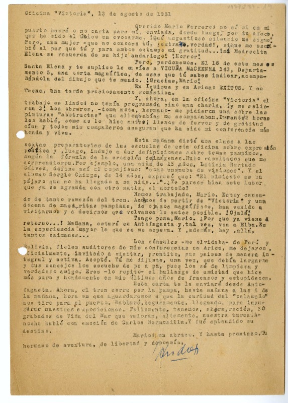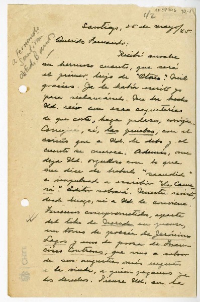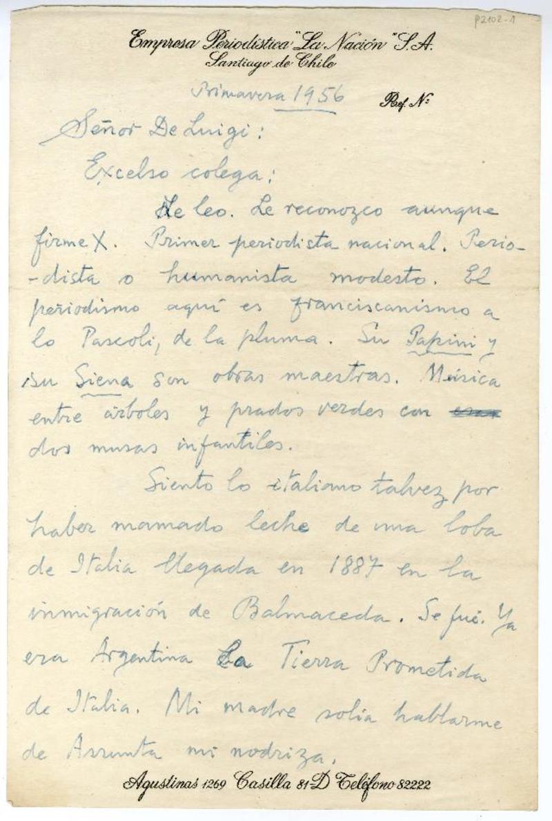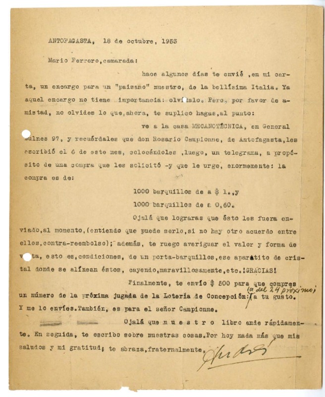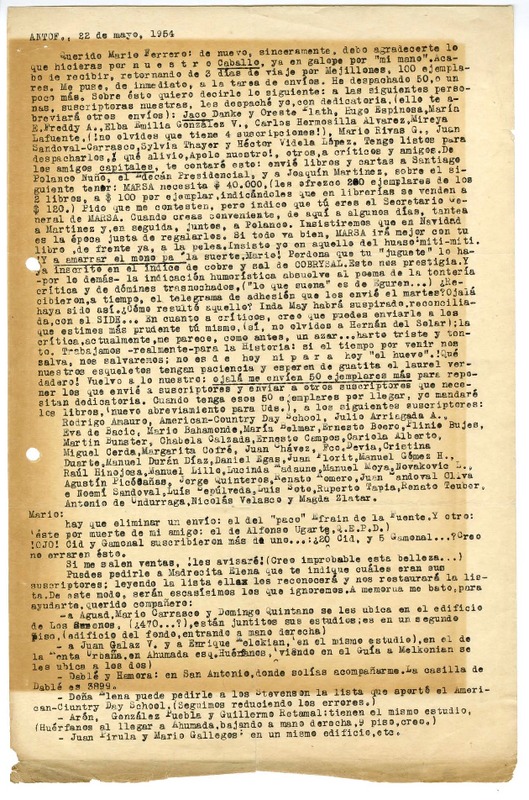 Ferrero, Mario - Correspondencia - Autores chilenos - Manuscritos chilenos - Sabella, Andrés