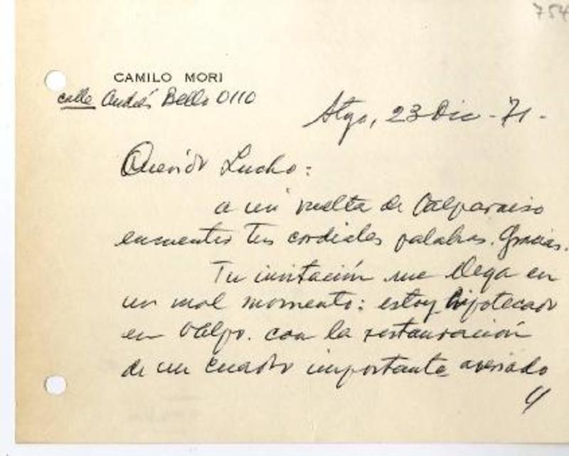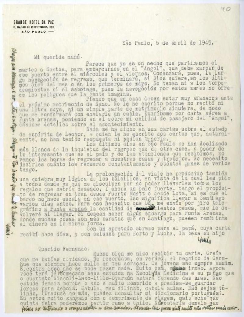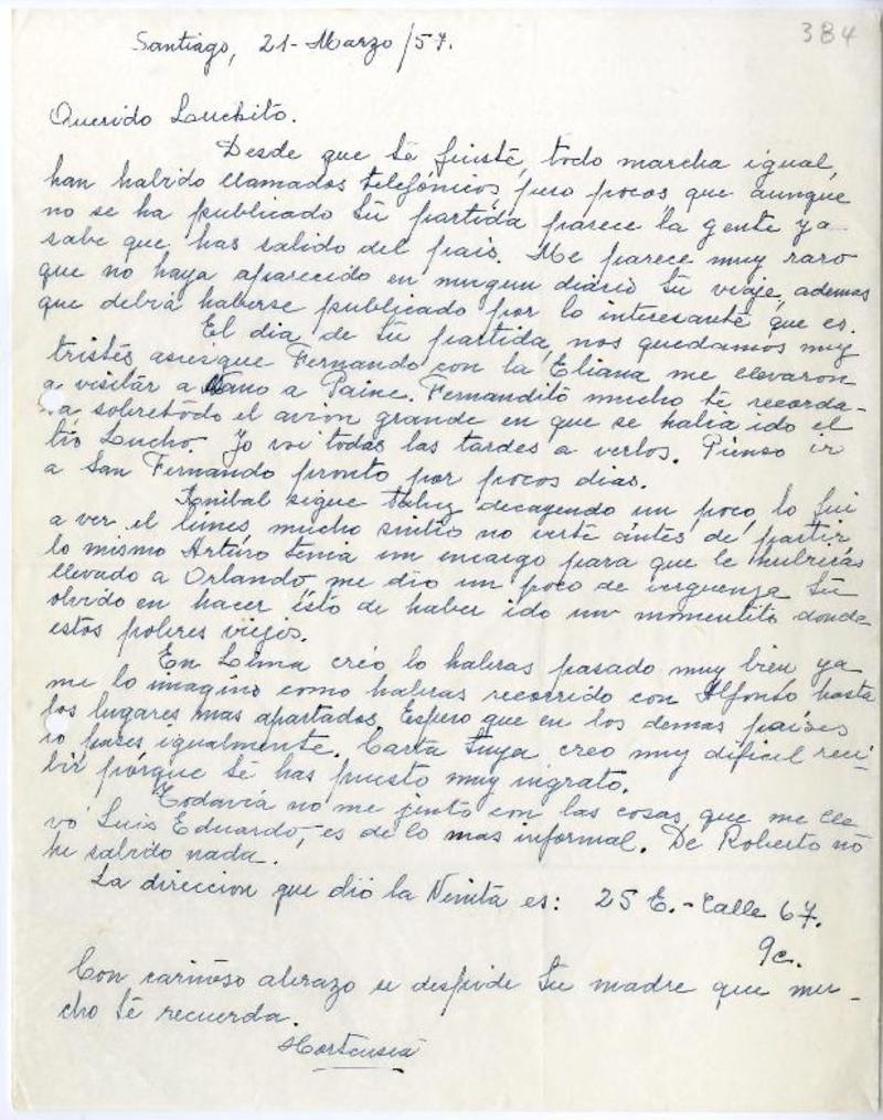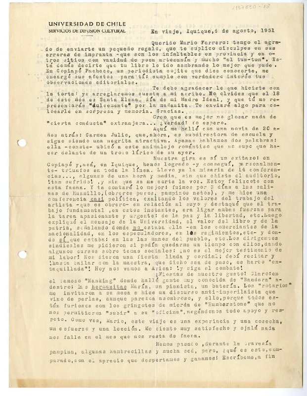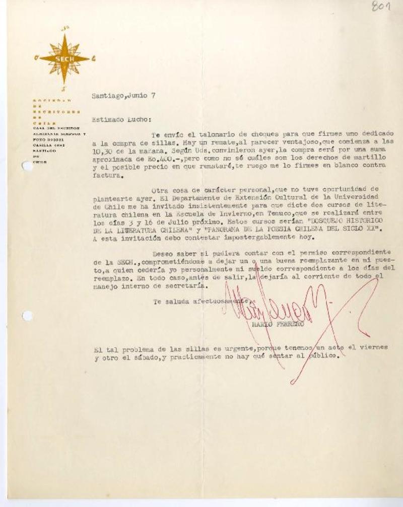 Ferrero, Mario - Correspondencia - Autores chilenos - Manuscritos chilenos - Sabella, Andrés