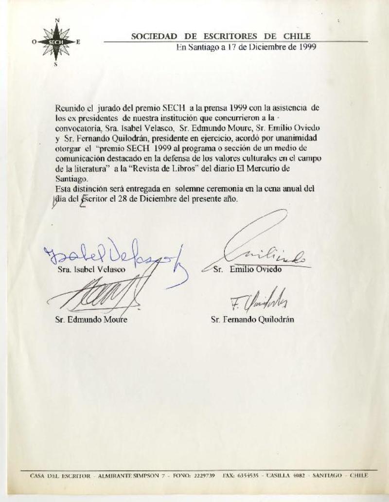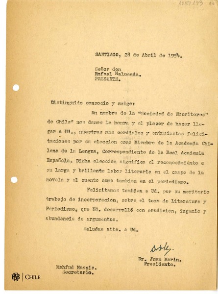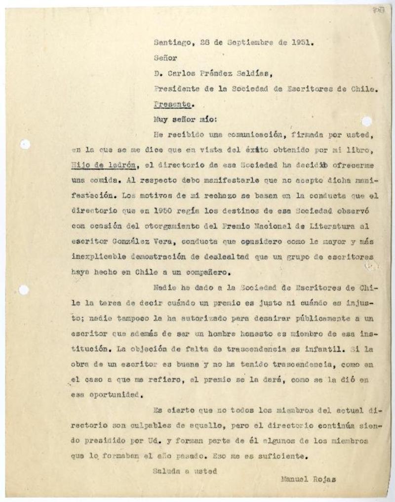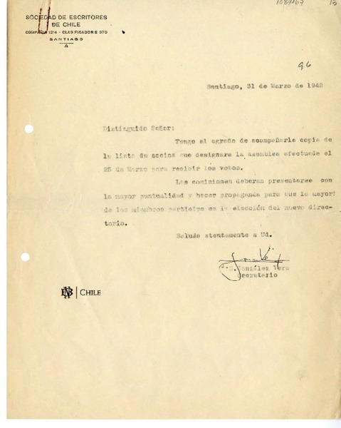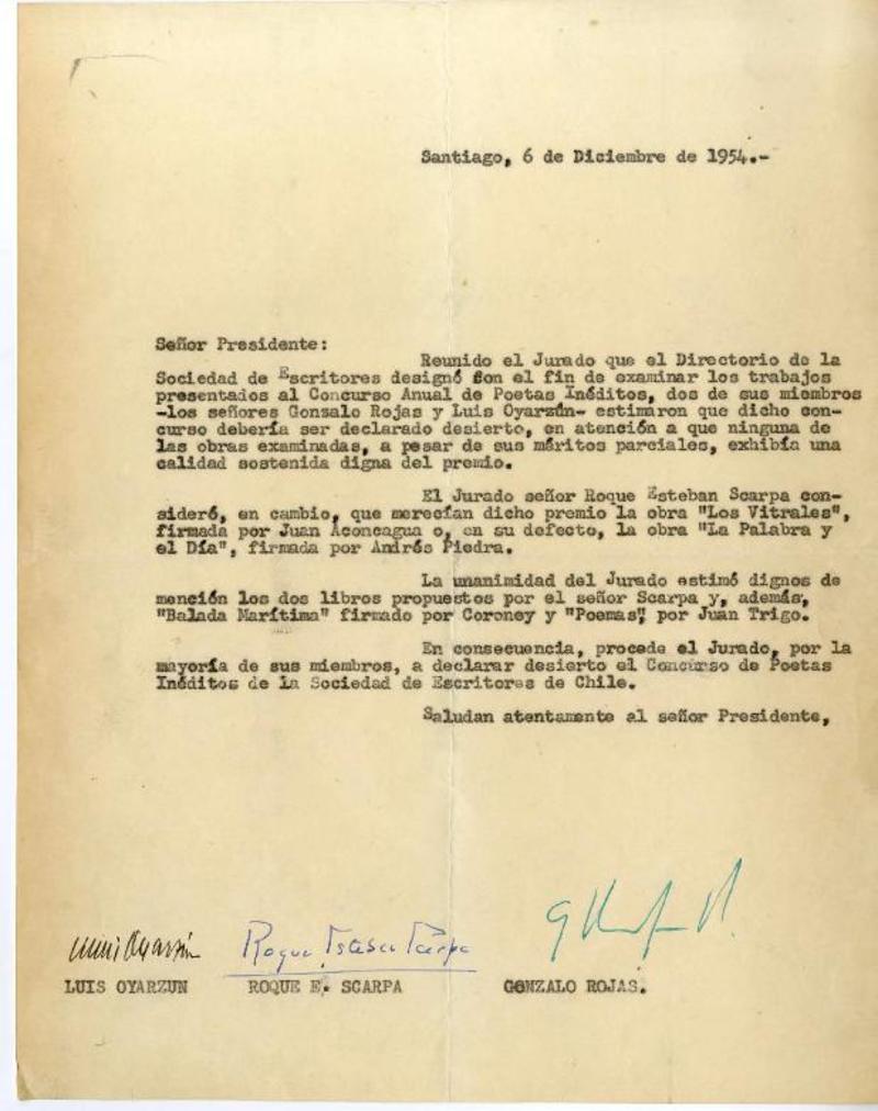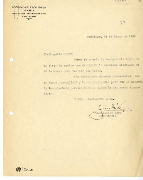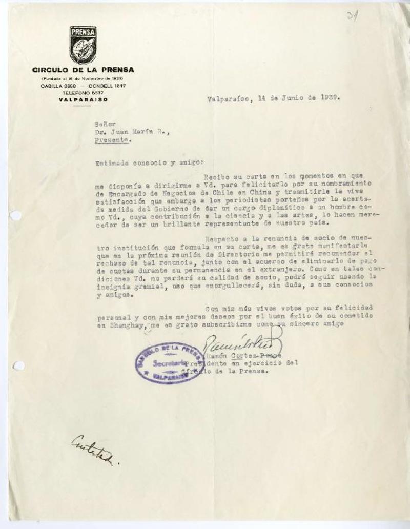 Reyes, Salvador - Círculo de la Prensa de Valparaíso - Manuscritos chilenos - Documentos