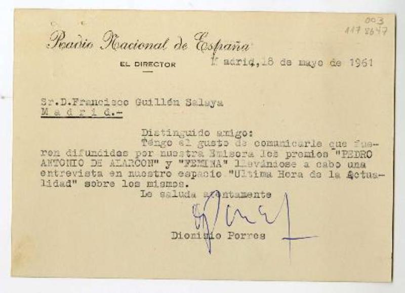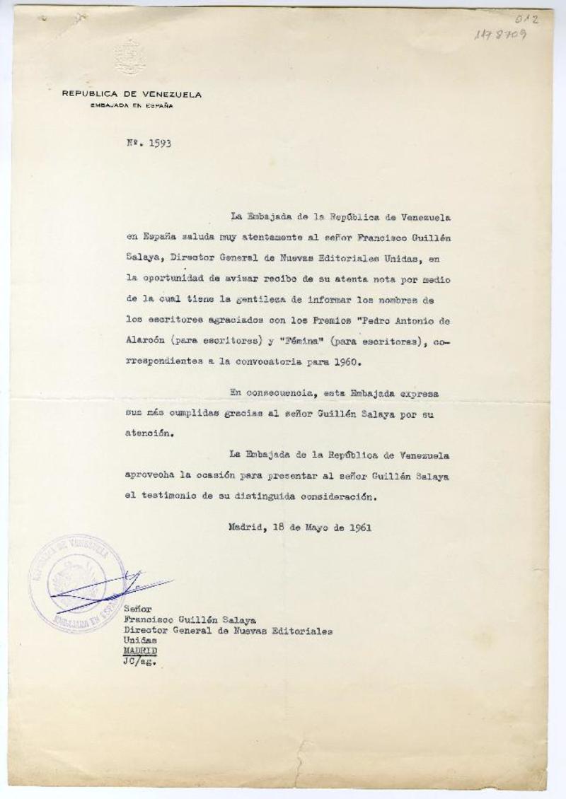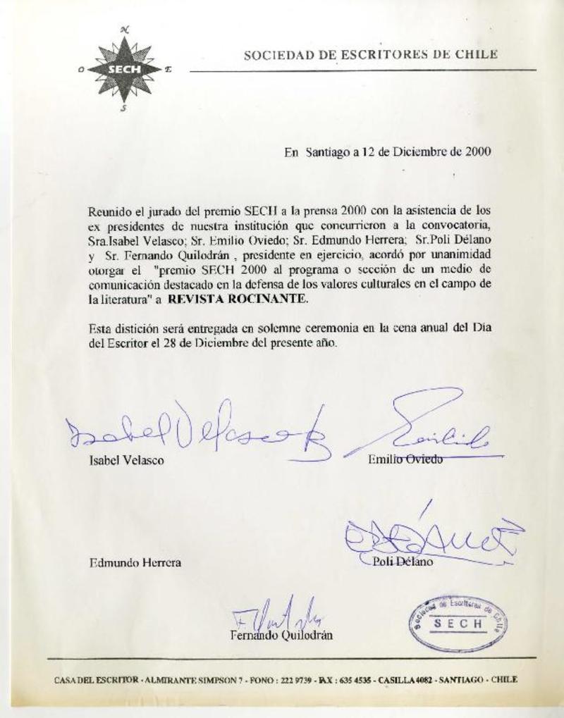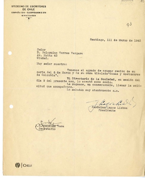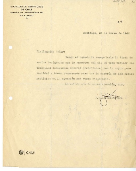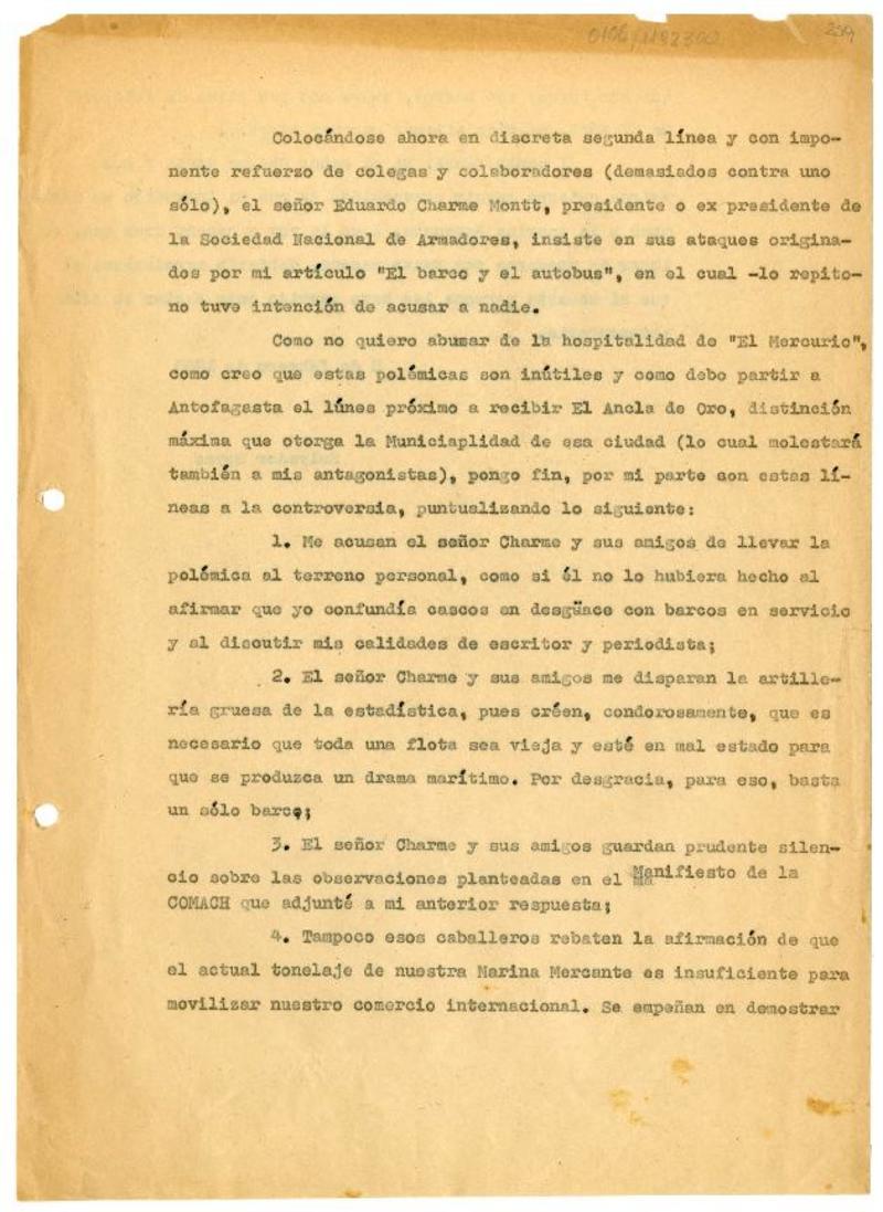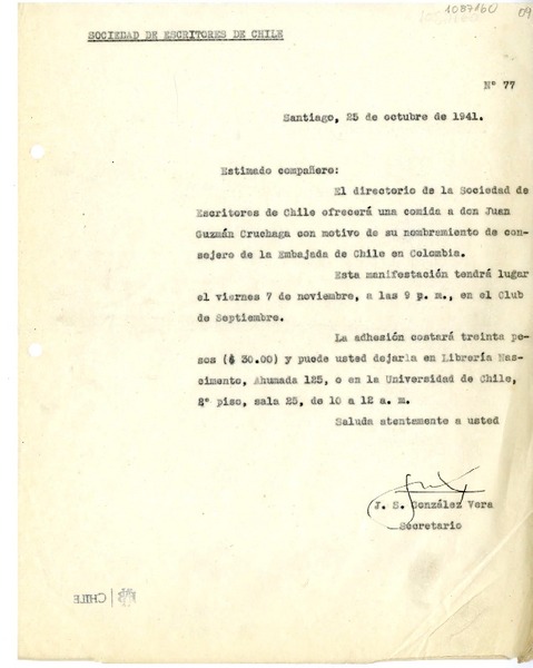 Reyes, Salvador - Círculo de la Prensa de Valparaíso - Manuscritos chilenos - Documentos