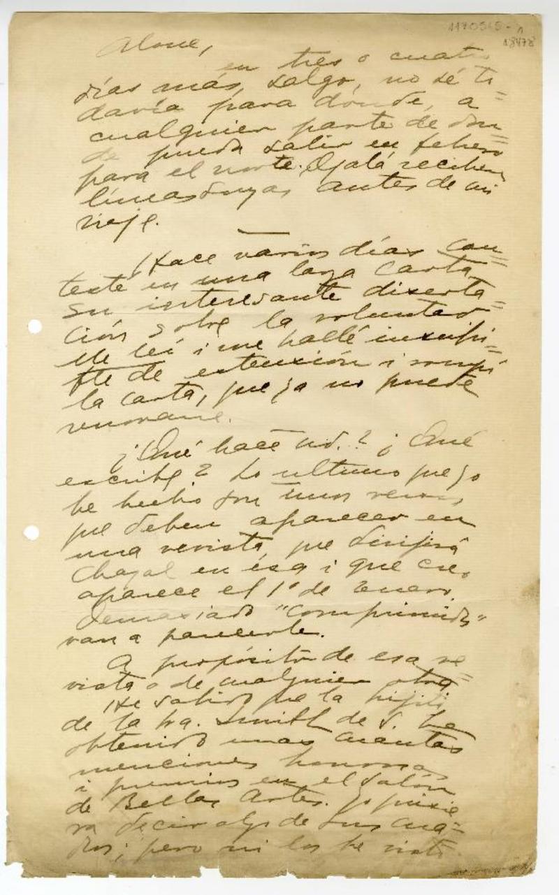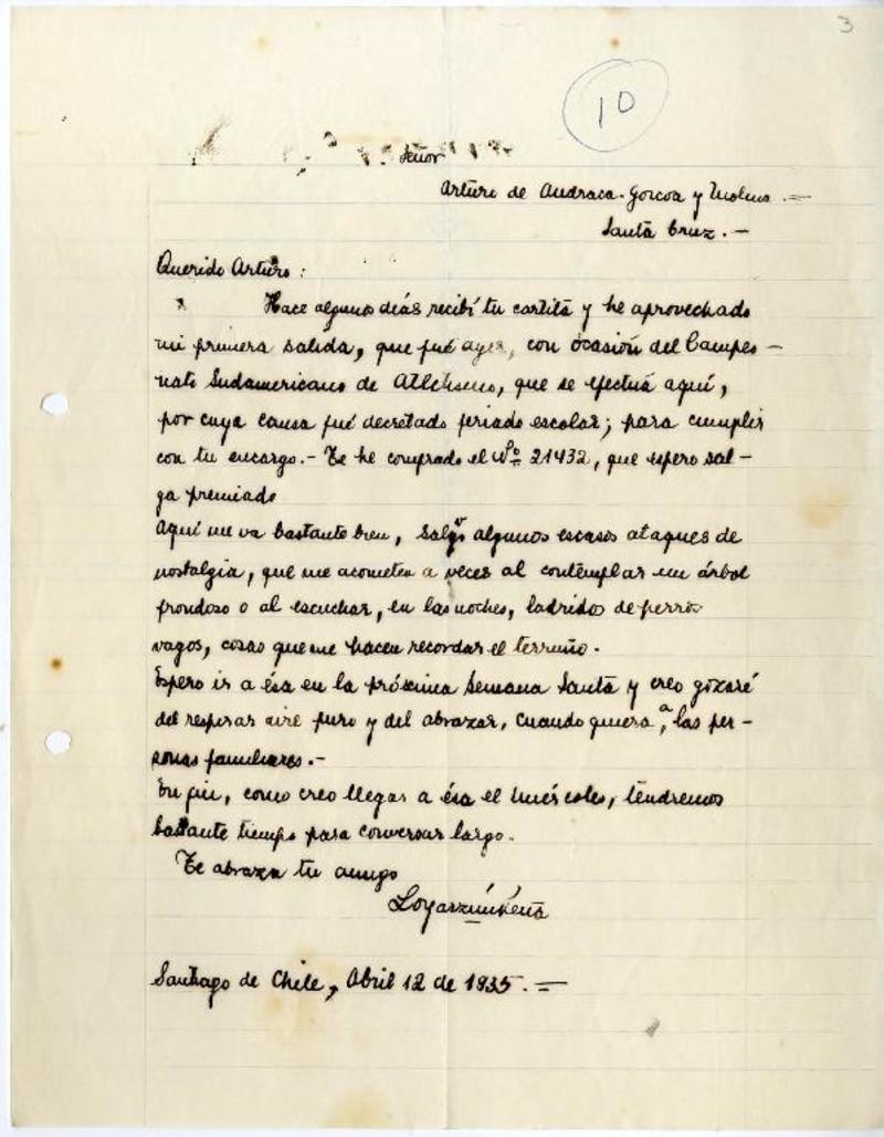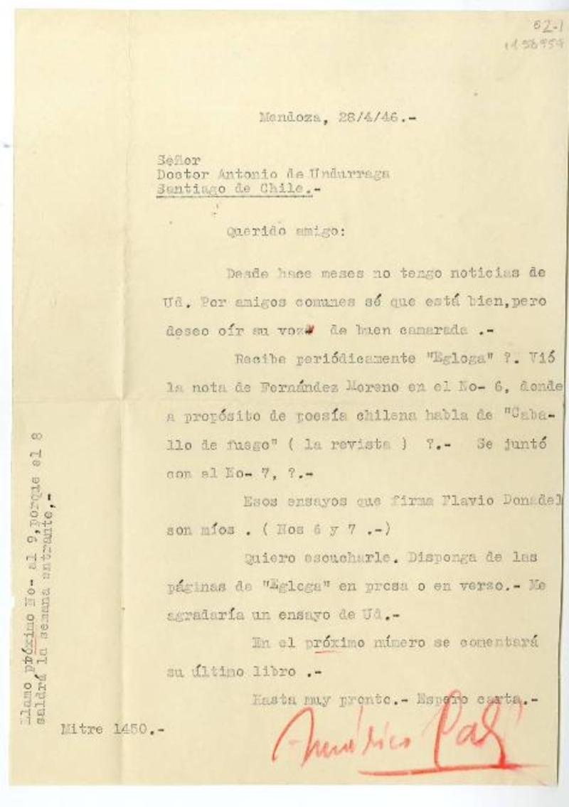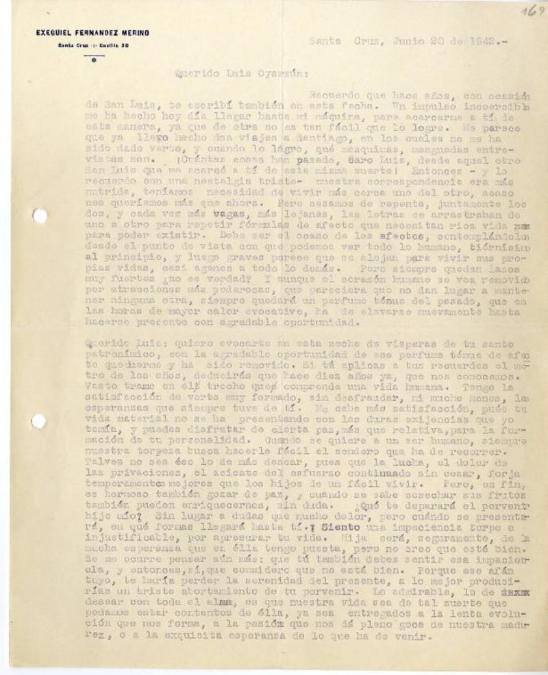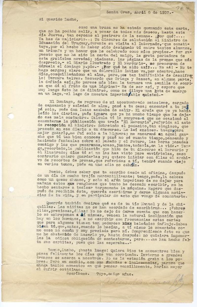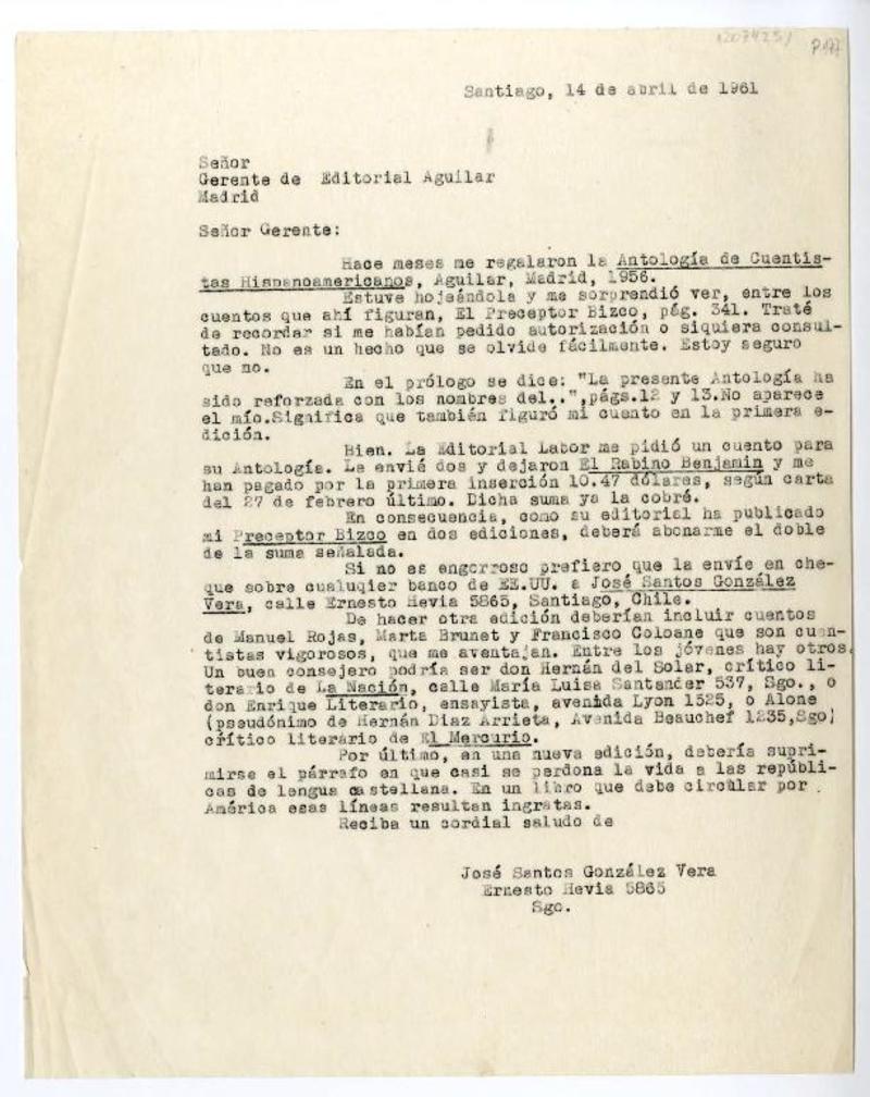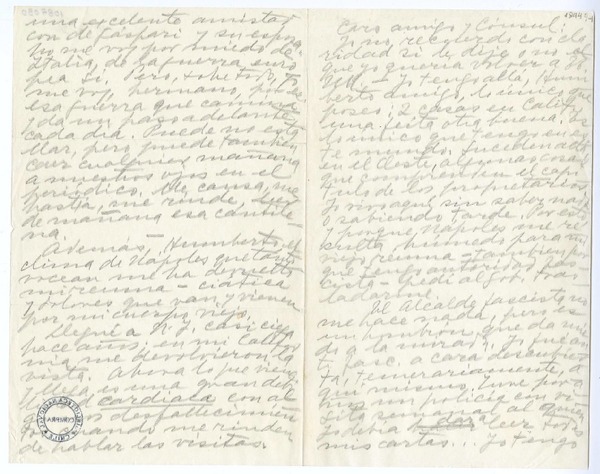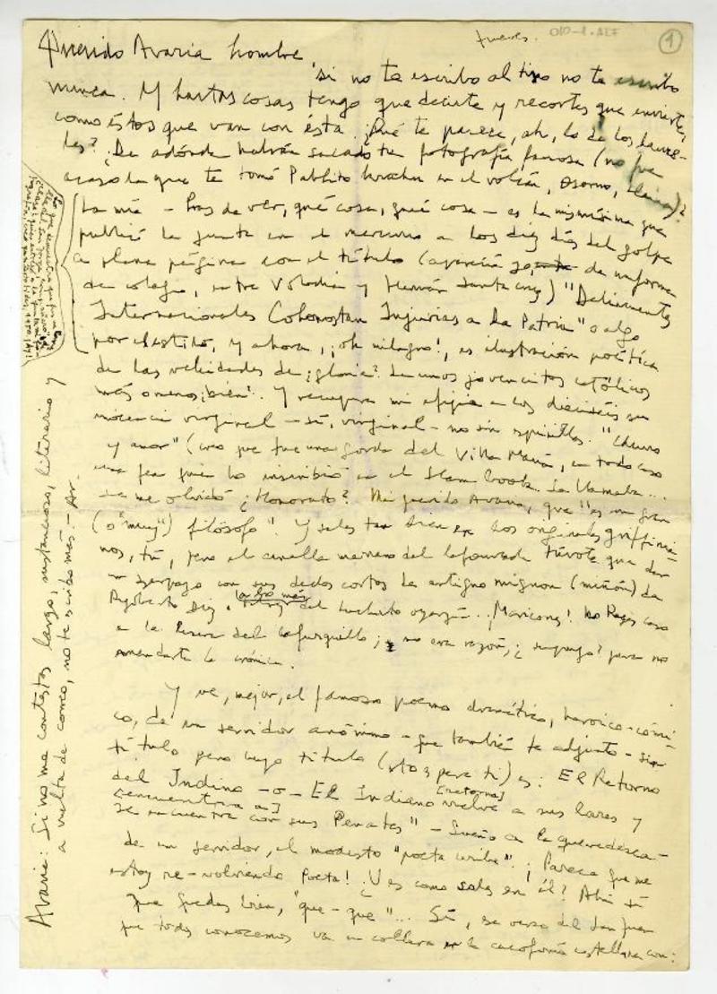 Antofagasta, Chile [a] José Santos González Vera Carta, 1941 abril 6, [manuscrito] Ciro Alegría.