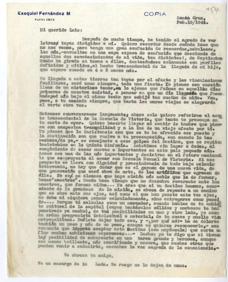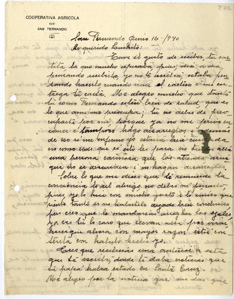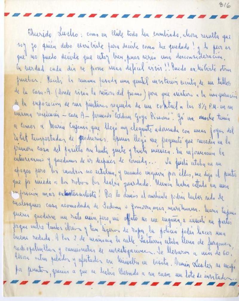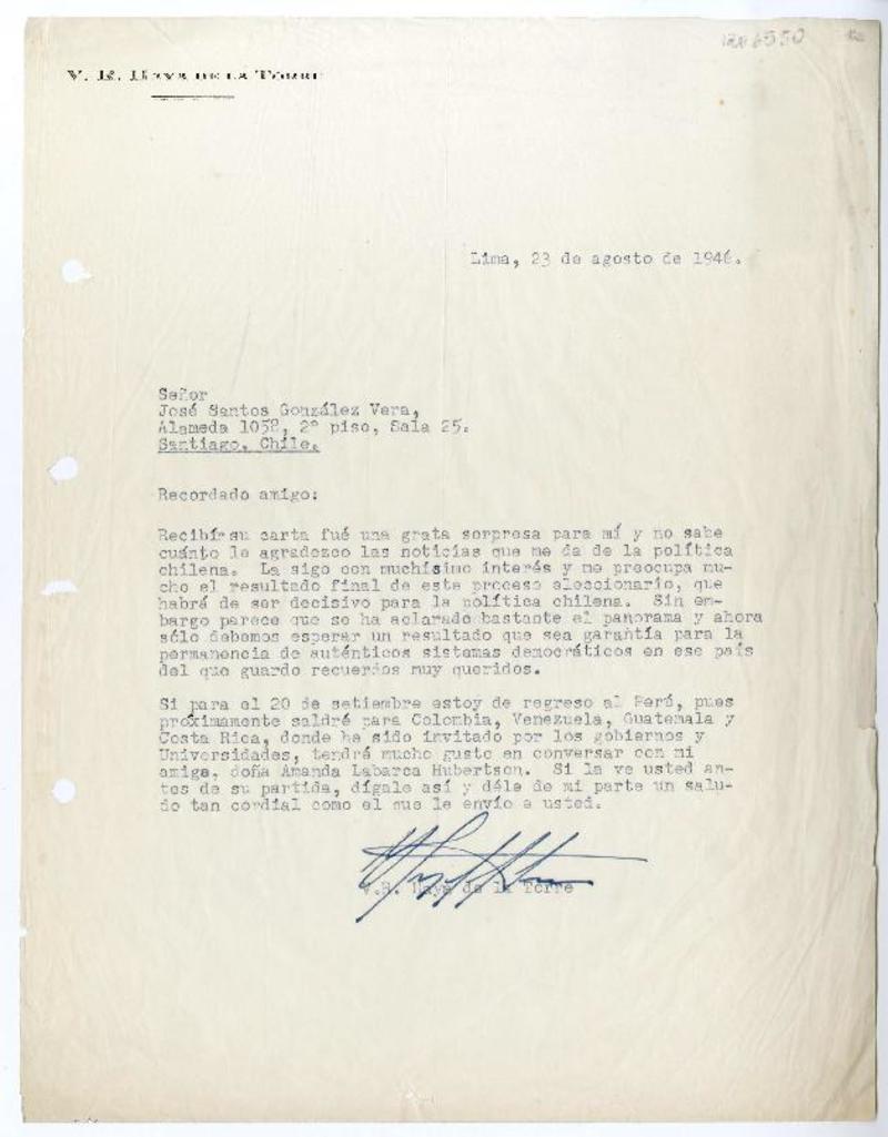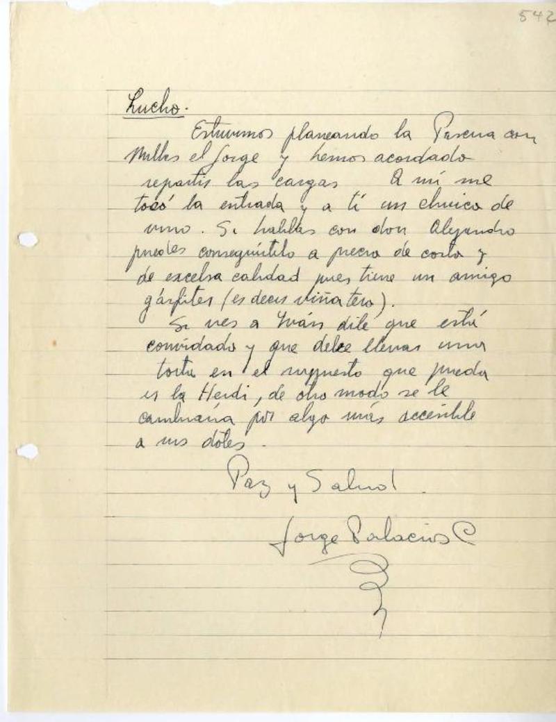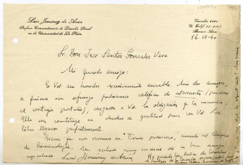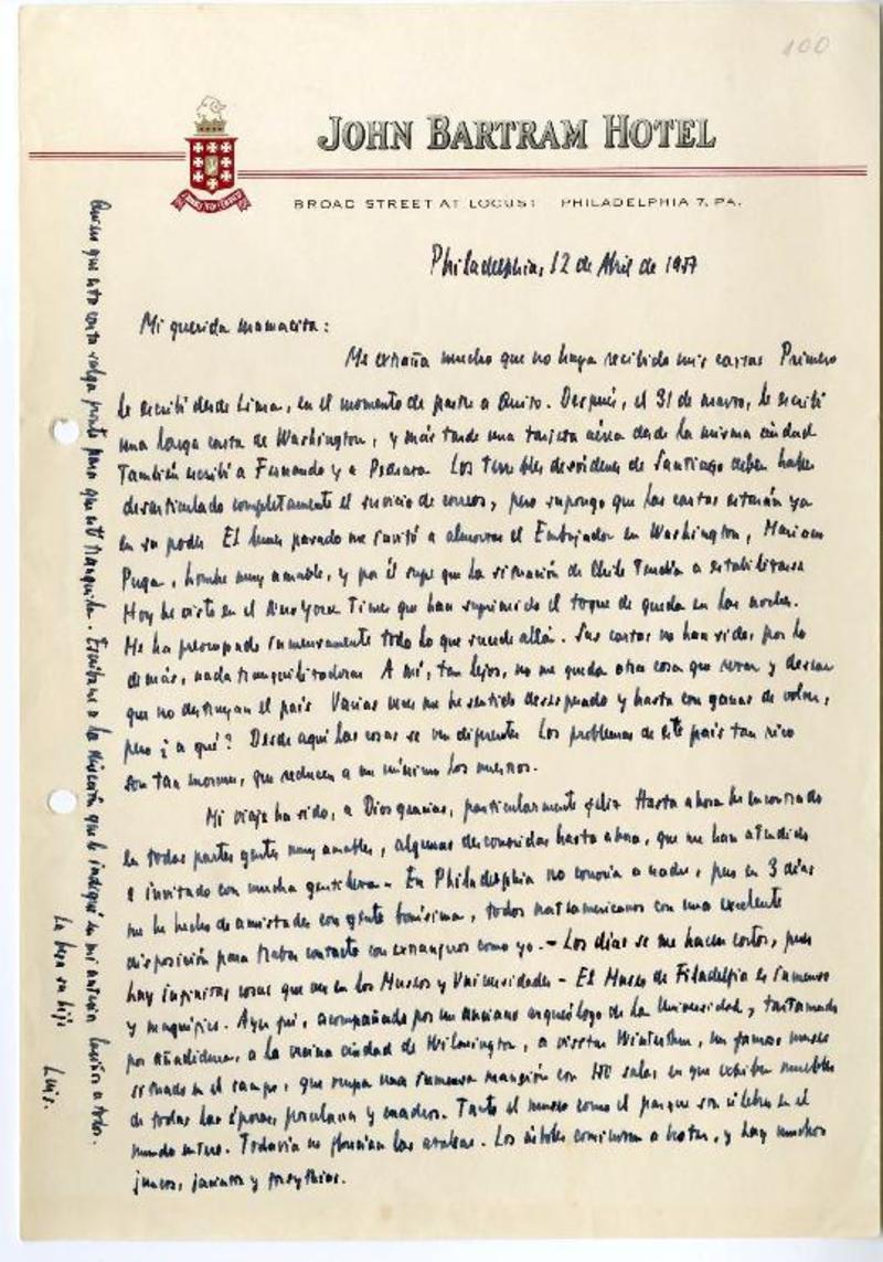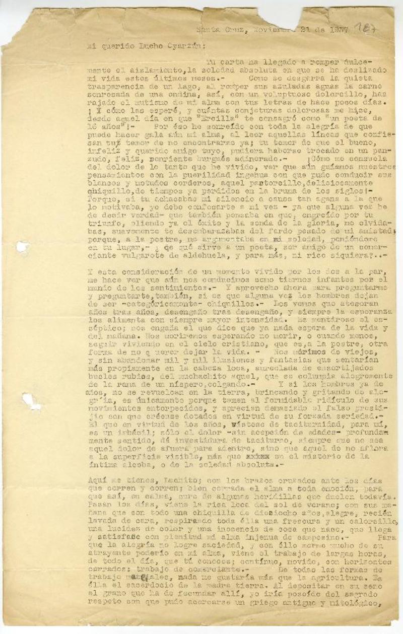 Antofagasta, Chile [a] José Santos González Vera Carta, 1941 abril 6, [manuscrito] Ciro Alegría.