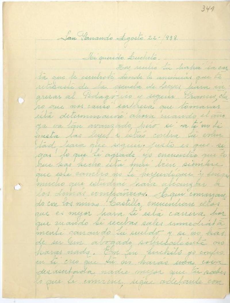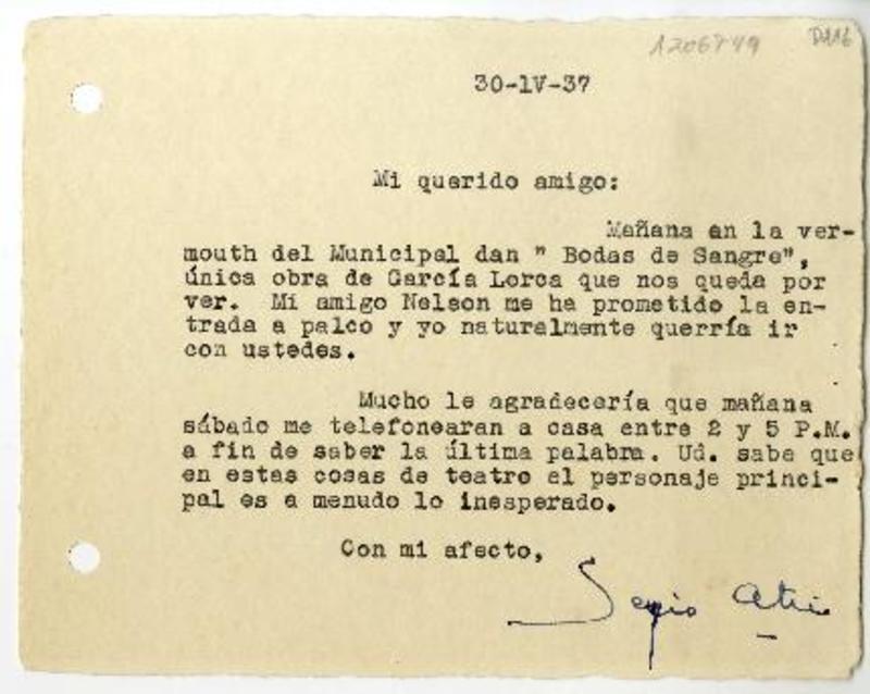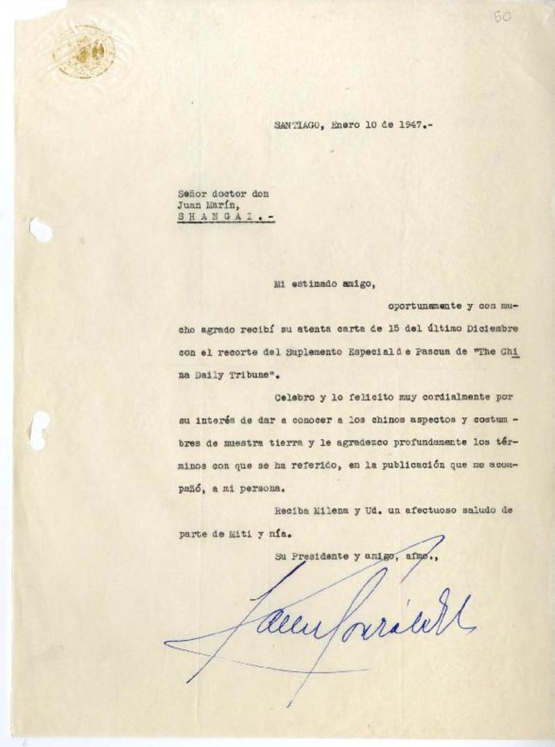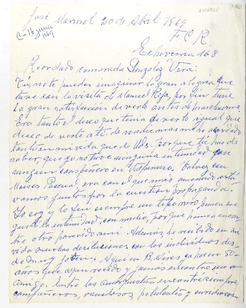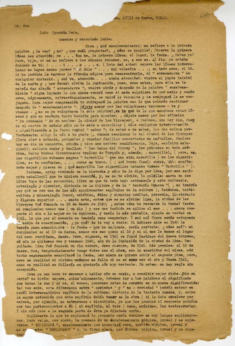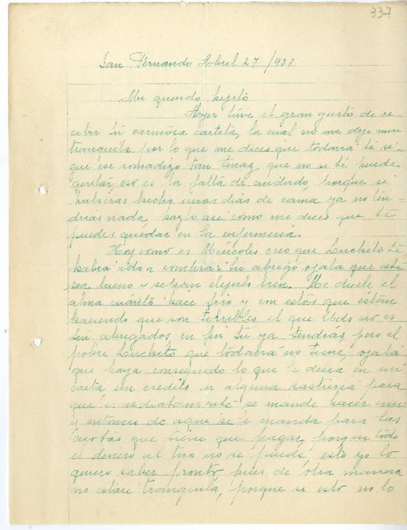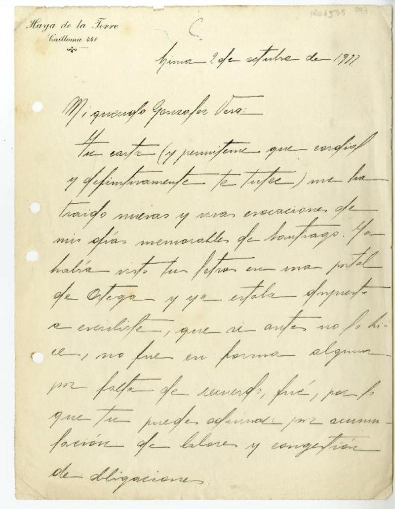 Antofagasta, Chile [a] José Santos González Vera Carta, 1941 abril 6, [manuscrito] Ciro Alegría.