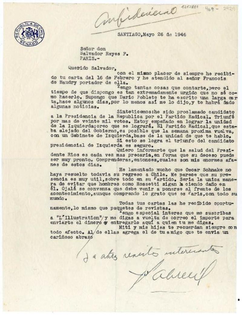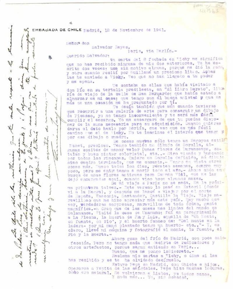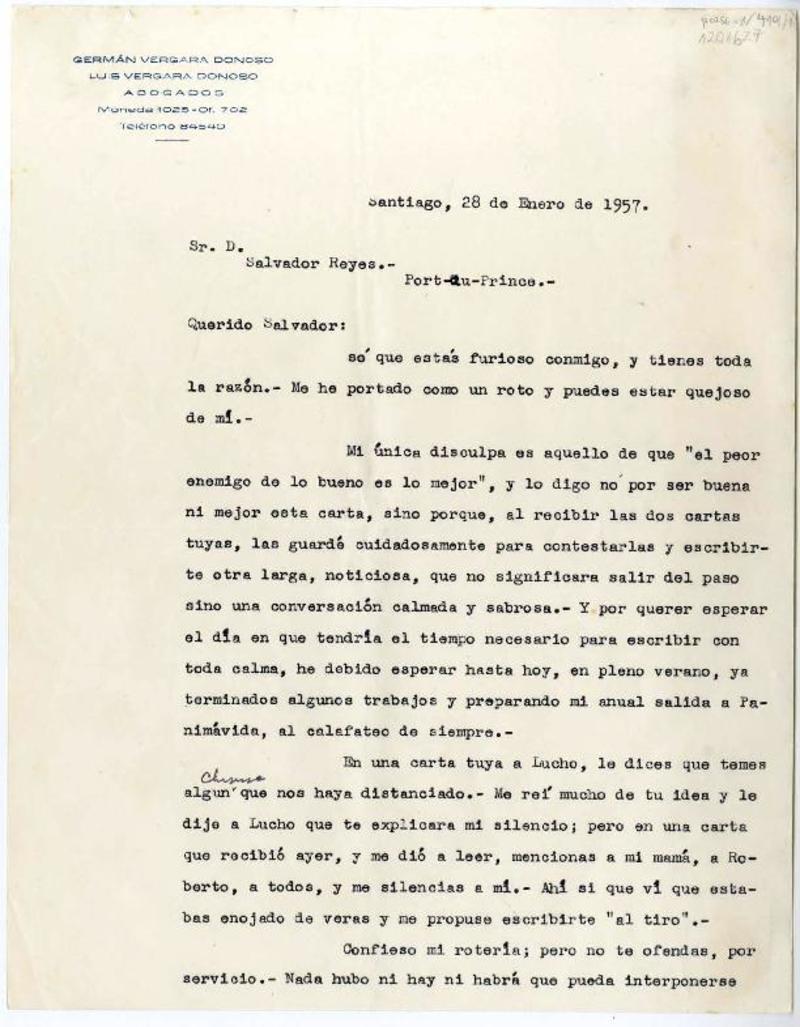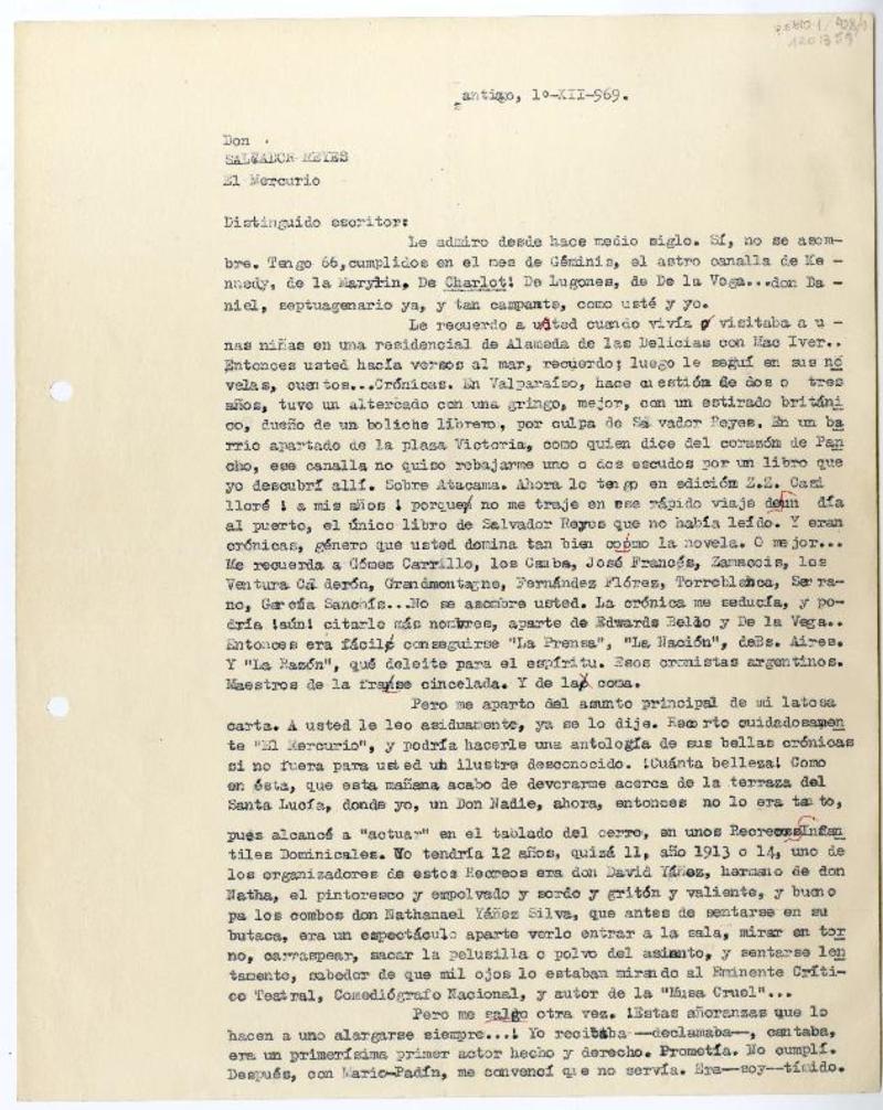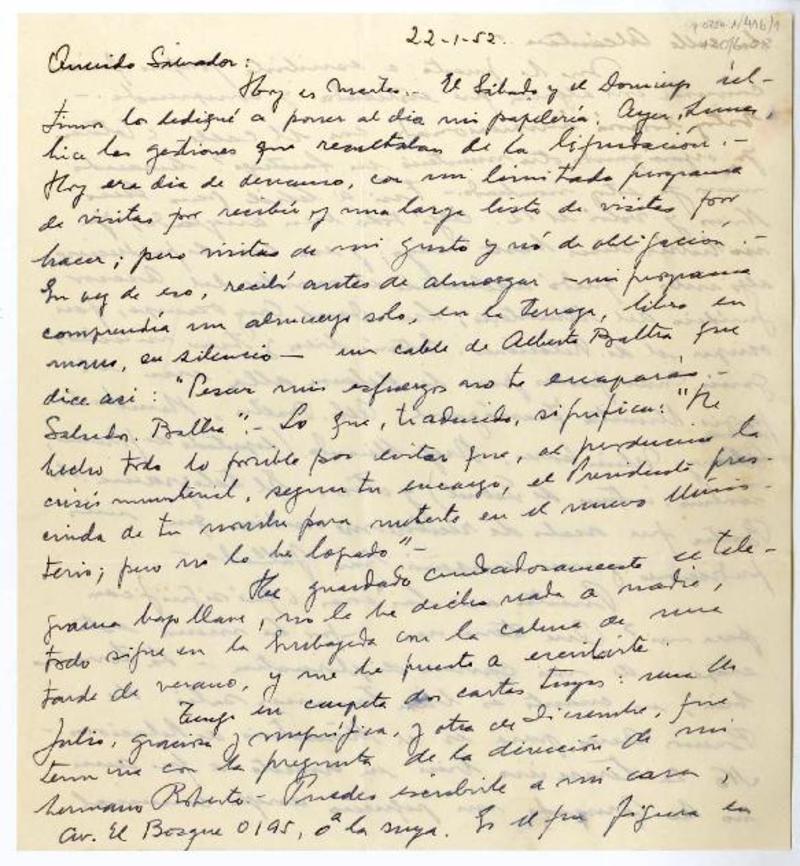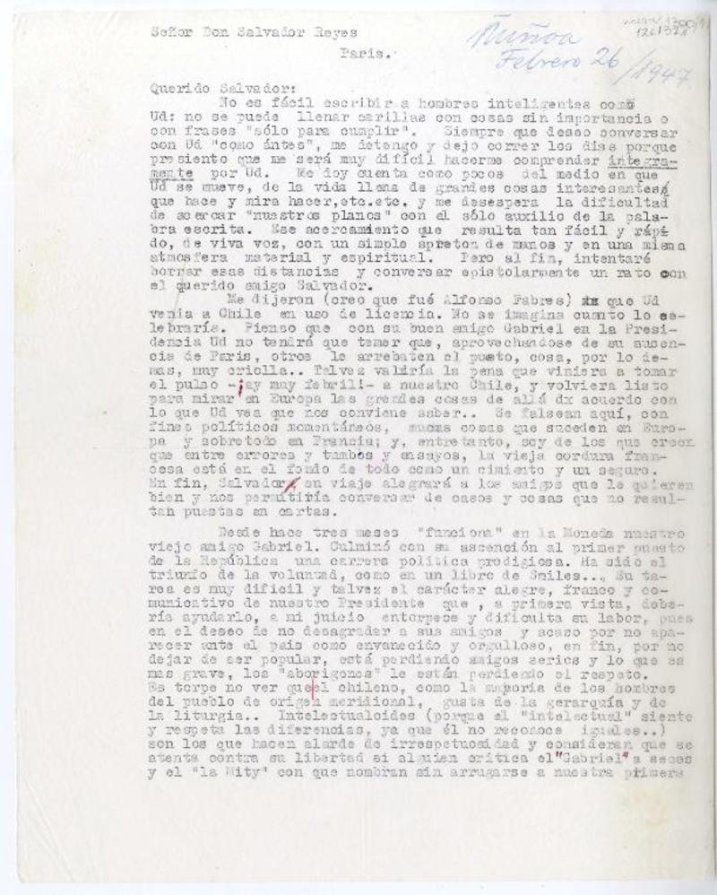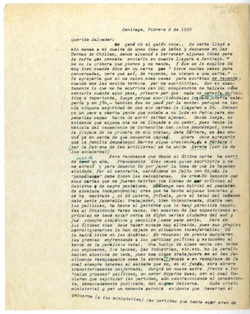 Silva Carvallo, Alfredo - Correspondencia - Autores chilenos - Manuscritos chilenos - Reyes, Salvador