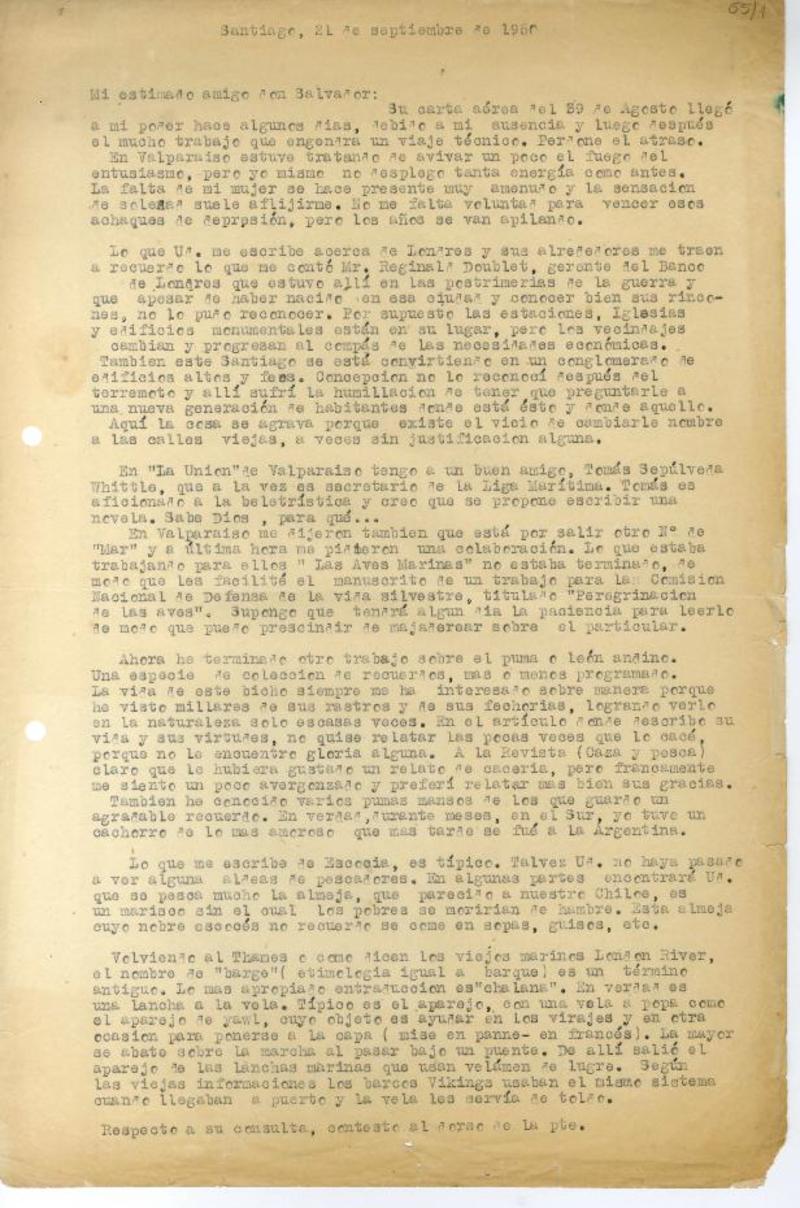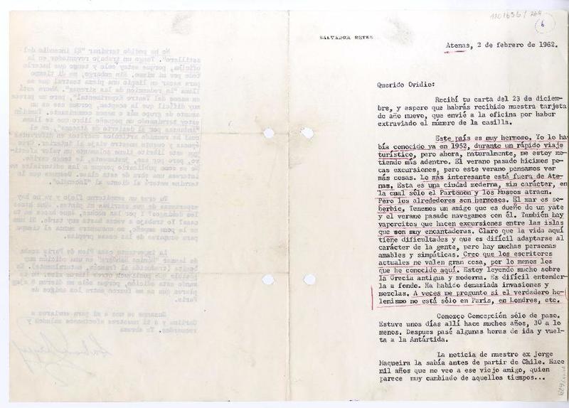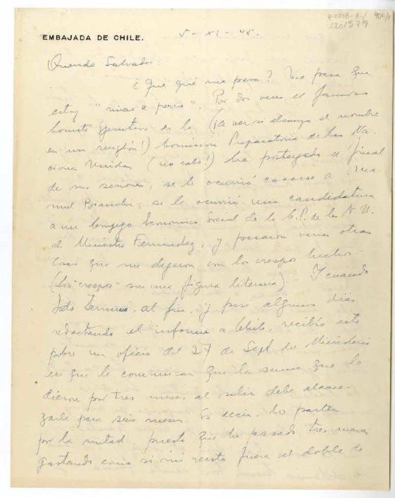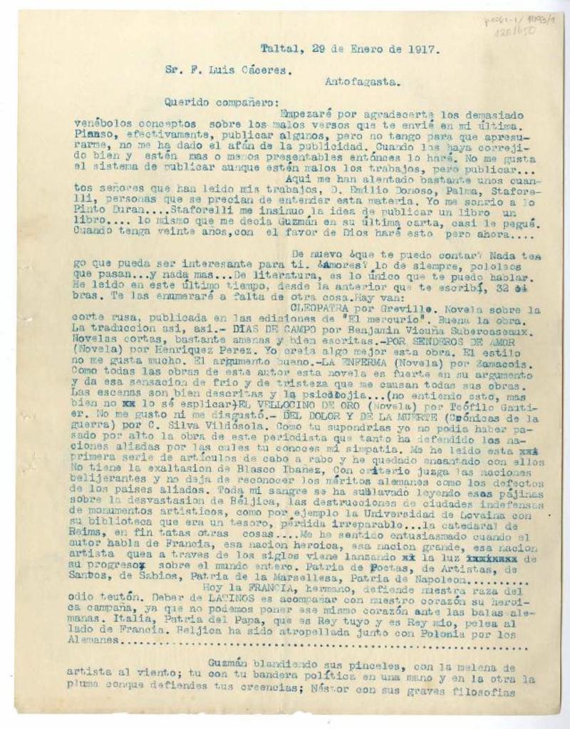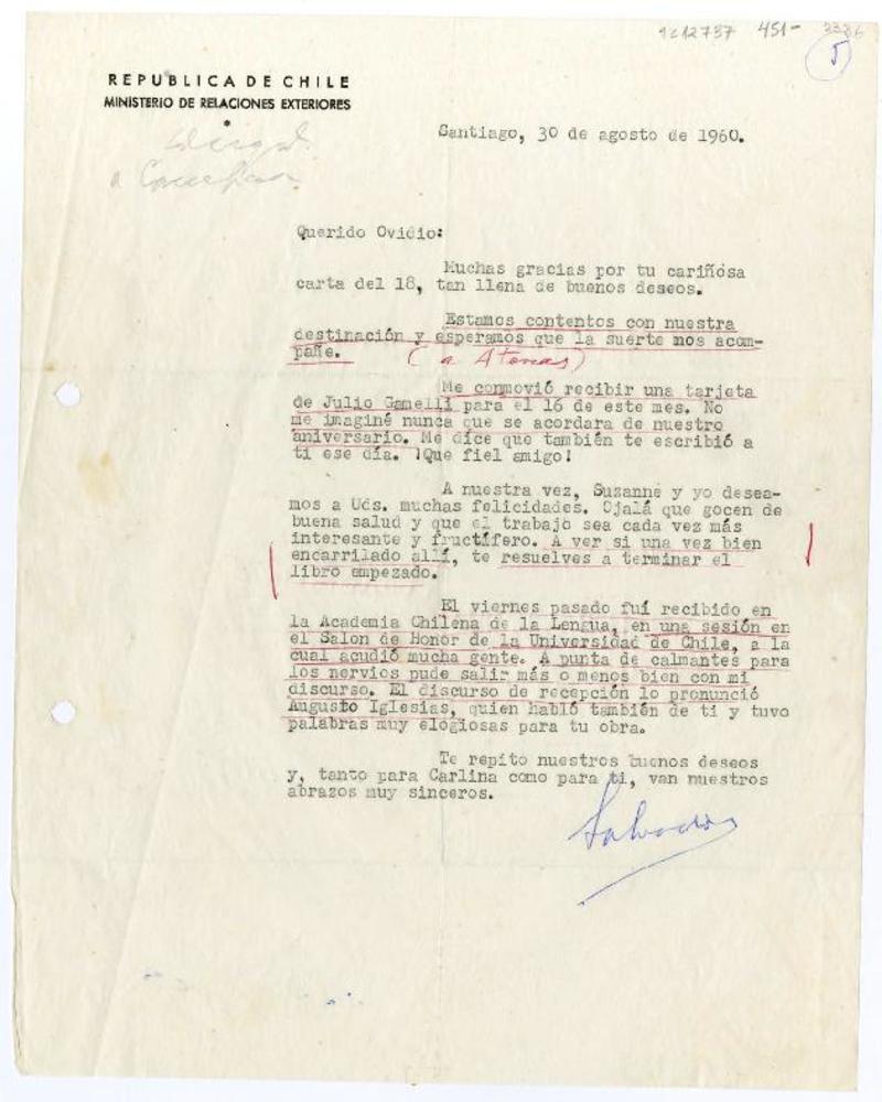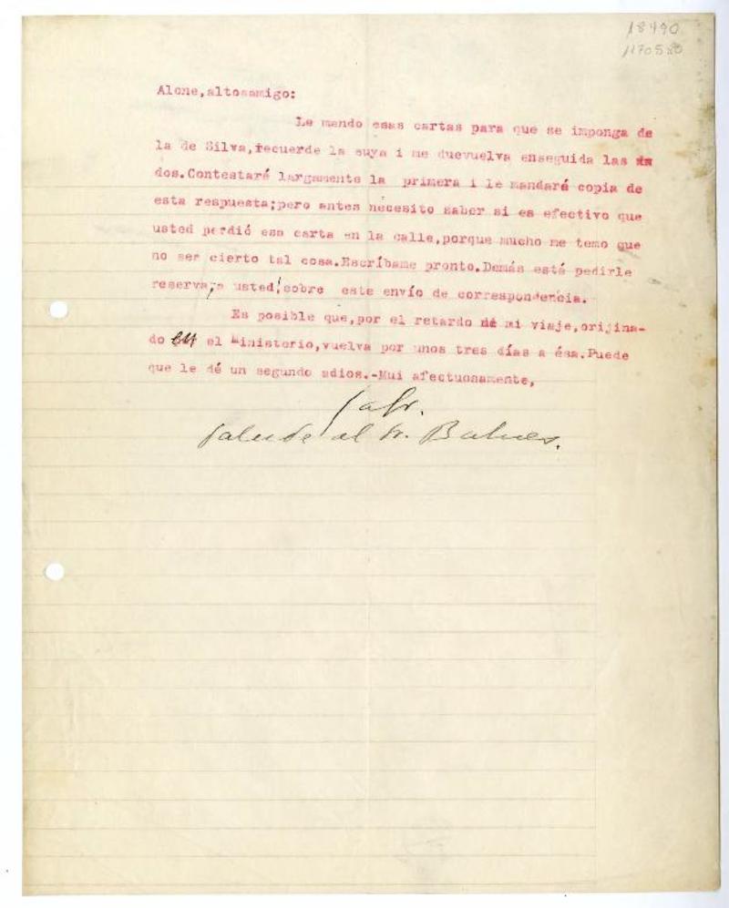 Silva Carvallo, Alfredo - Correspondencia - Autores chilenos - Manuscritos chilenos - Reyes, Salvador
