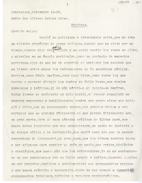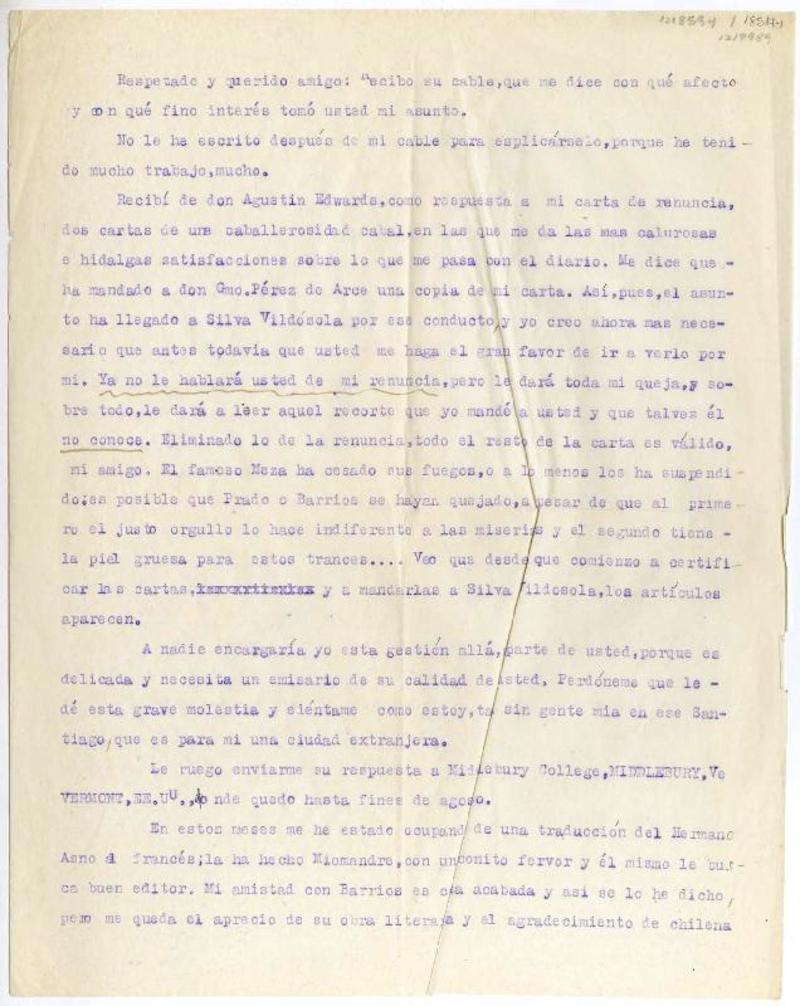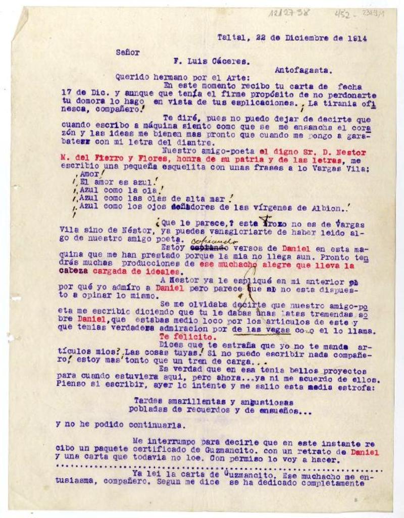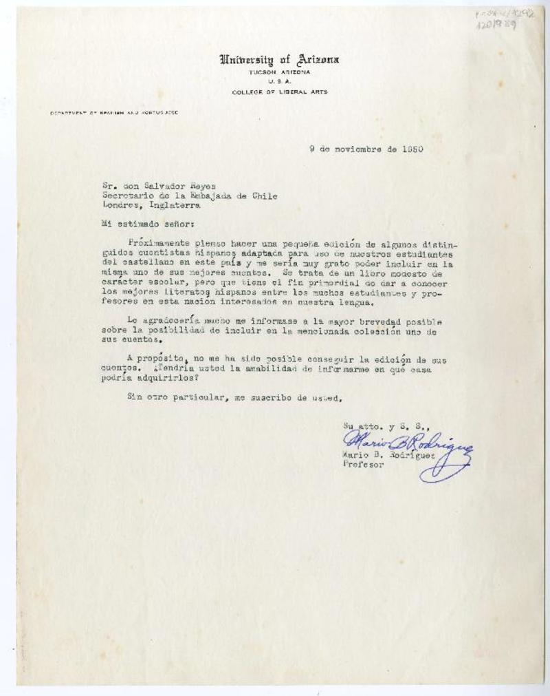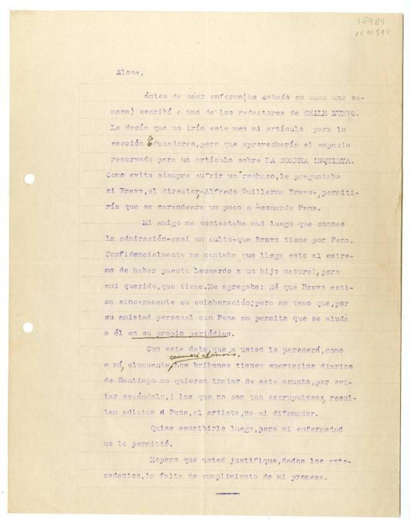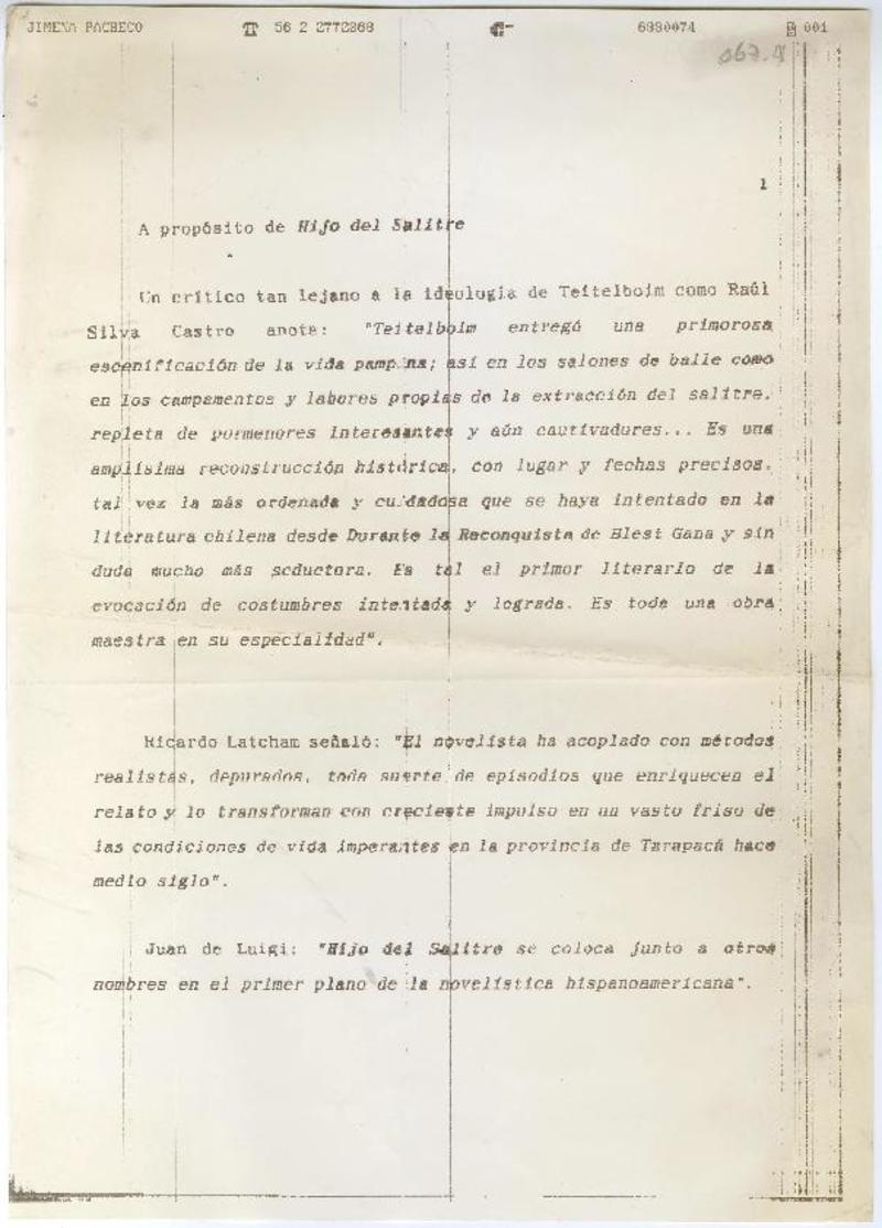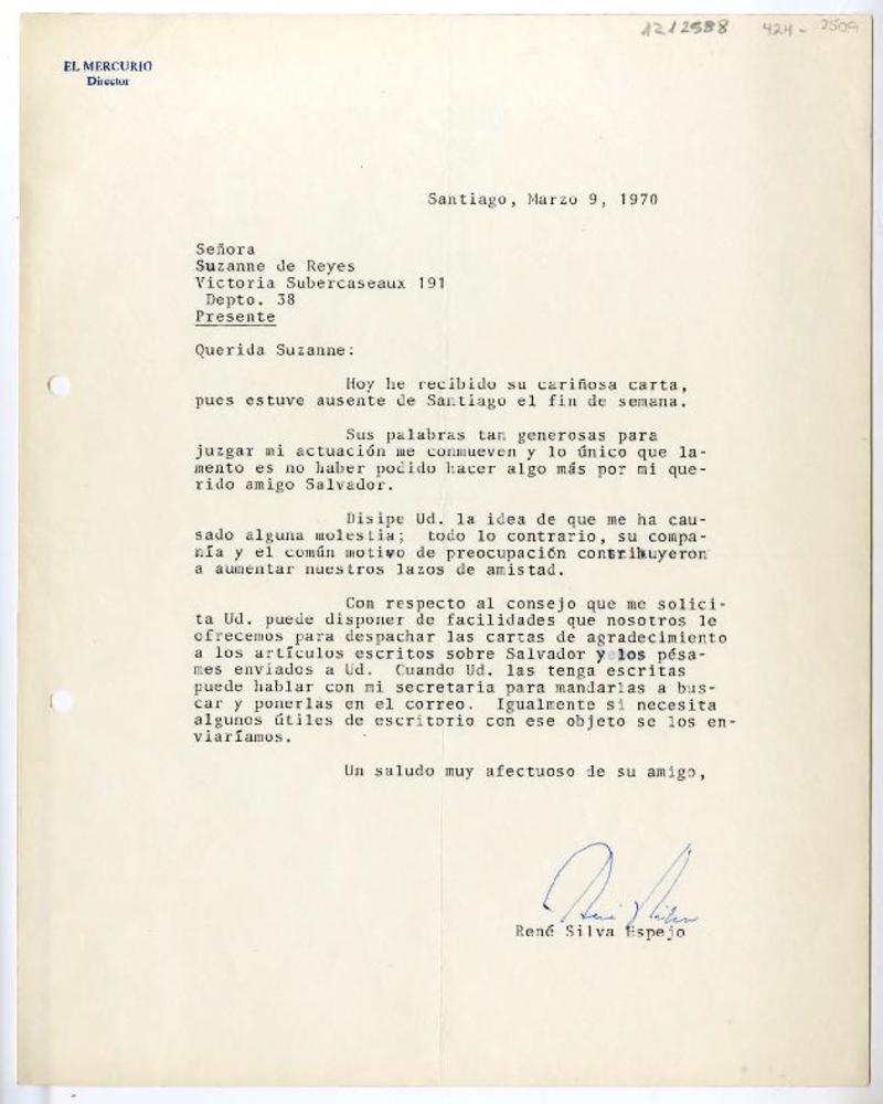 Silva Carvallo, Alfredo - Correspondencia - Autores chilenos - Manuscritos chilenos - Reyes, Salvador