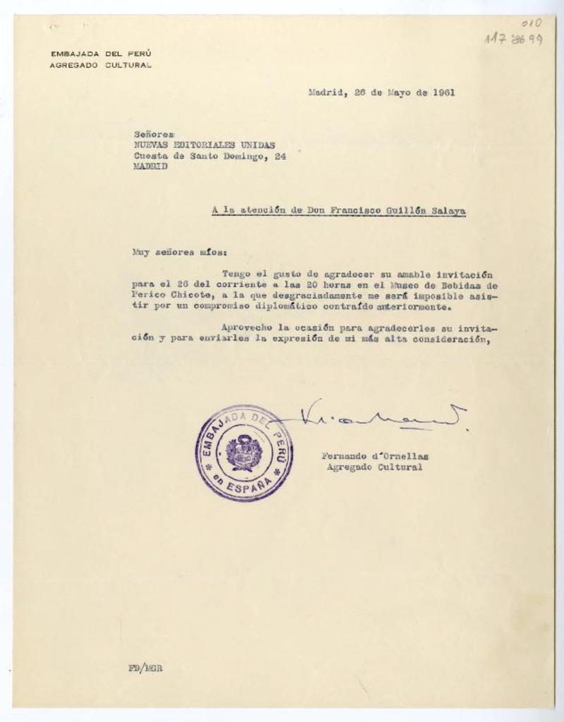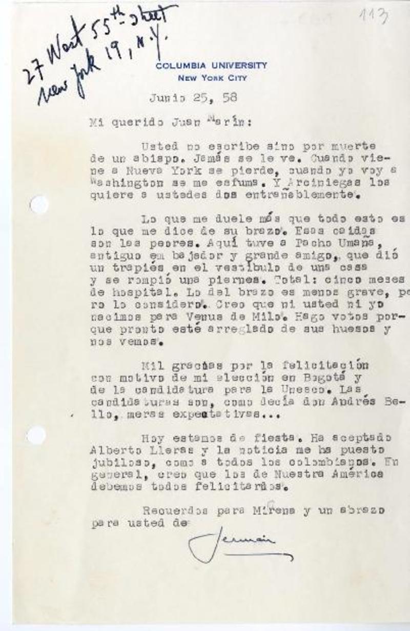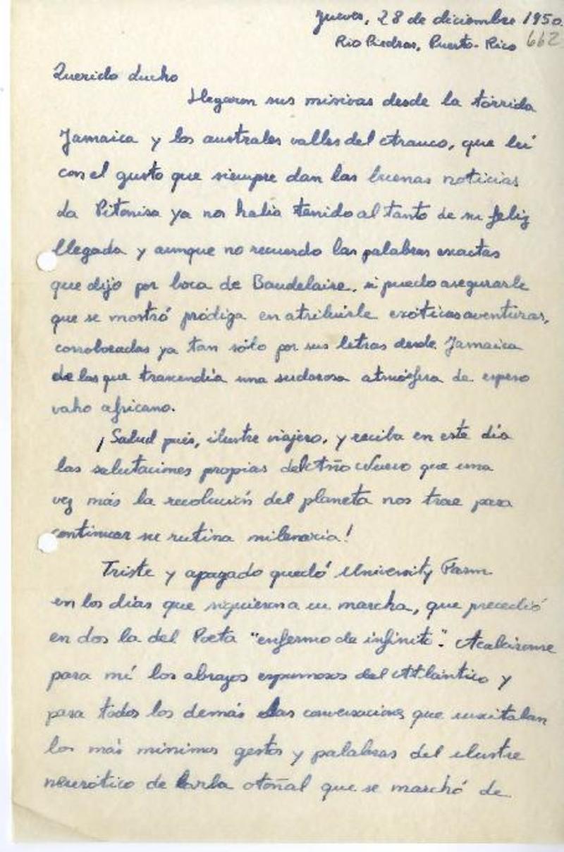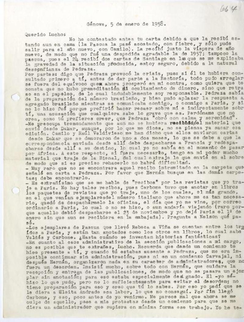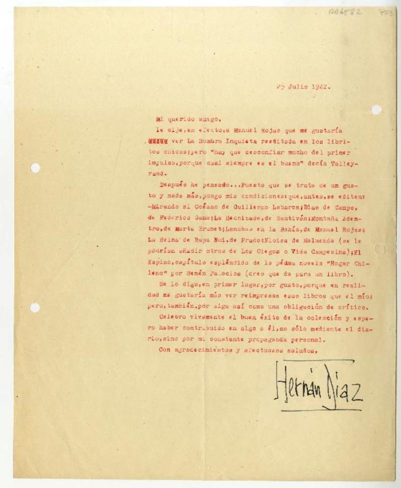 A bordo del vapor "Italia" [a] Humberto Díaz-Casanueva Carta, 1958 julio 14, [manuscrito] Enrique Bello.