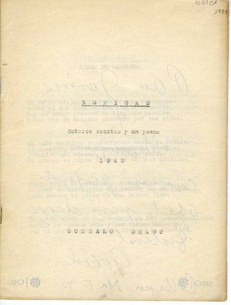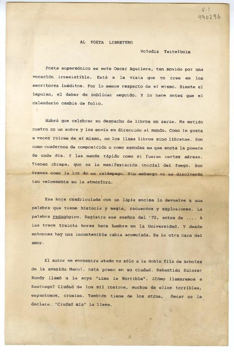 Aguilera, Oscar - Poesías chilenas - Manuscritos chilenos