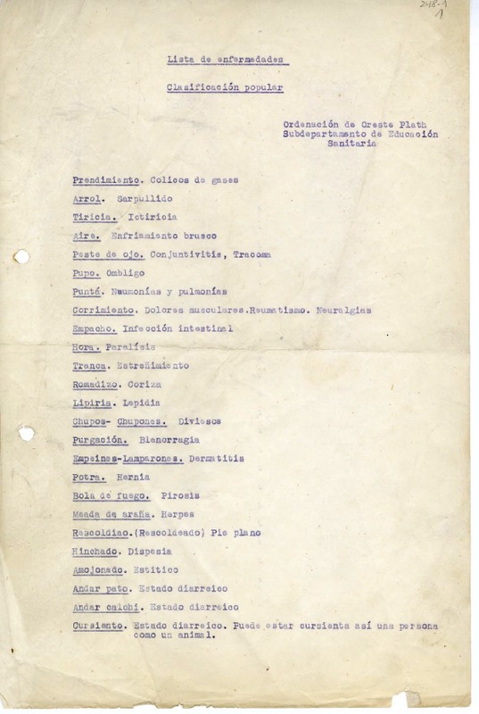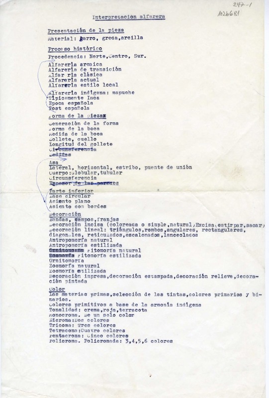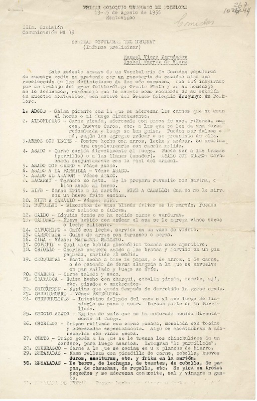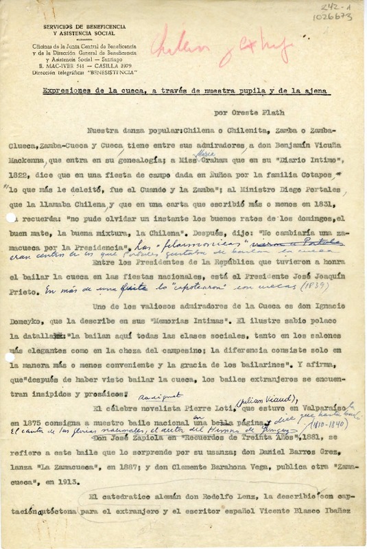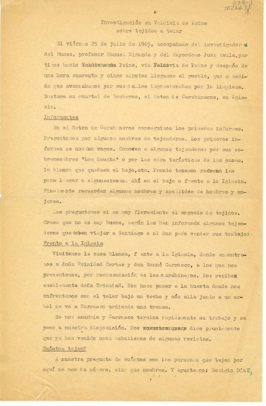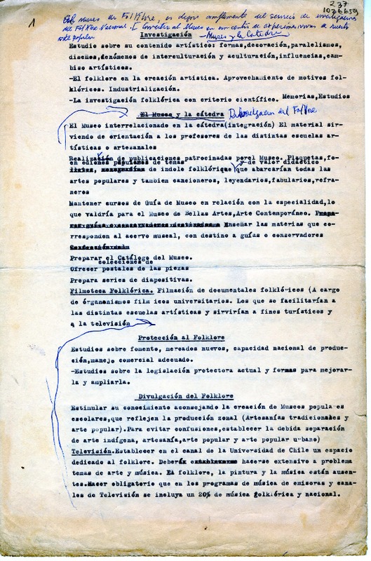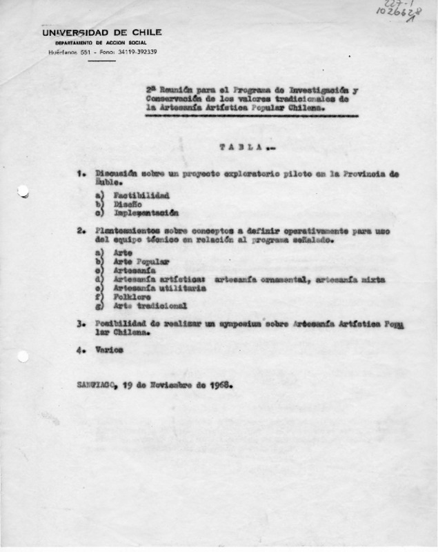 2° Reunión para el programa de investigación y conservación de los valores tradicionales de Artesanía Artística popular Chilena. [manuscrito] Oreste Plath.