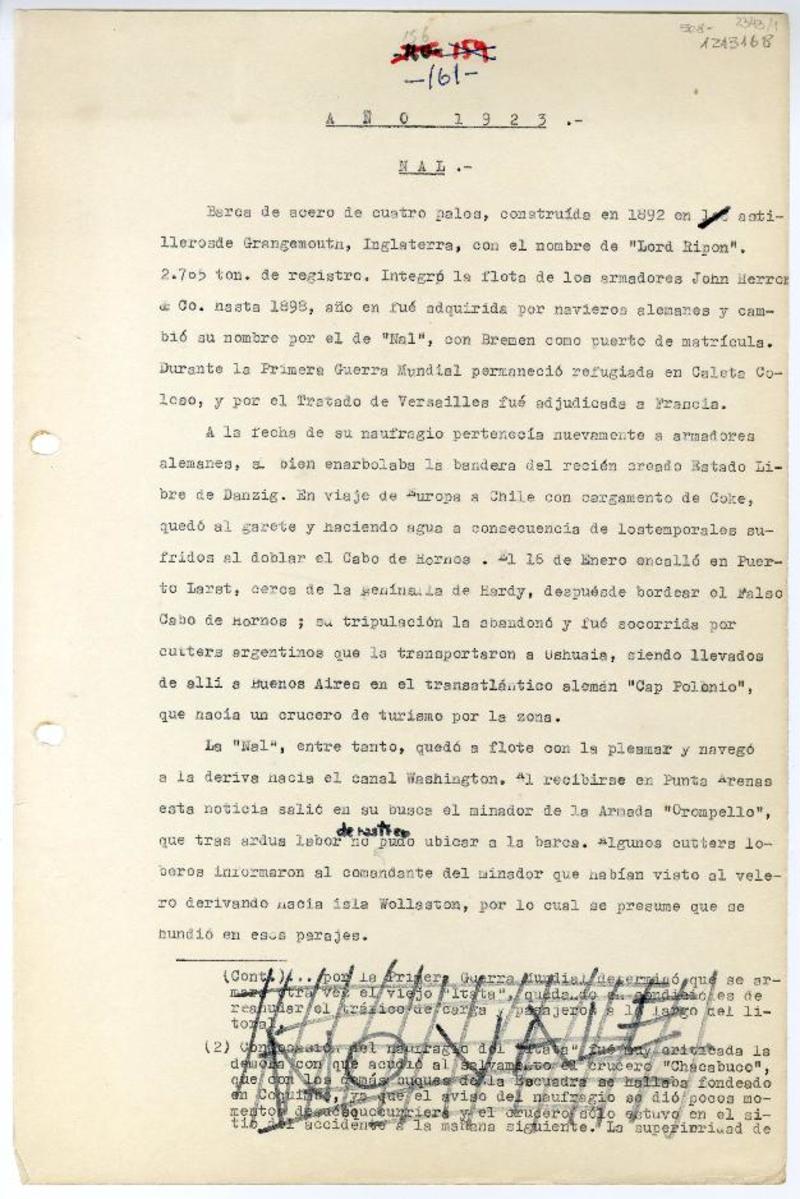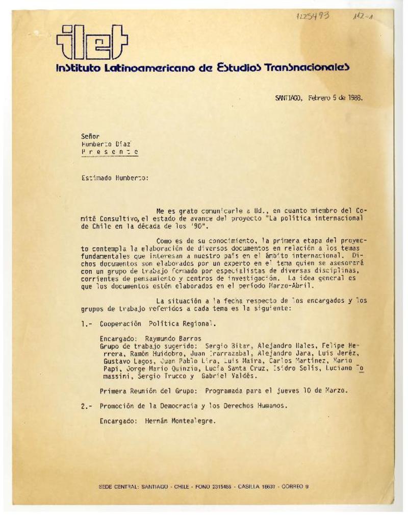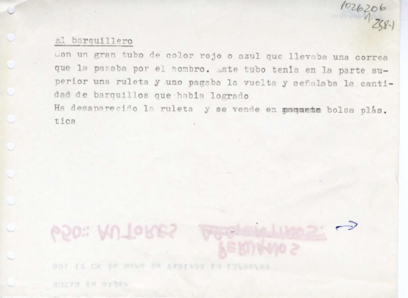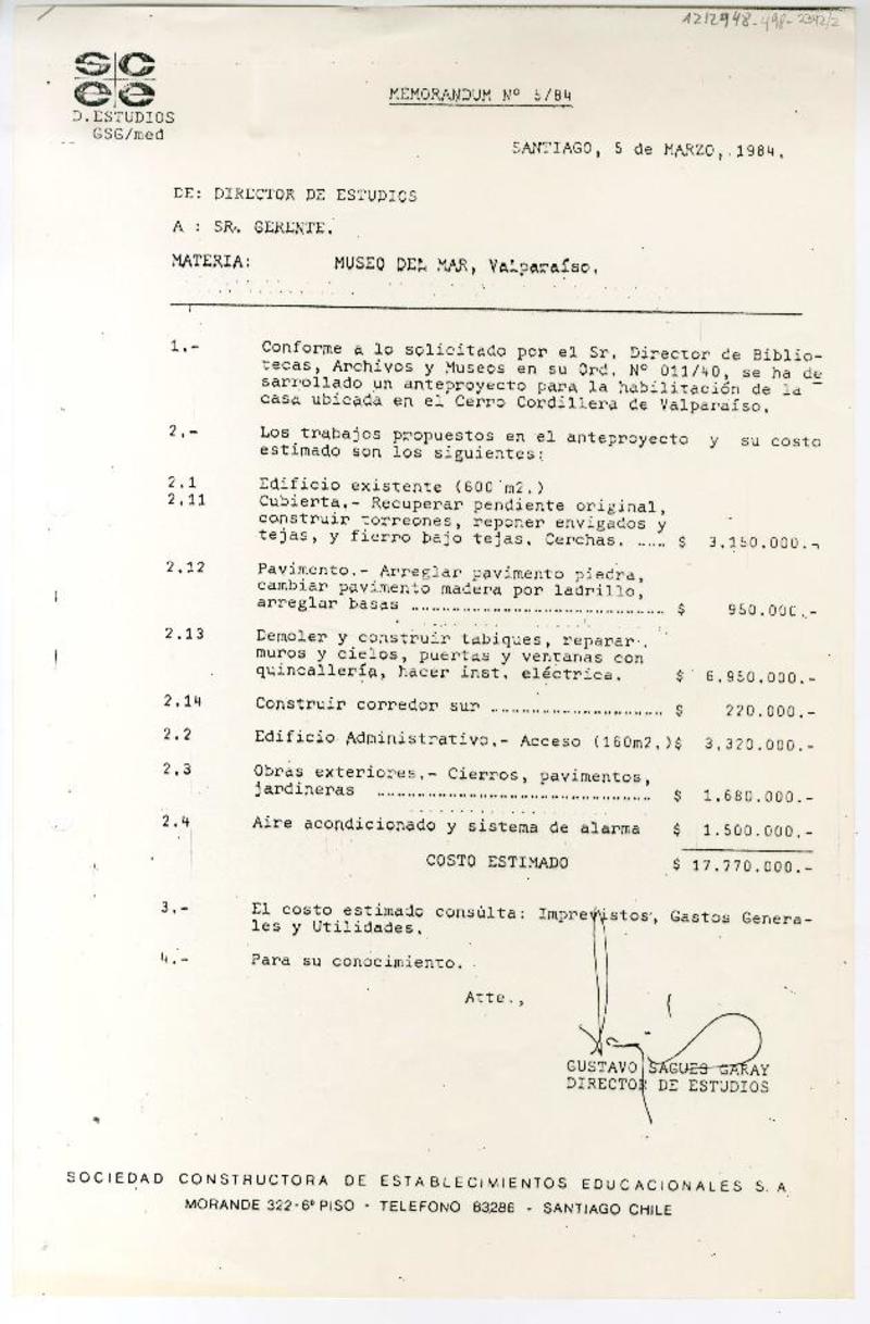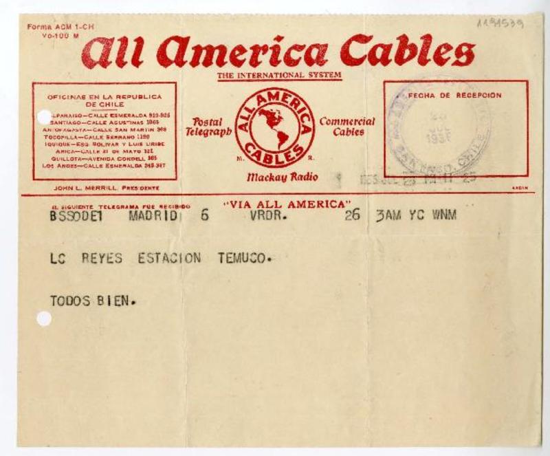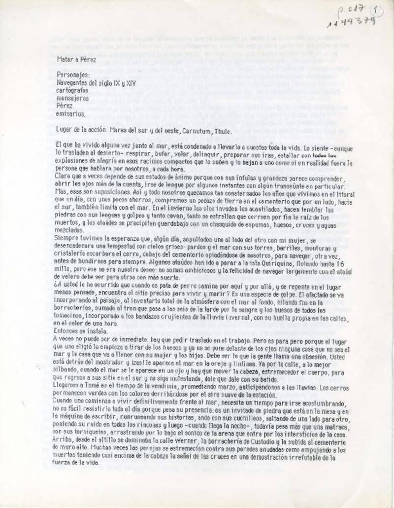Viña del Mar, Chile [a] Funcionarios Comunicado, cerca de 1994, [manuscrito] Museo de la Cultura y el Mar (Valparaíso, Chile).