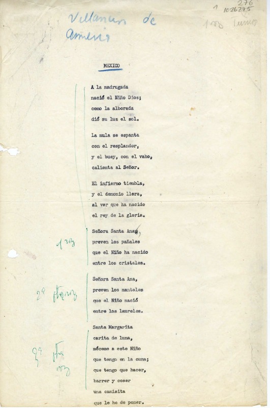 Villancicos de América [manuscrito] Recopilado y transcrito por Oreste Plath.