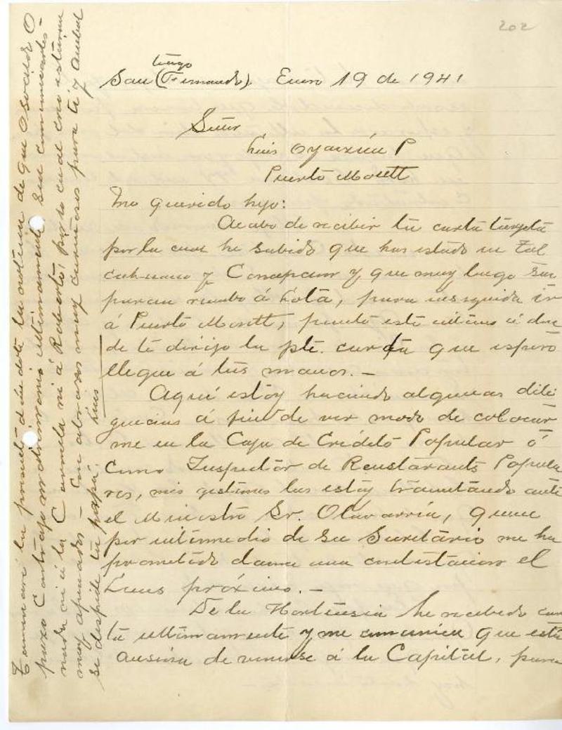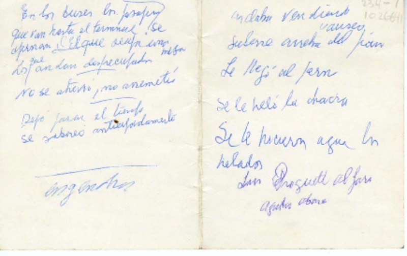 [Voy de vuelta a mi pueblo en el tren de la noche ...] [manuscrito] Oscar Castro.