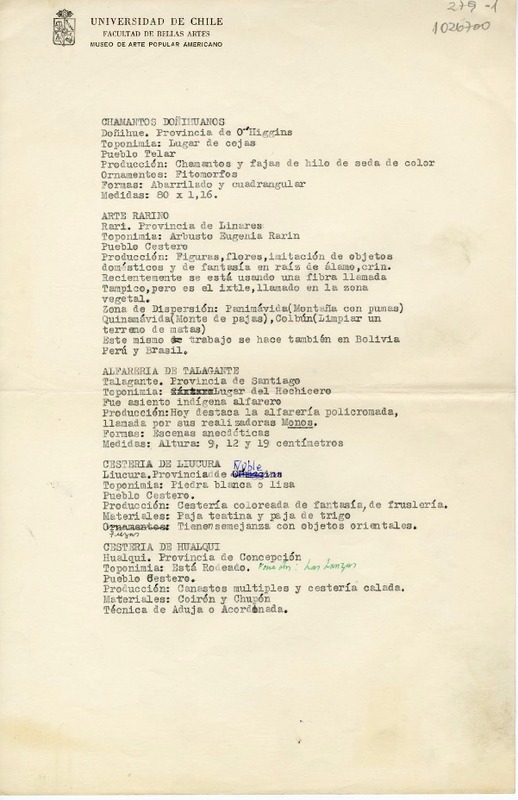 Artesanías - Arte folklórico - Manuscritos chilenos