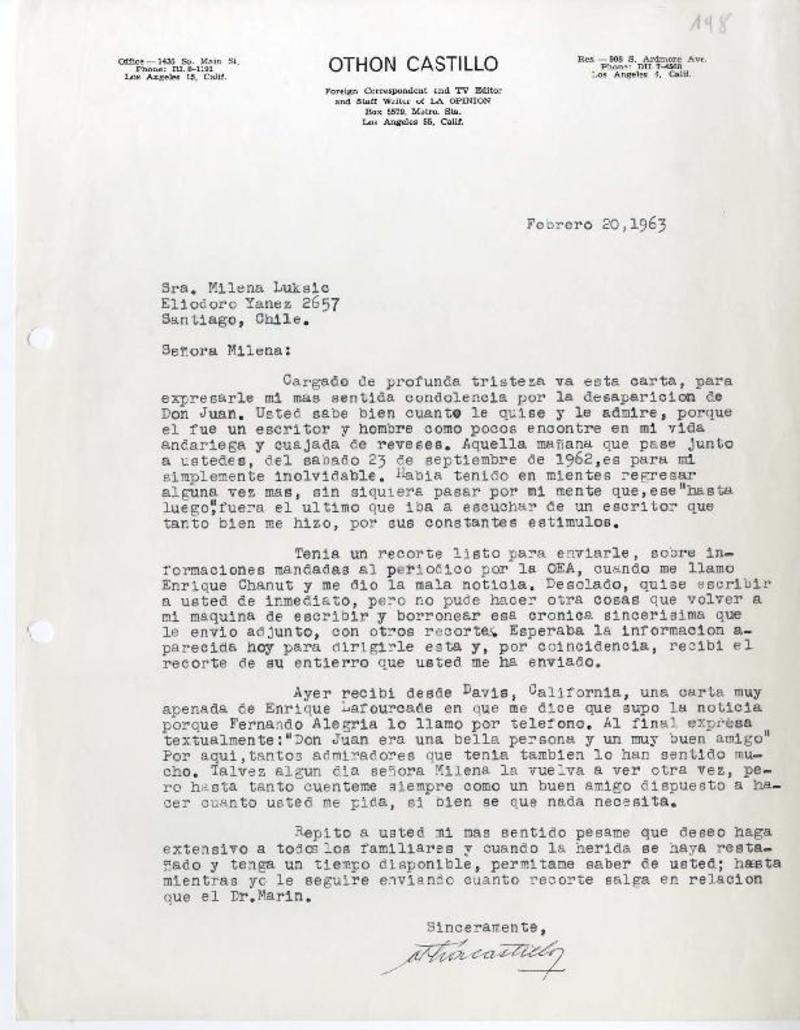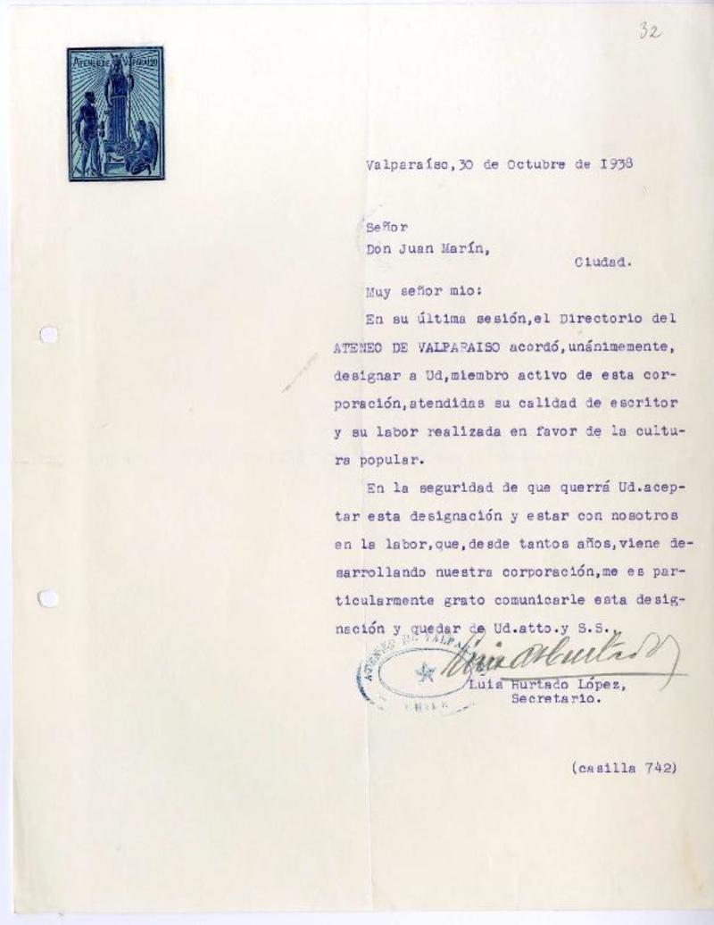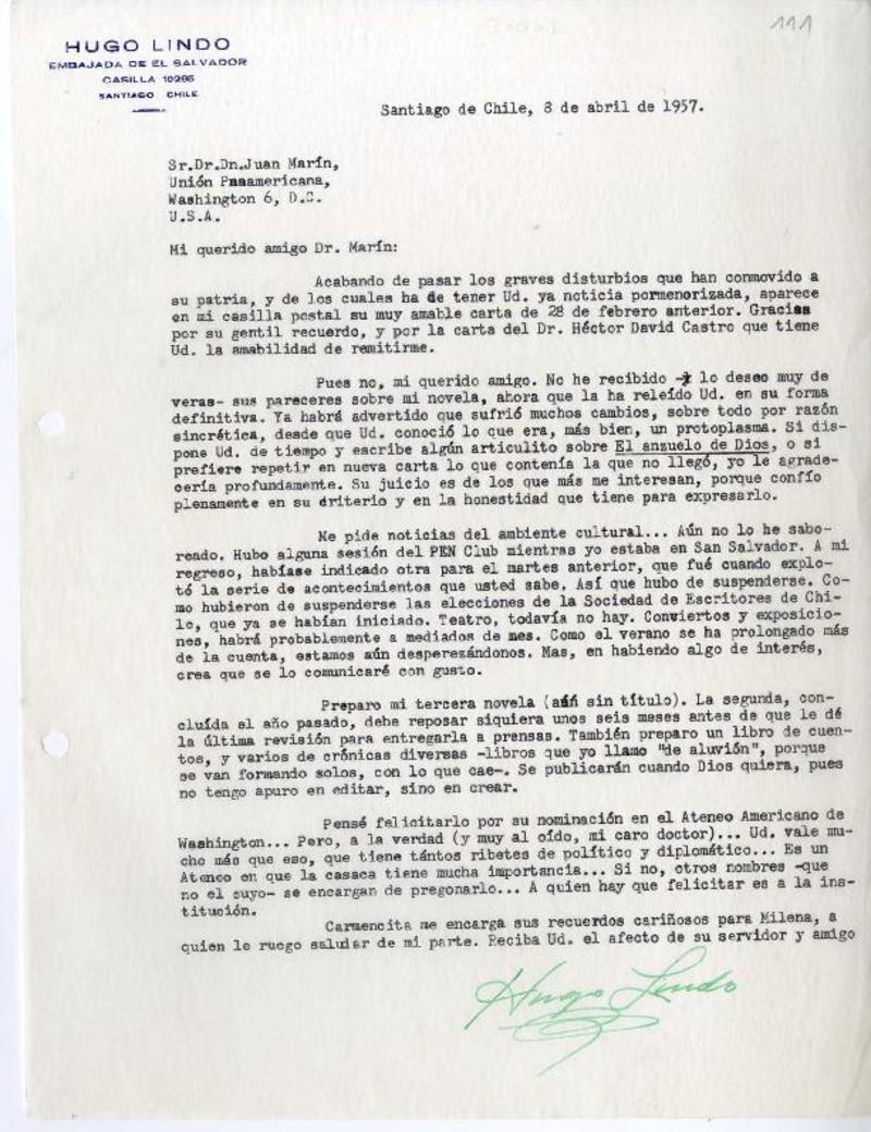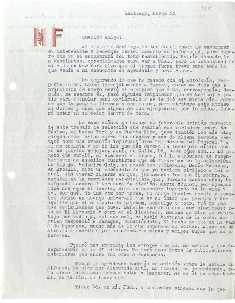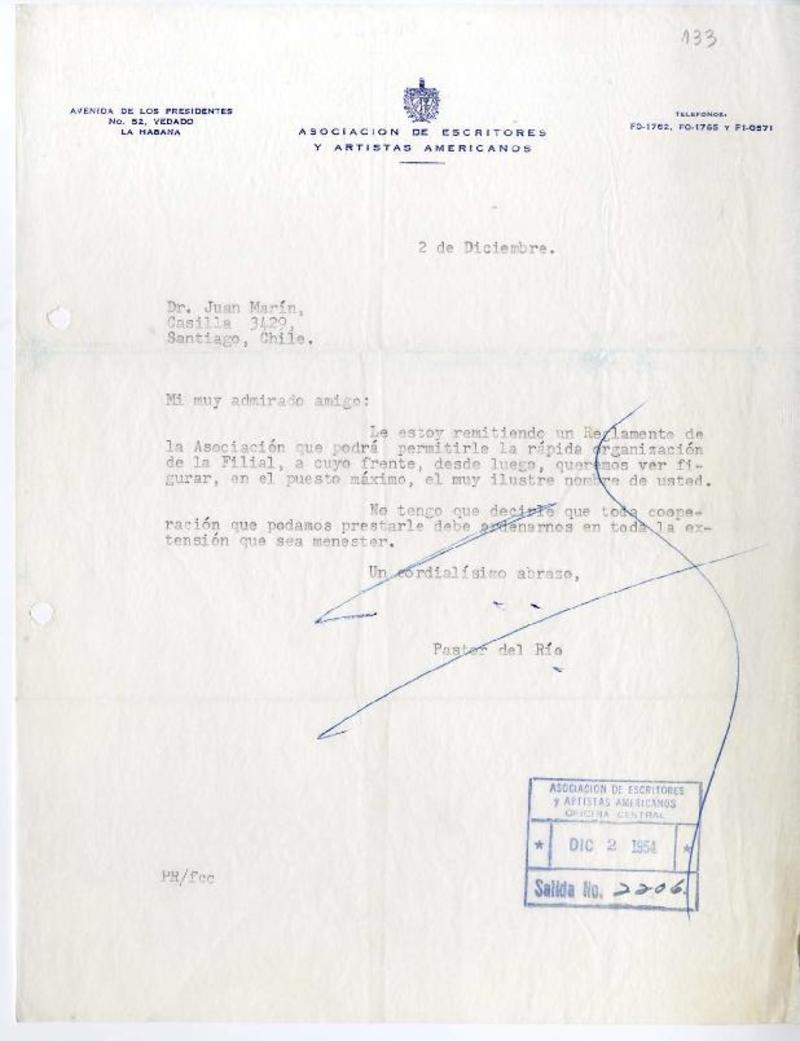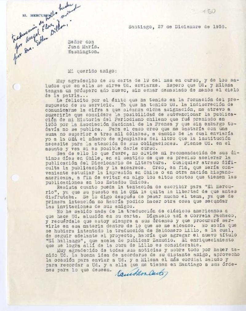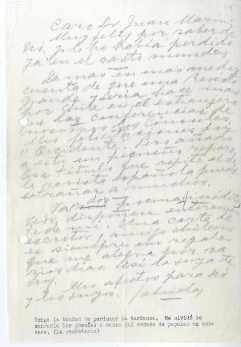 Castro, Óscar - Correspondencia - Autores chilenos - Manuscritos chilenos - Marín, Juan