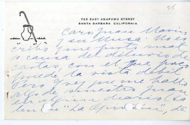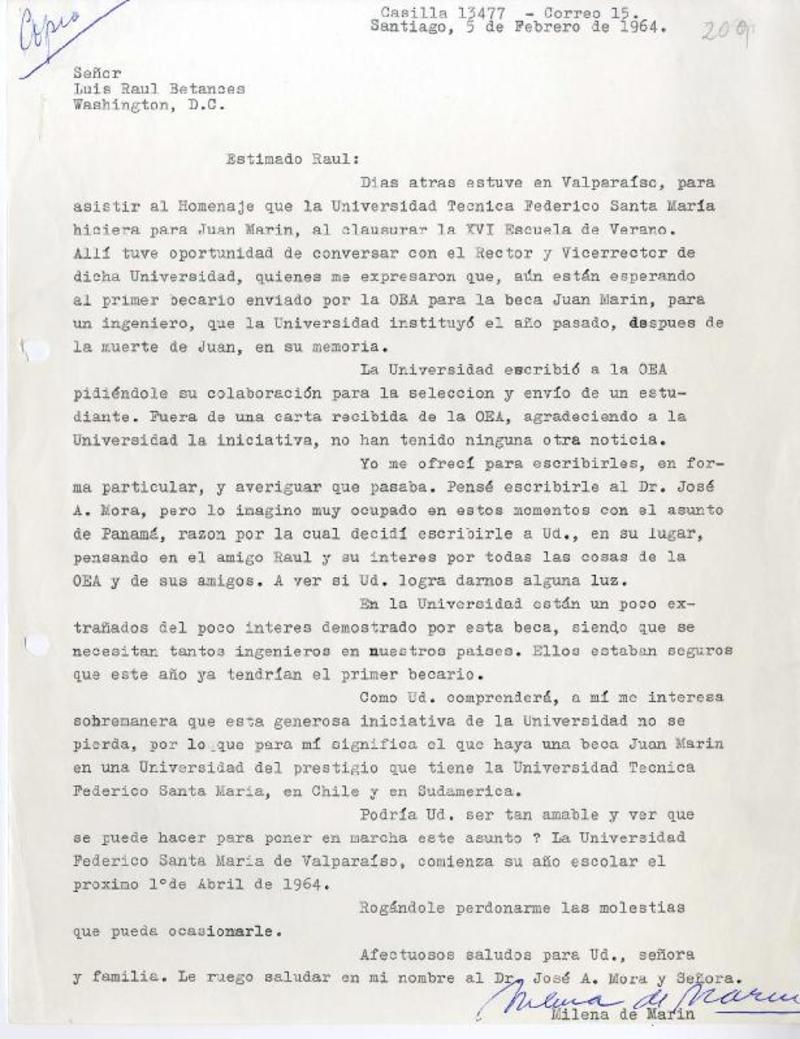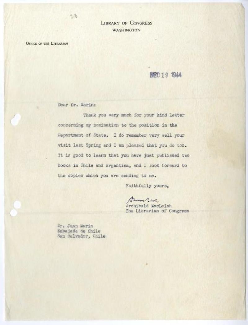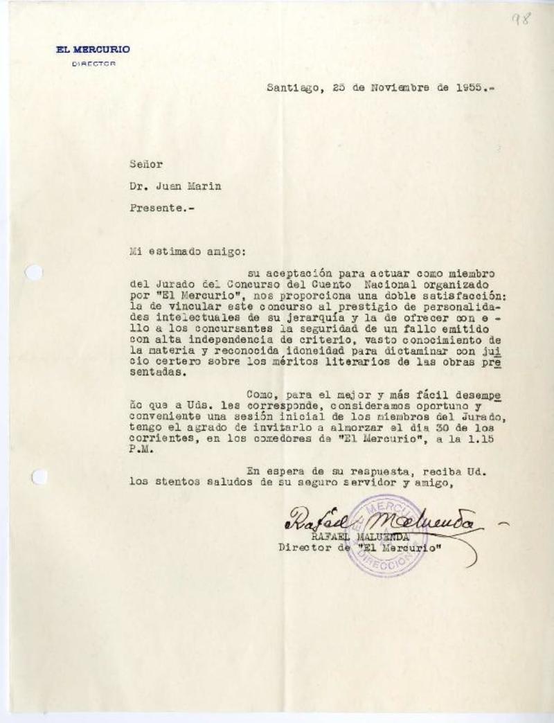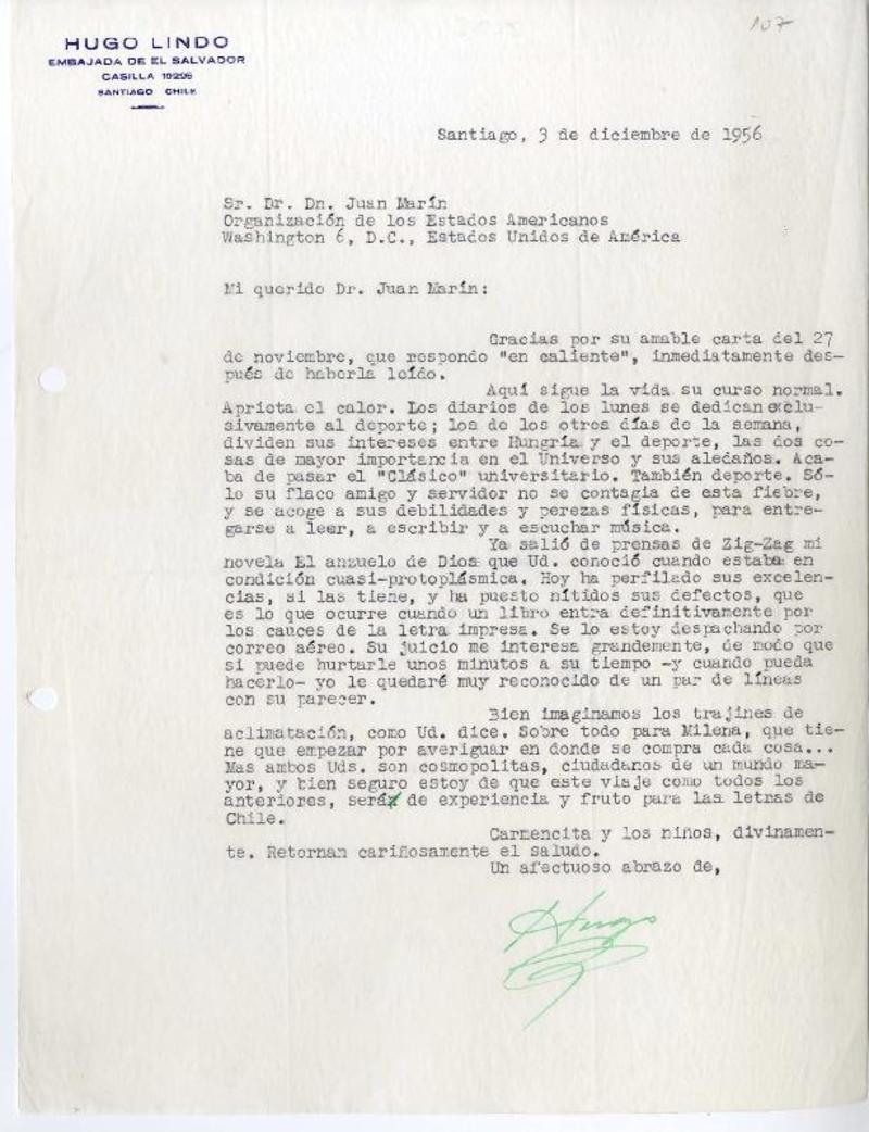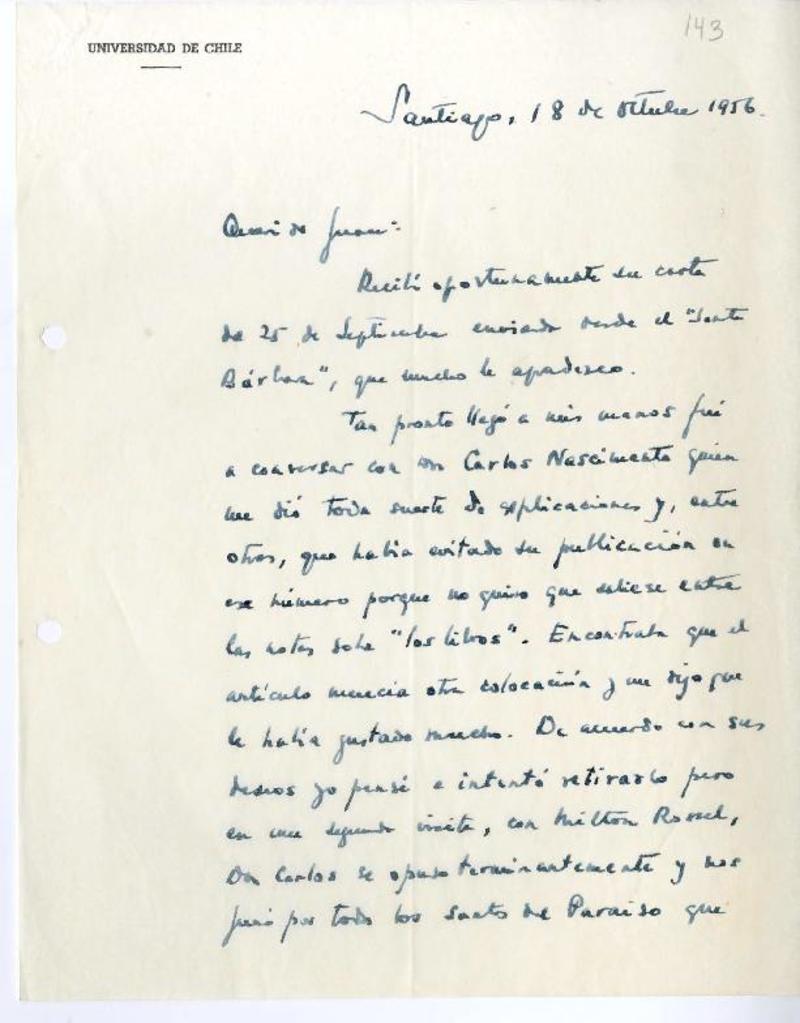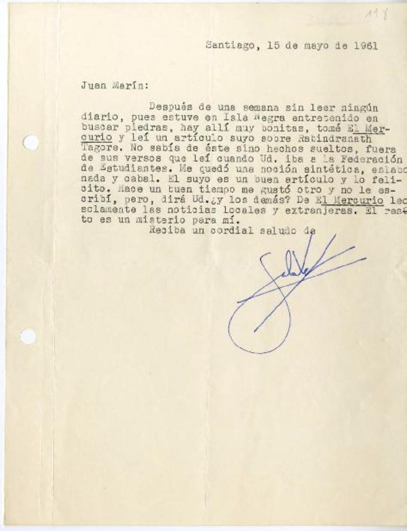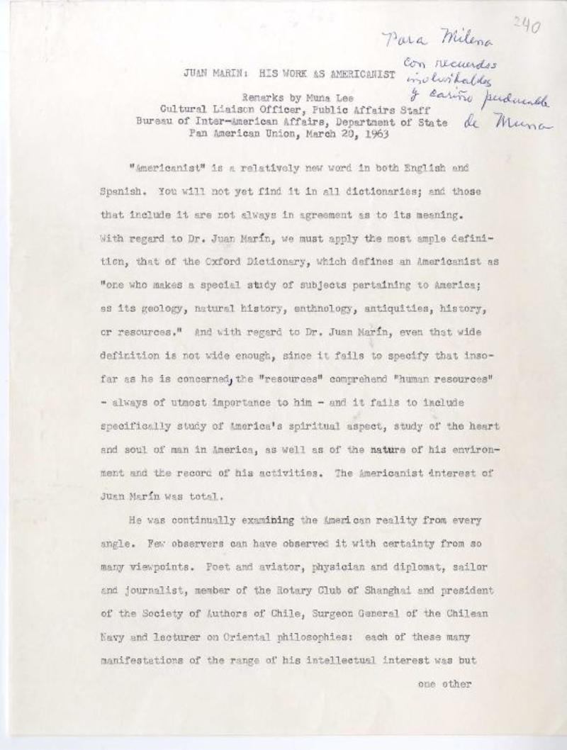 Castro, Óscar - Correspondencia - Autores chilenos - Manuscritos chilenos - Marín, Juan