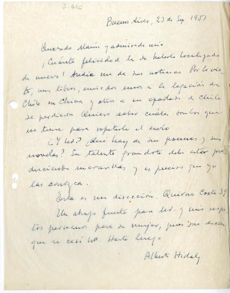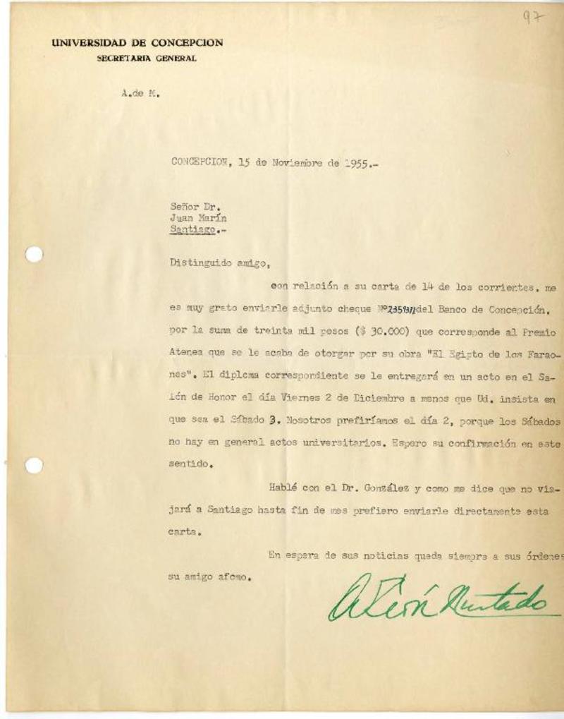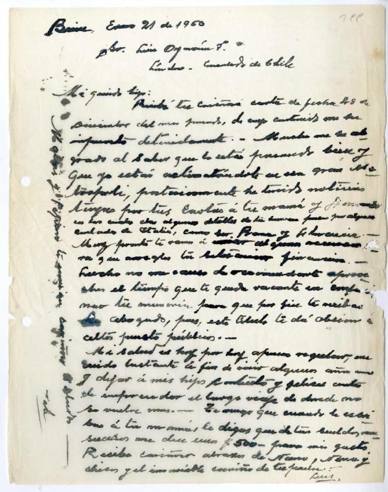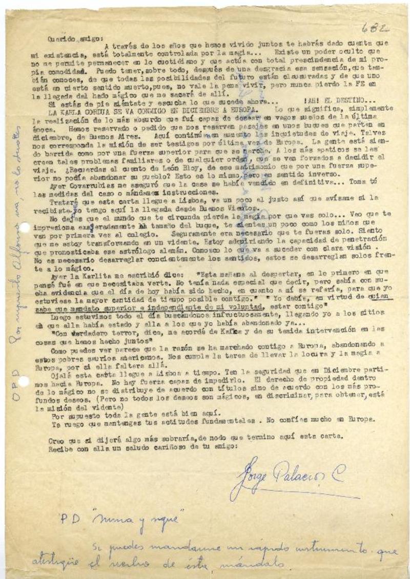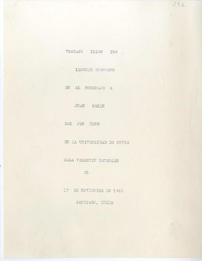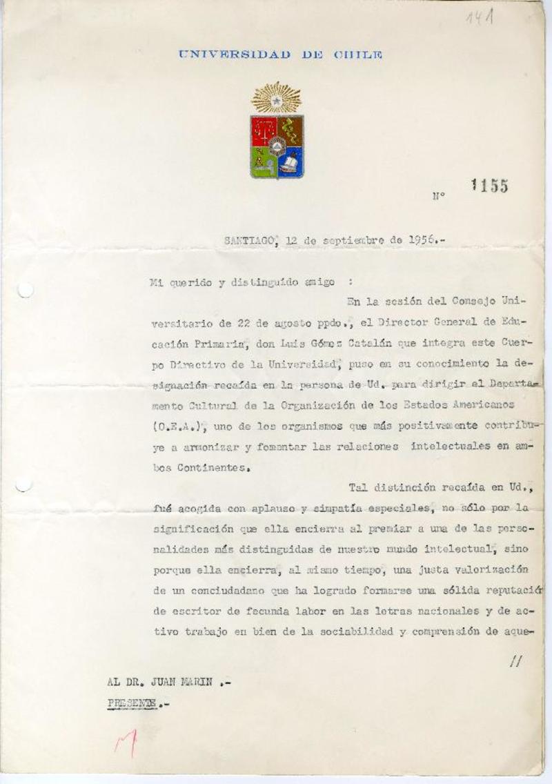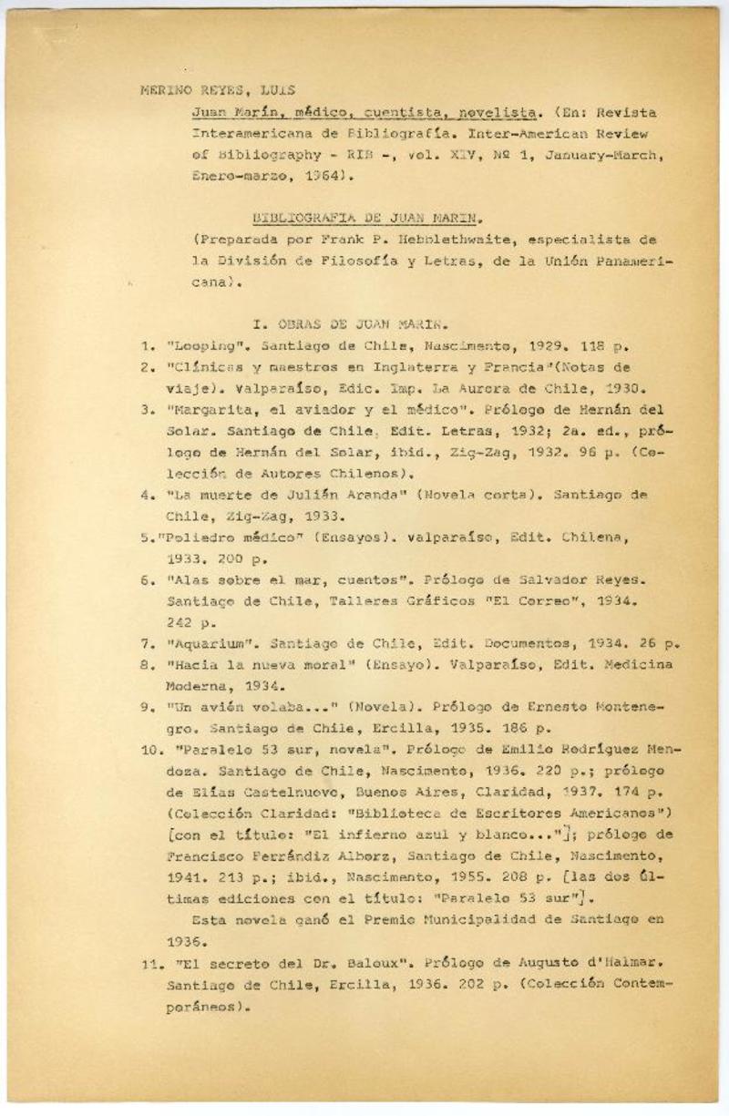 Castro, Óscar - Correspondencia - Autores chilenos - Manuscritos chilenos - Marín, Juan