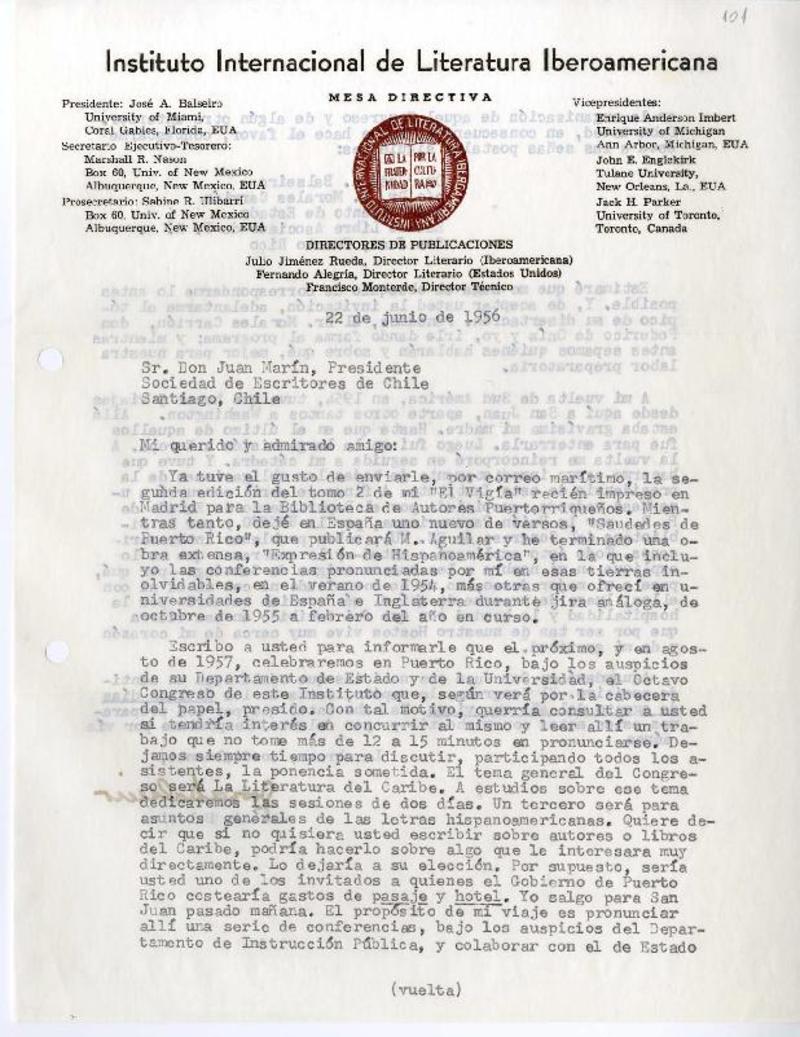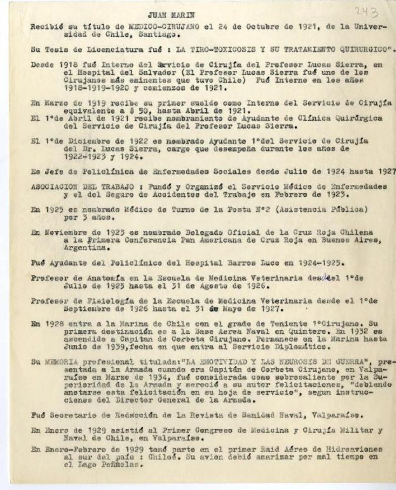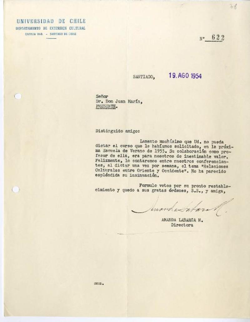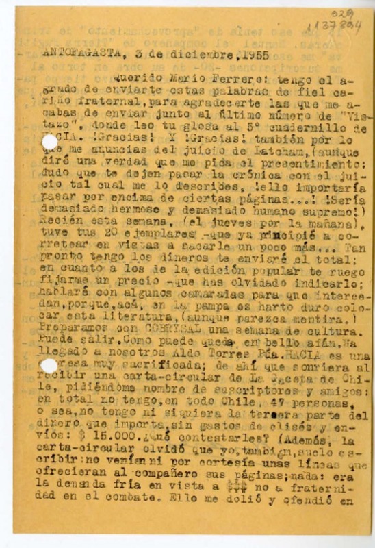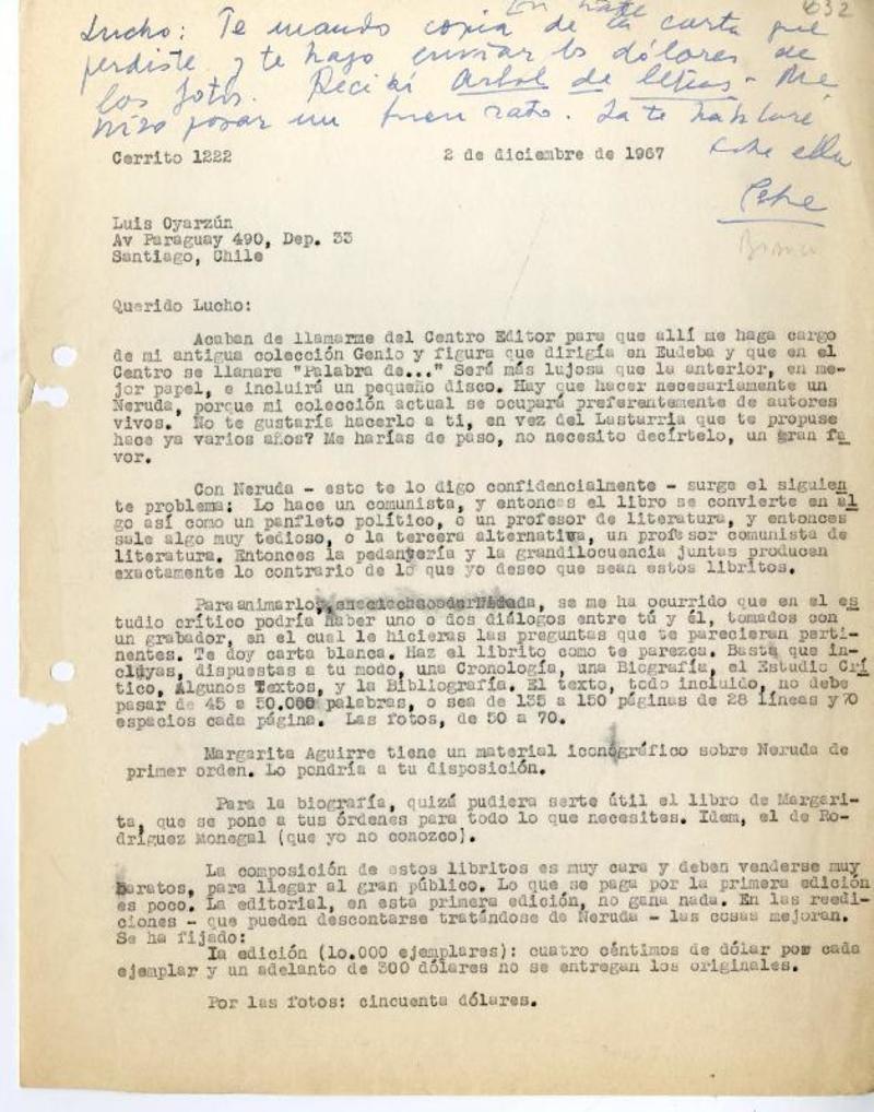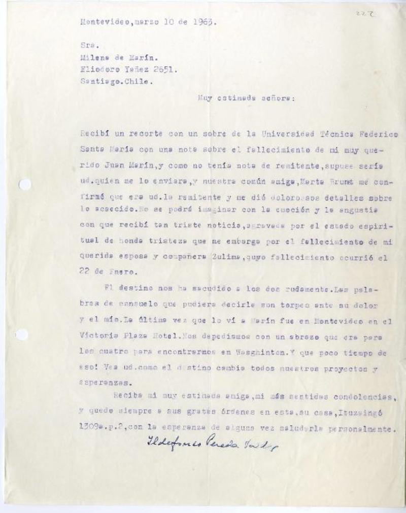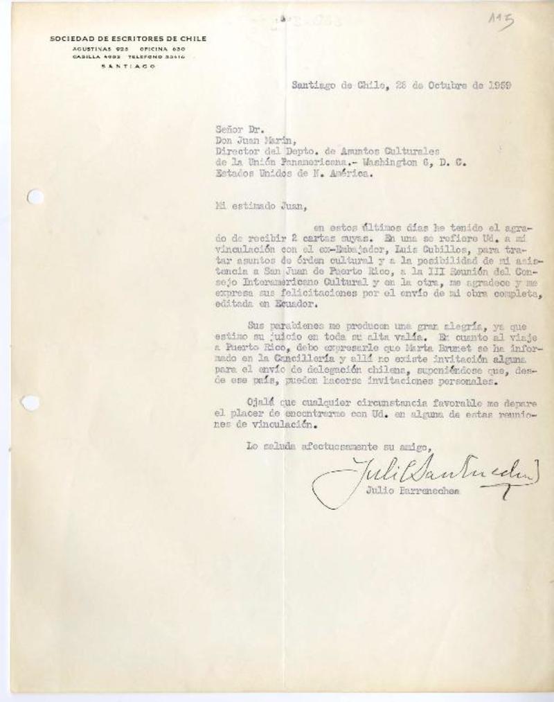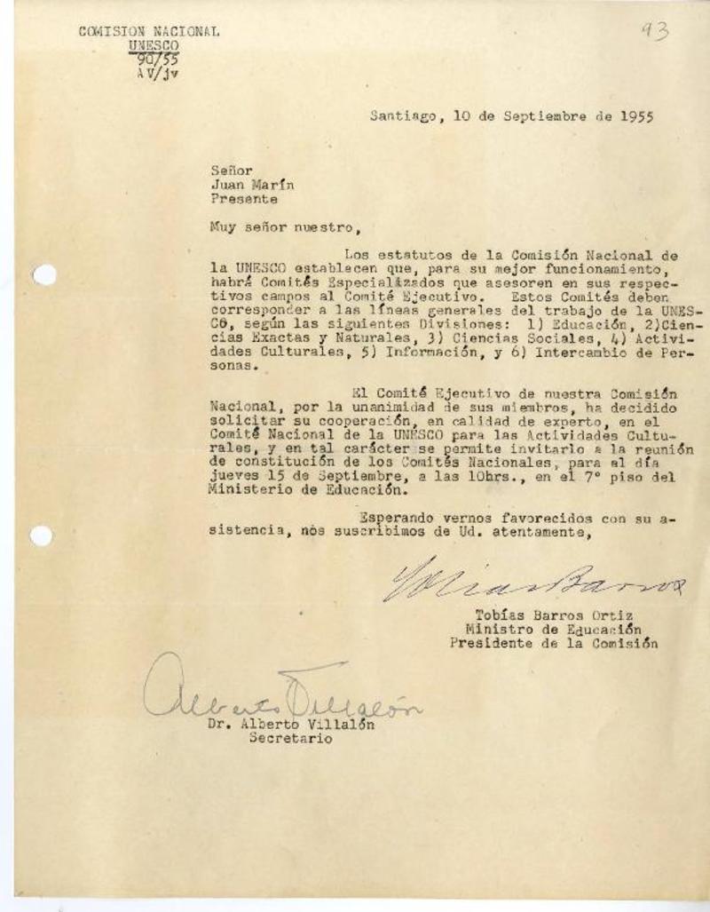Castro, Óscar - Correspondencia - Autores chilenos - Manuscritos chilenos - Marín, Juan