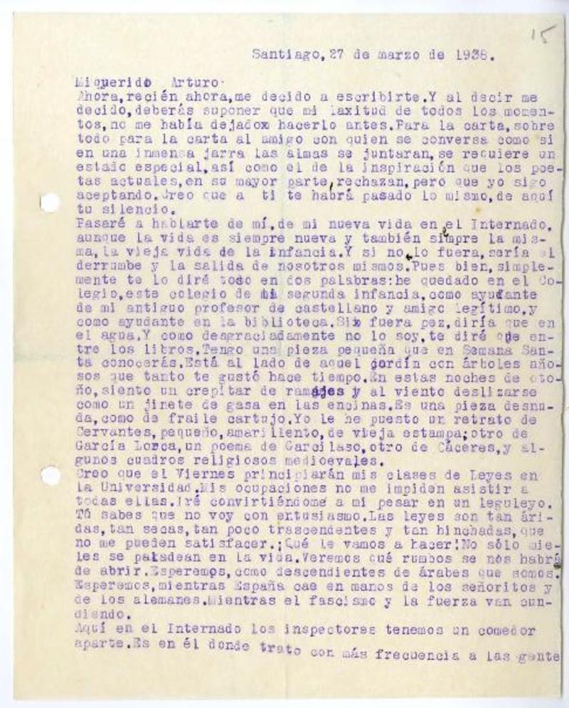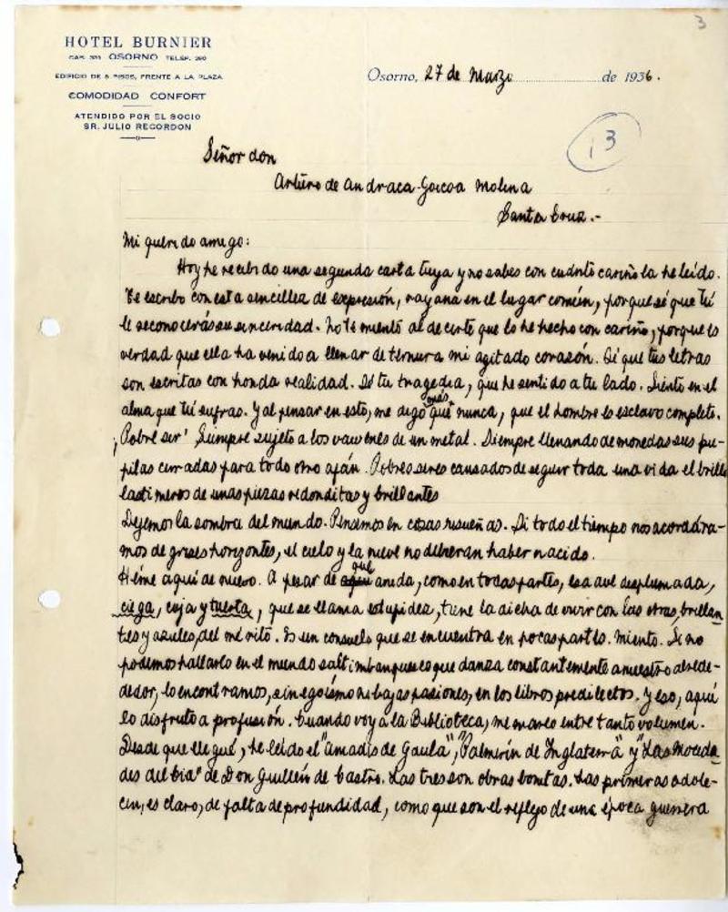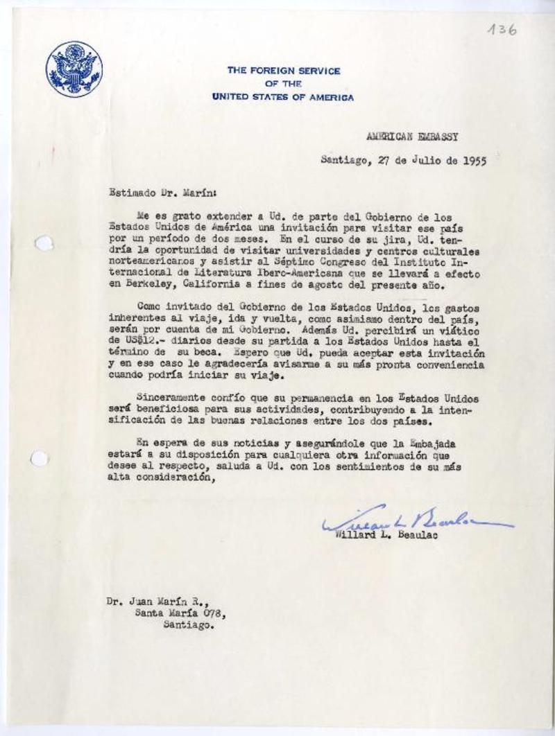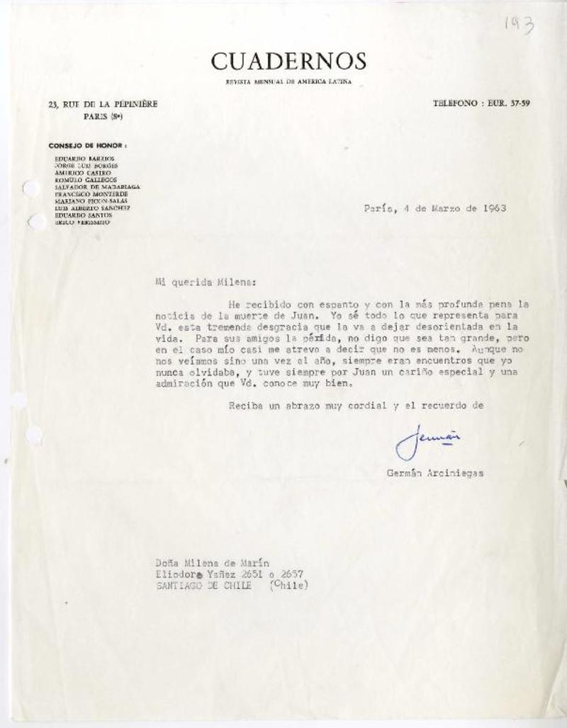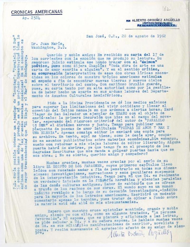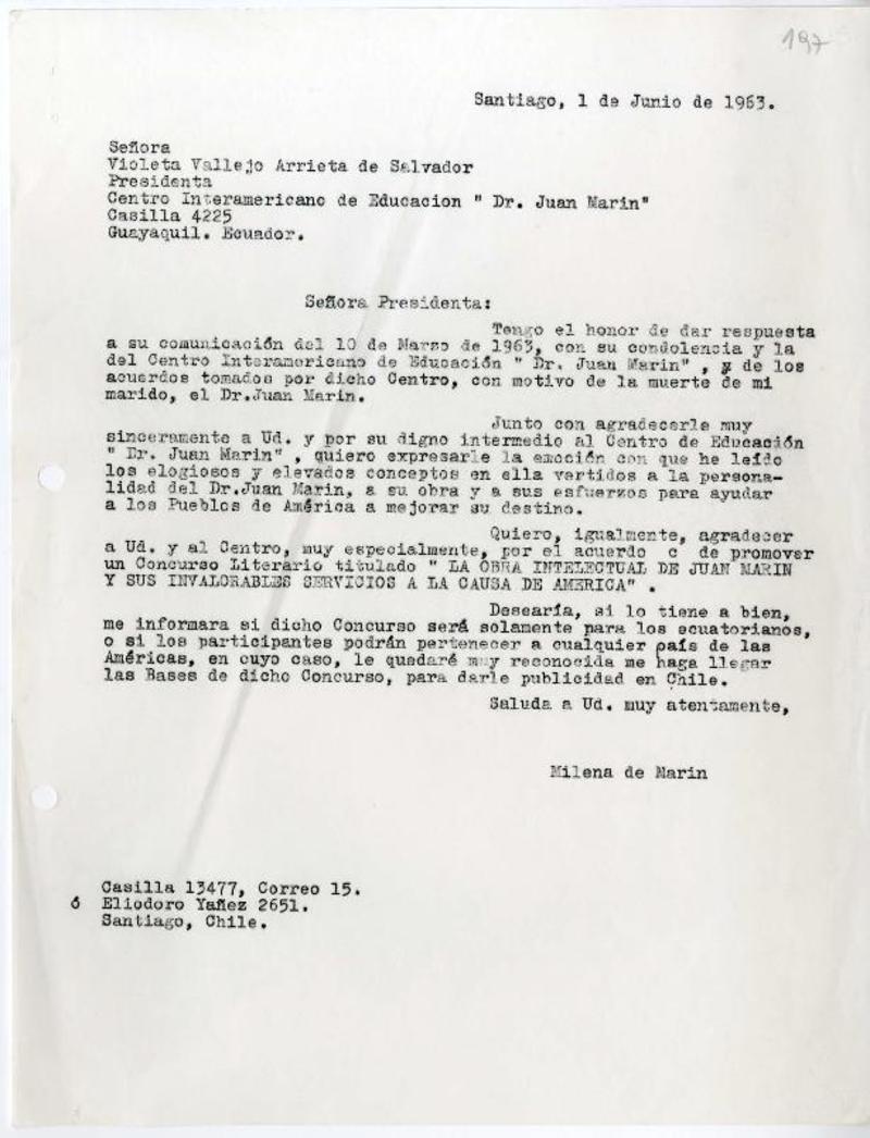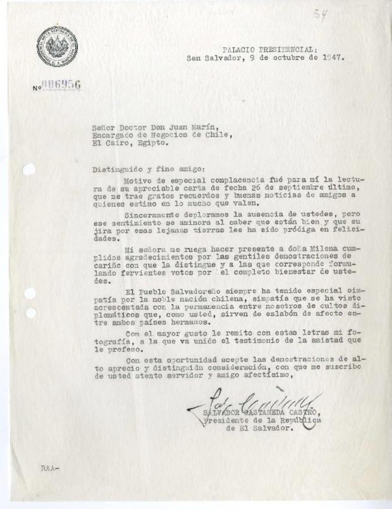 Castro, Óscar - Correspondencia - Autores chilenos - Manuscritos chilenos - Marín, Juan