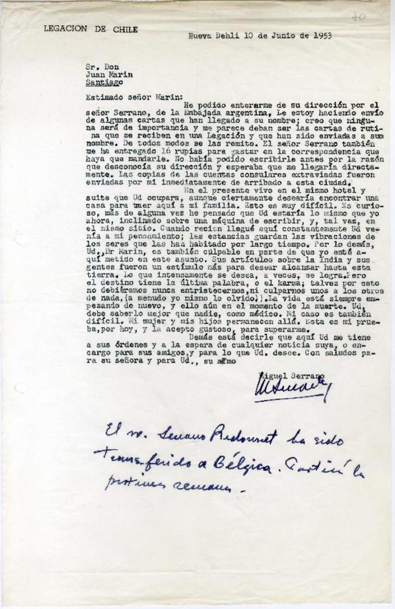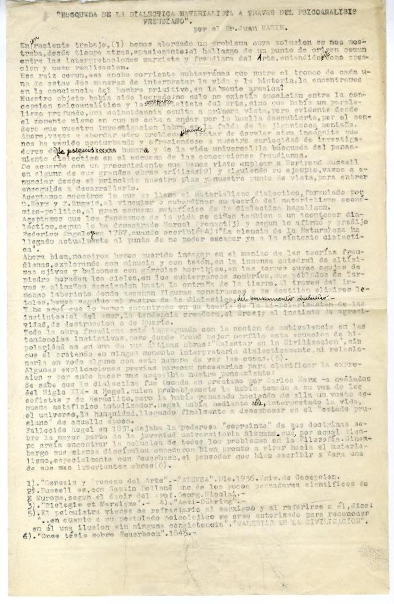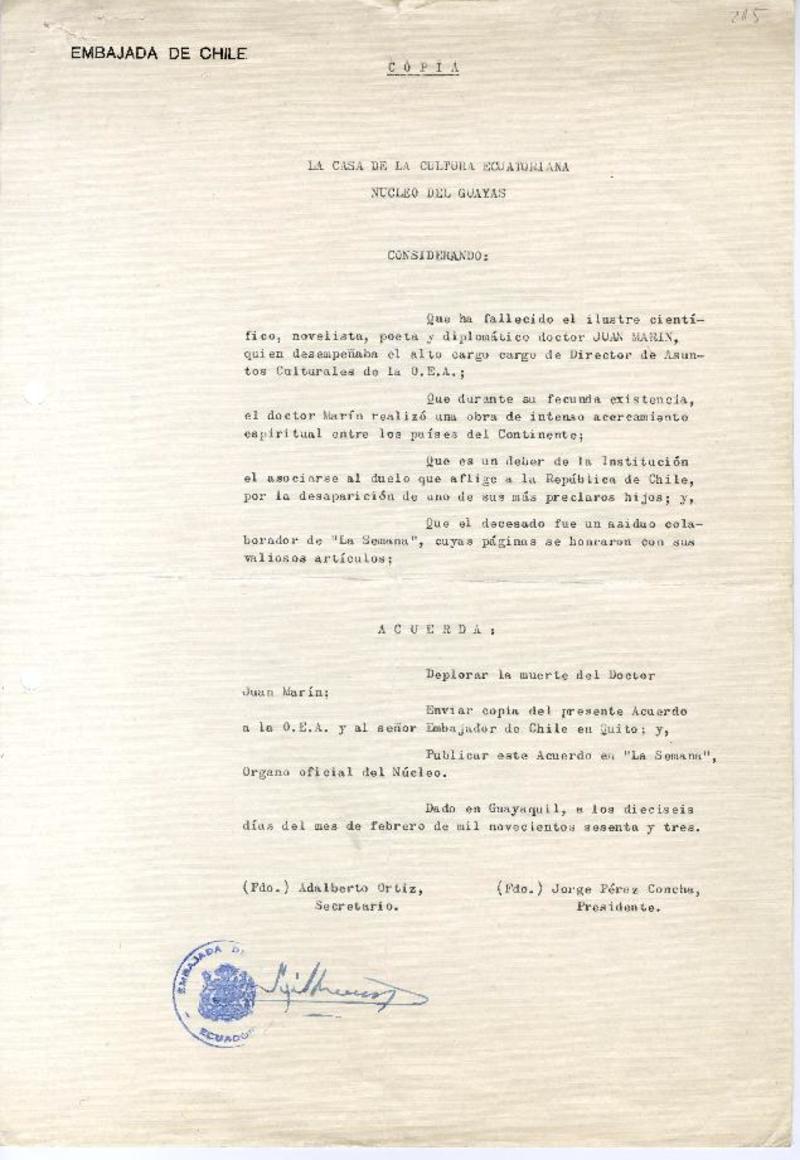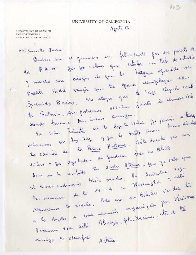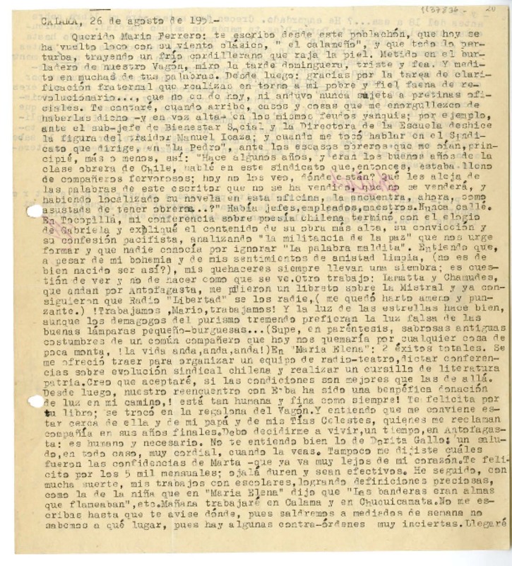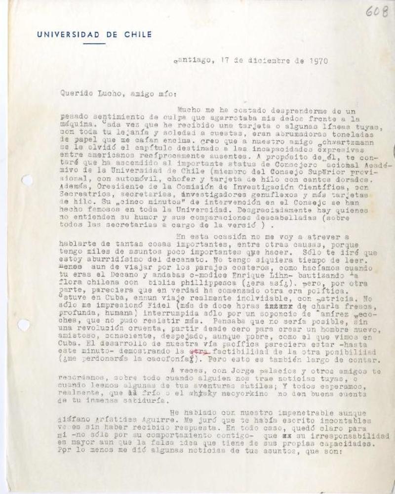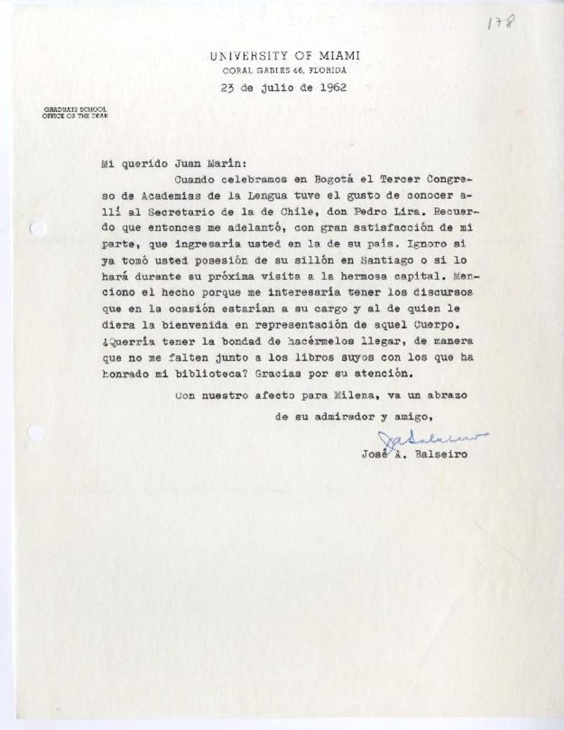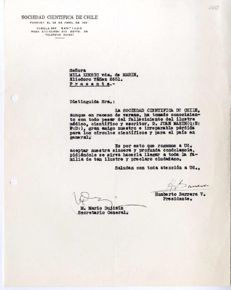 Castro, Óscar - Correspondencia - Autores chilenos - Manuscritos chilenos - Marín, Juan