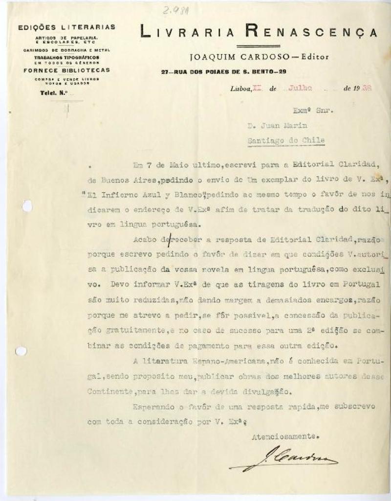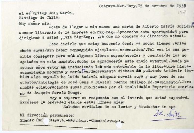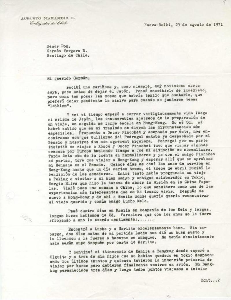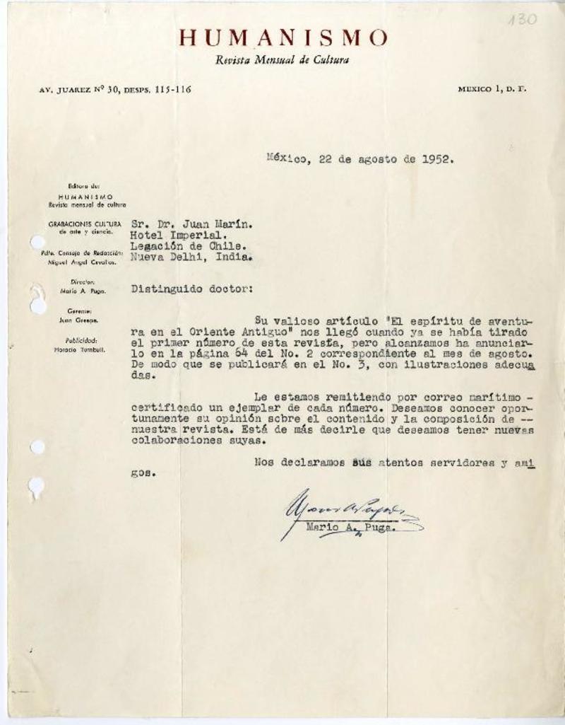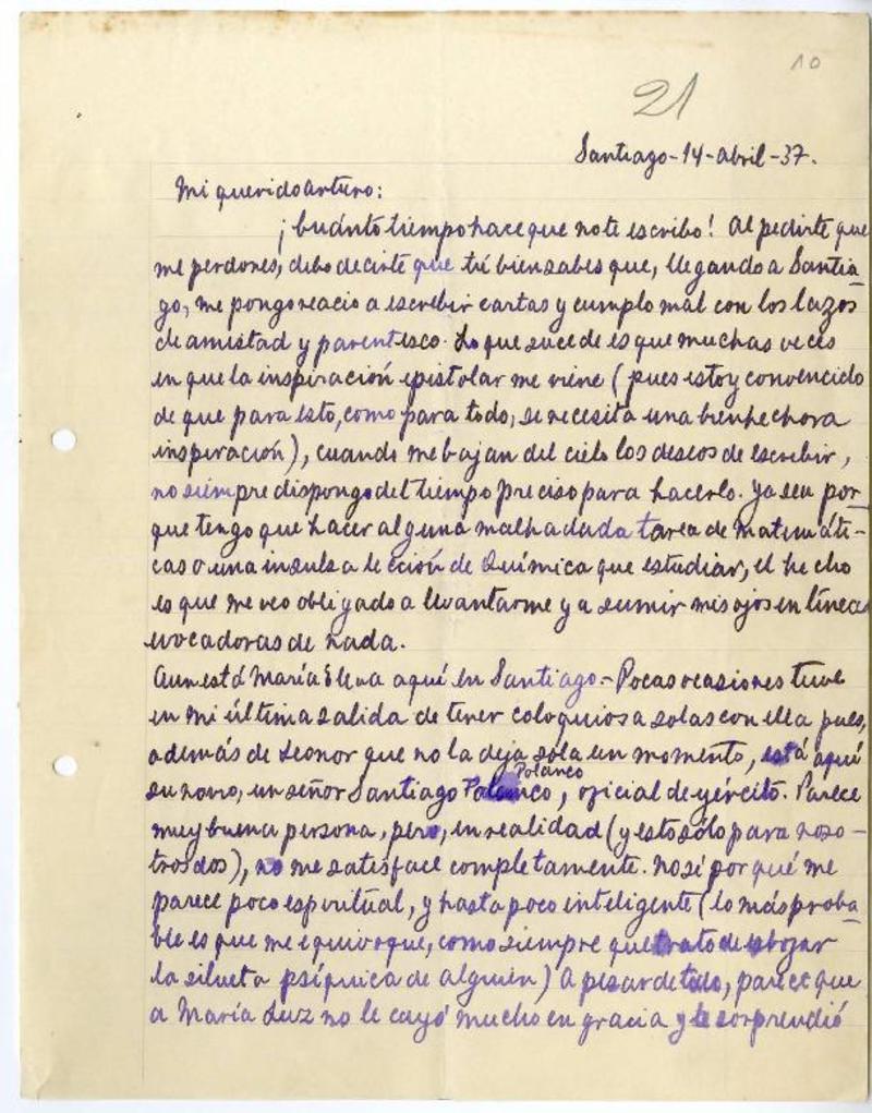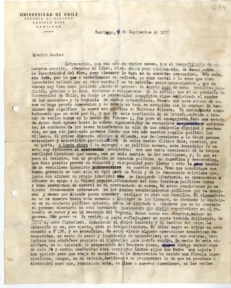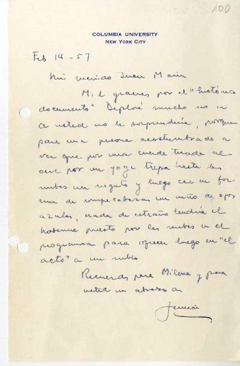 Castro, Óscar - Correspondencia - Autores chilenos - Manuscritos chilenos - Marín, Juan