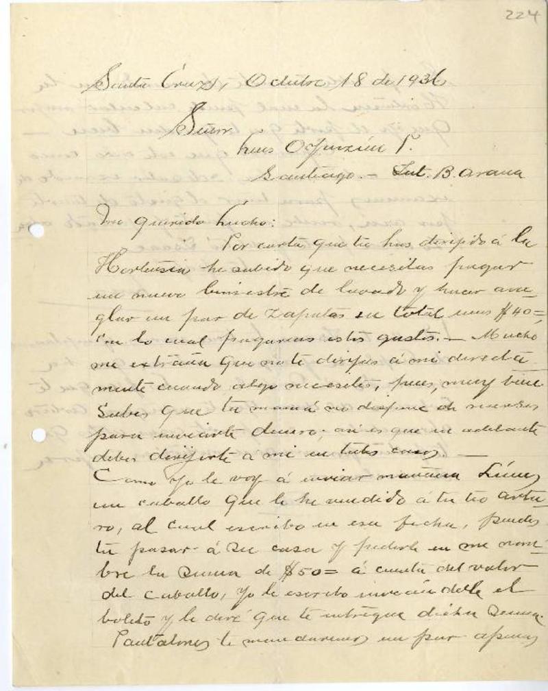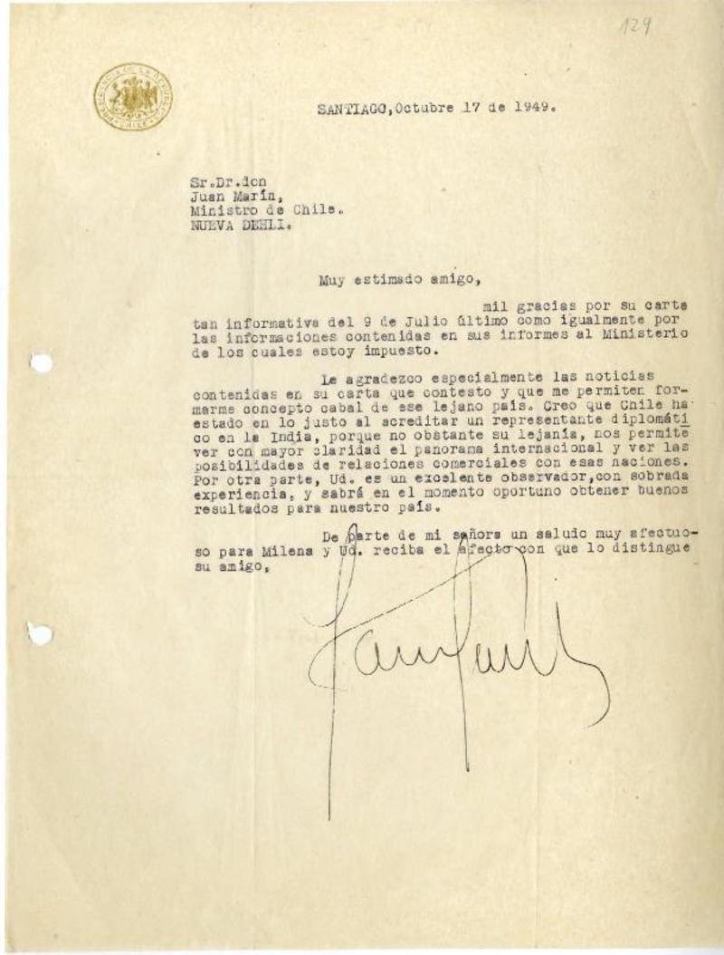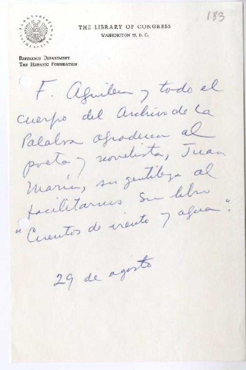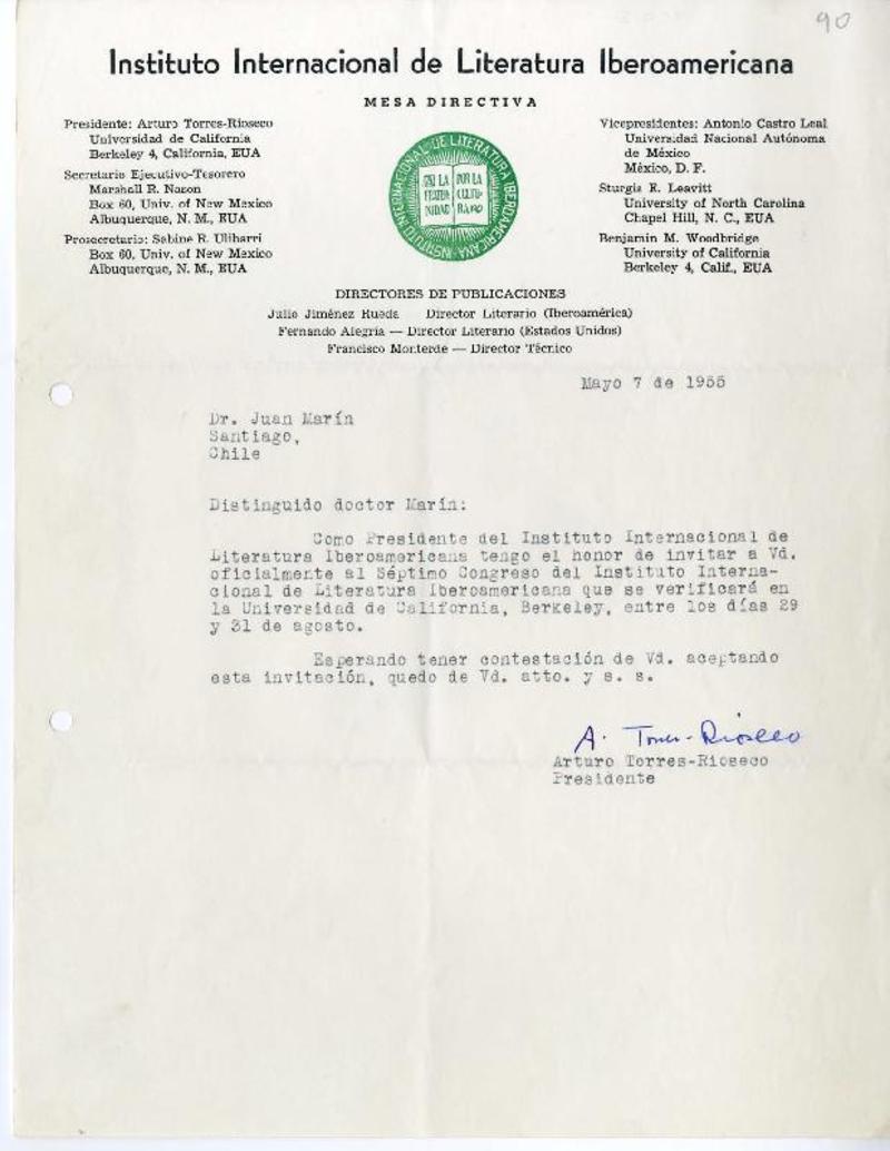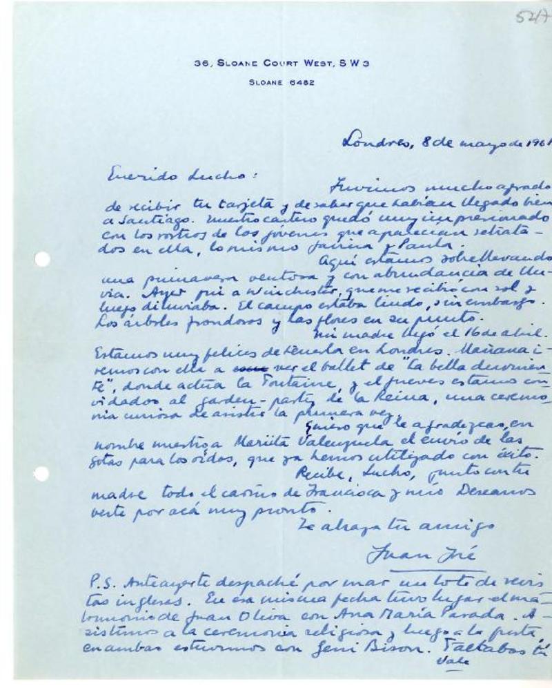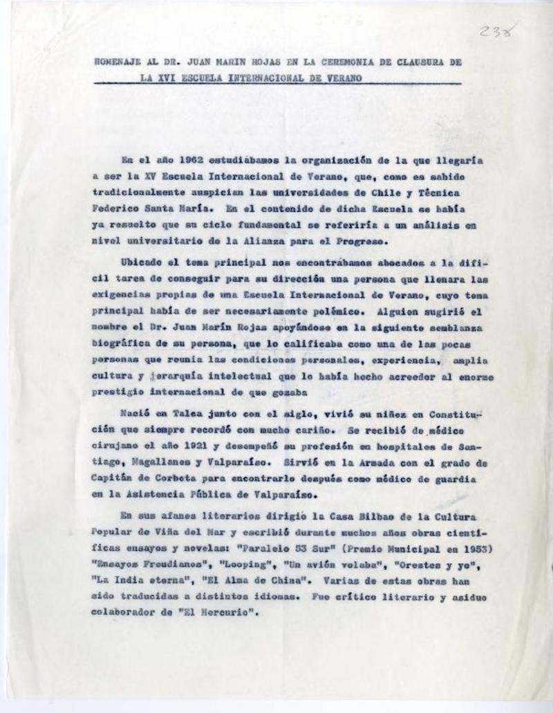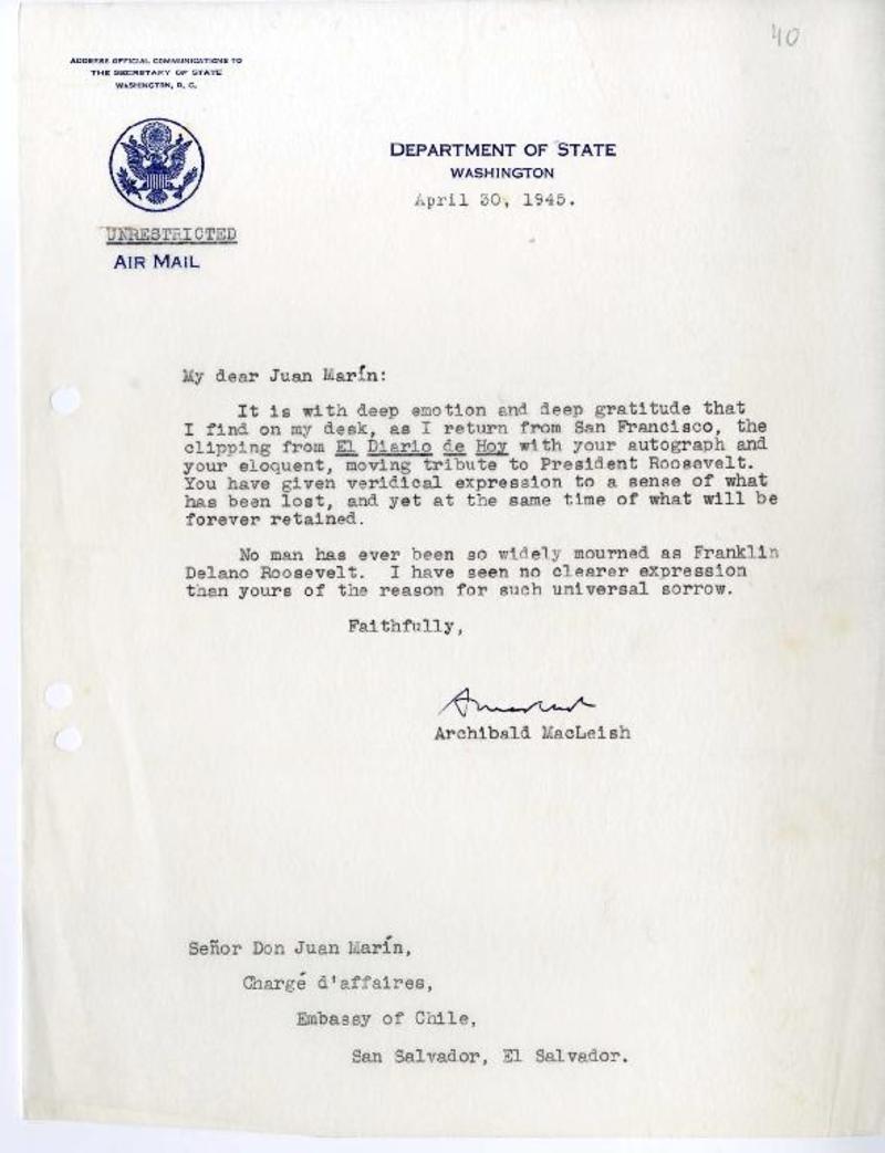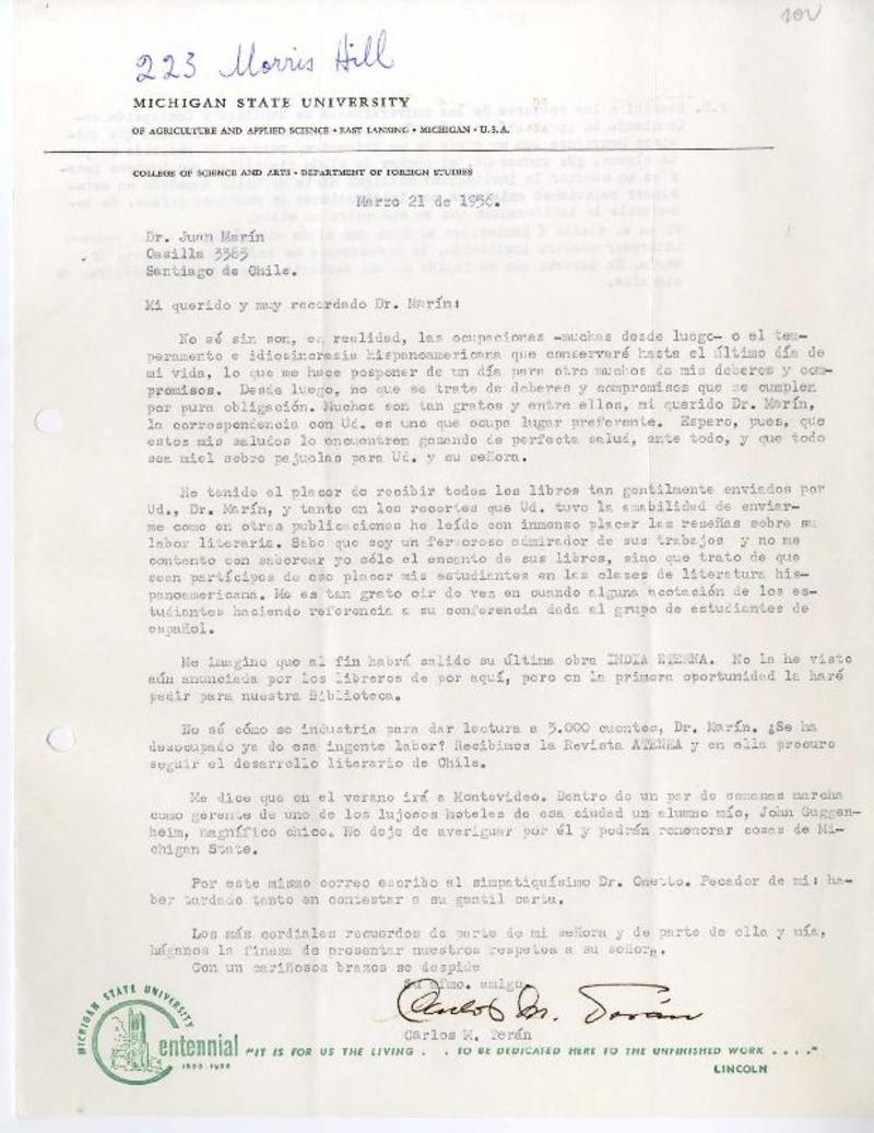 Castro, Óscar - Correspondencia - Autores chilenos - Manuscritos chilenos - Marín, Juan