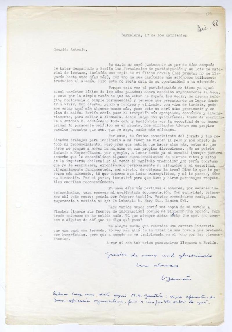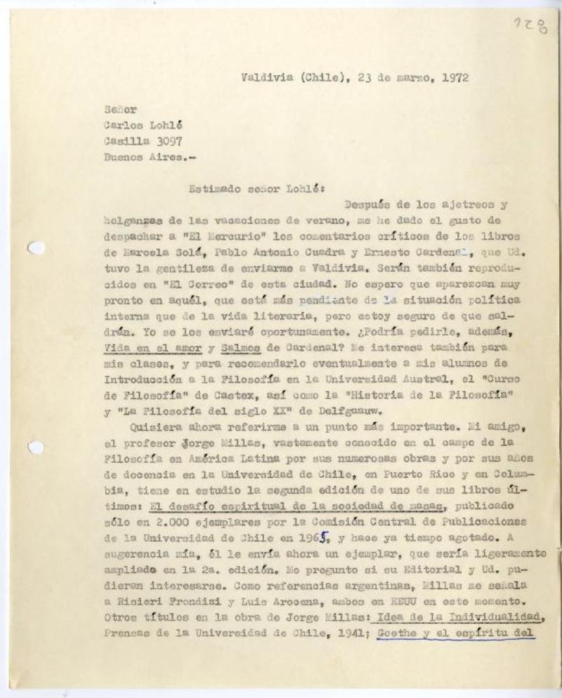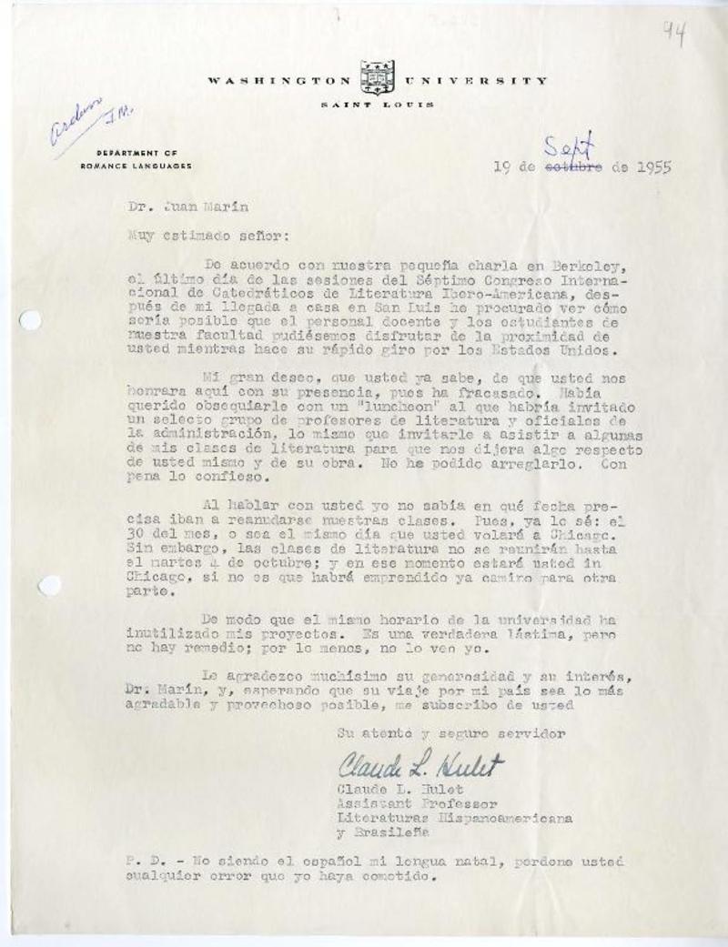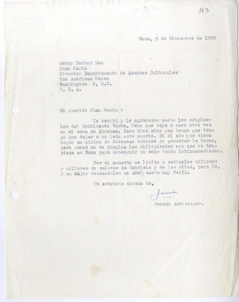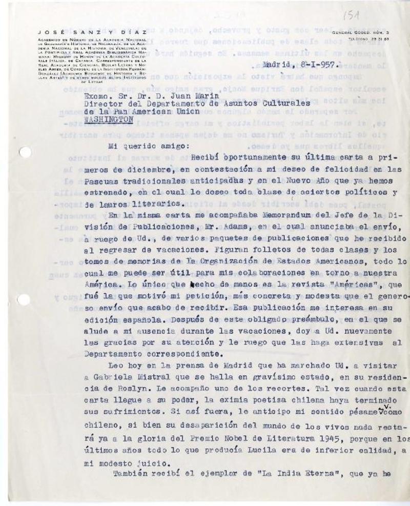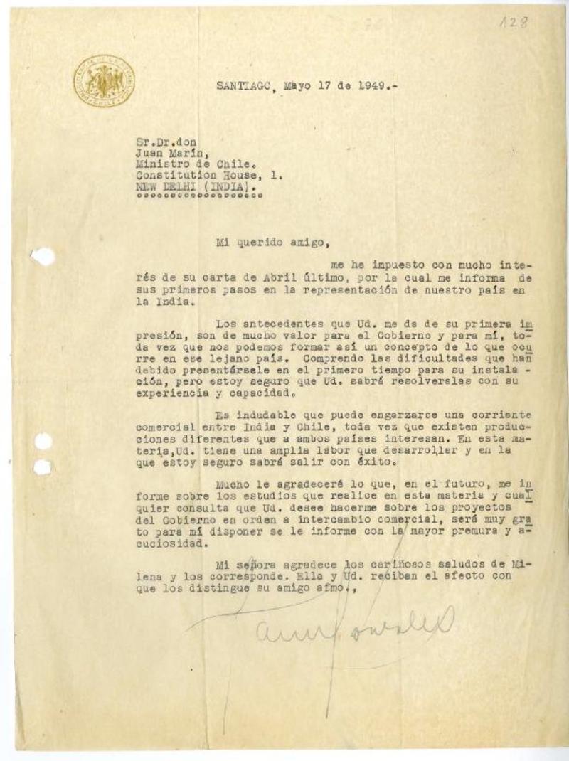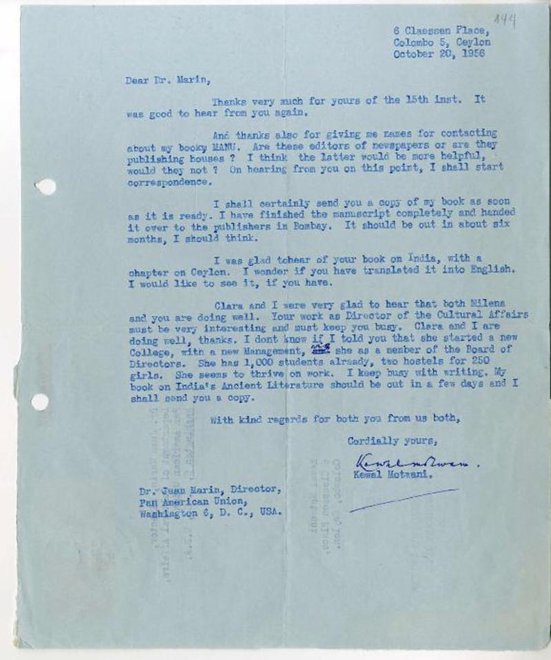 Castro, Óscar - Correspondencia - Autores chilenos - Manuscritos chilenos - Marín, Juan