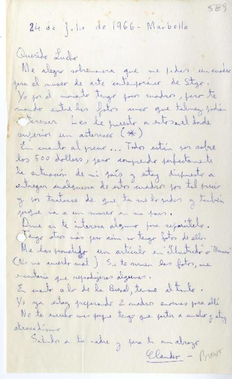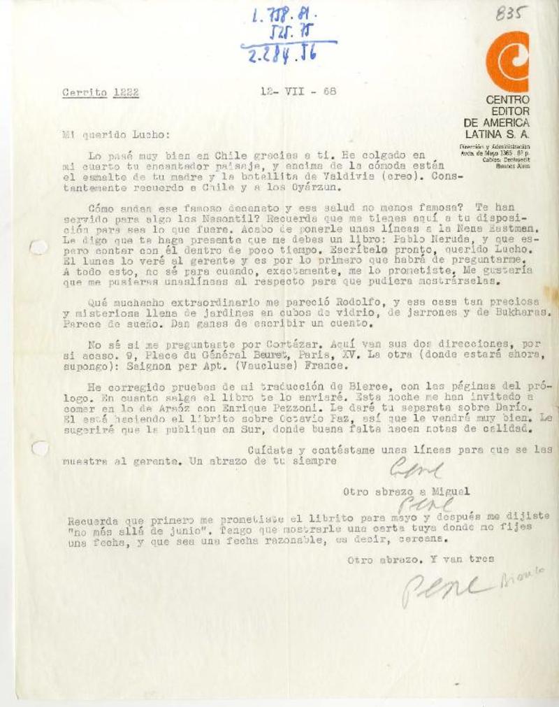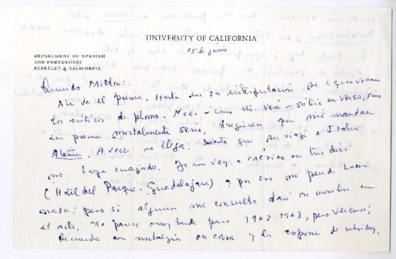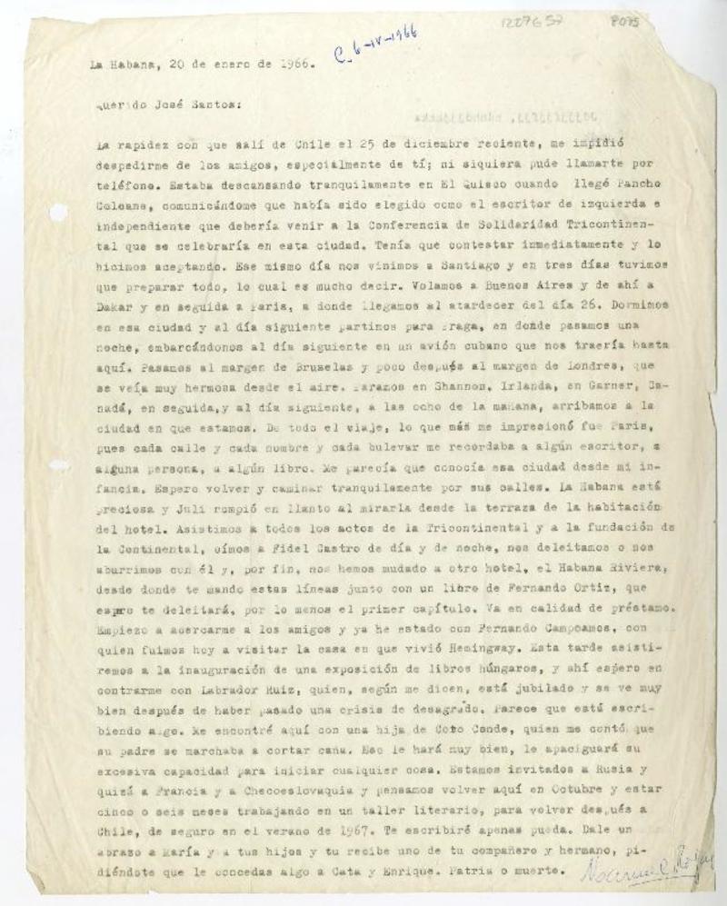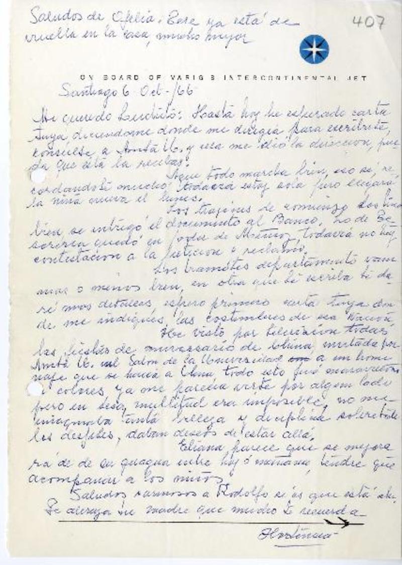 Antofagasta, Chile [a] Salvador Reyes, Santiago Carta, 1966 julio 26, [manuscrito] Sociedad Chilena de Publicaciones y Comercio S.A.