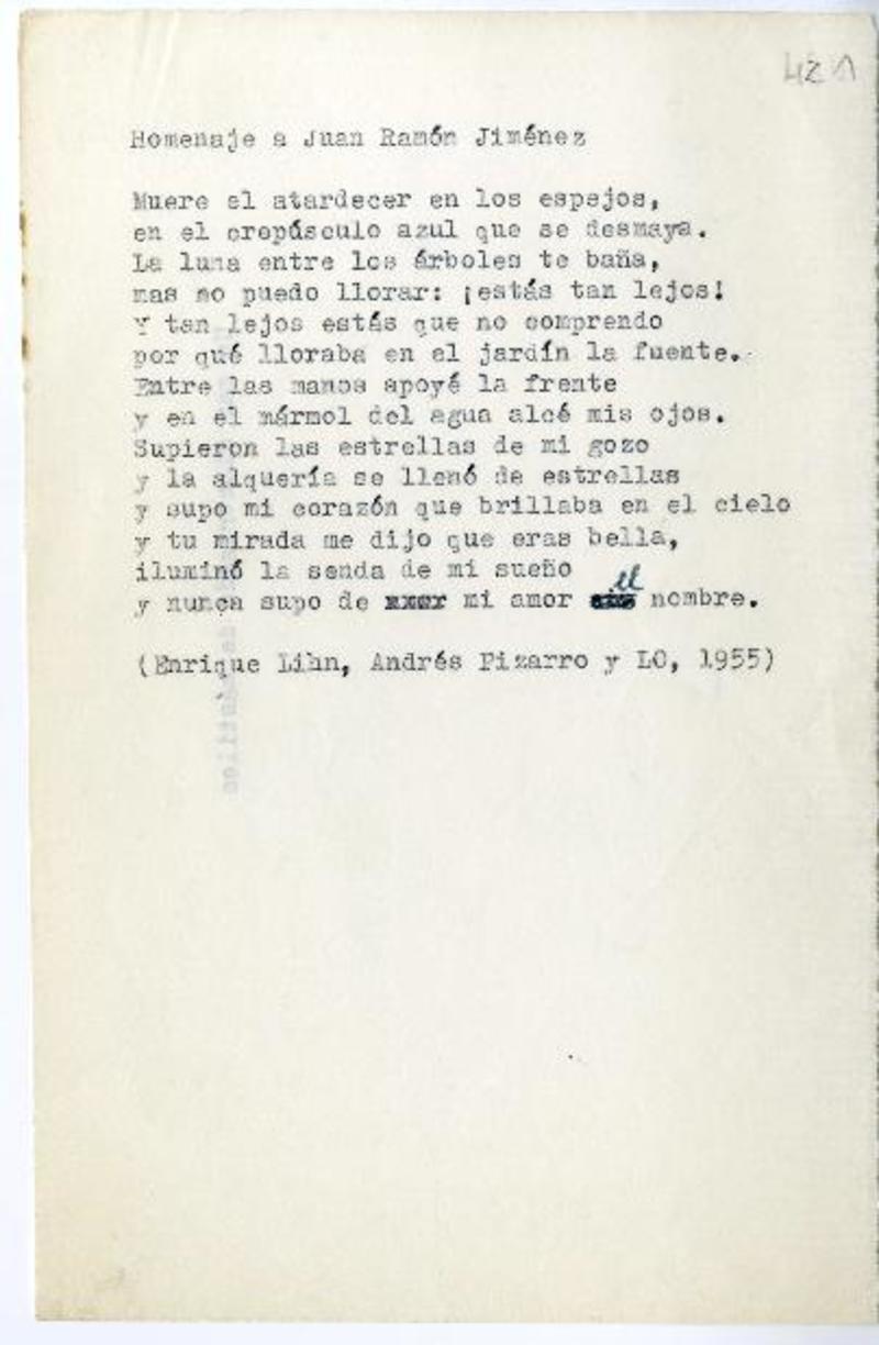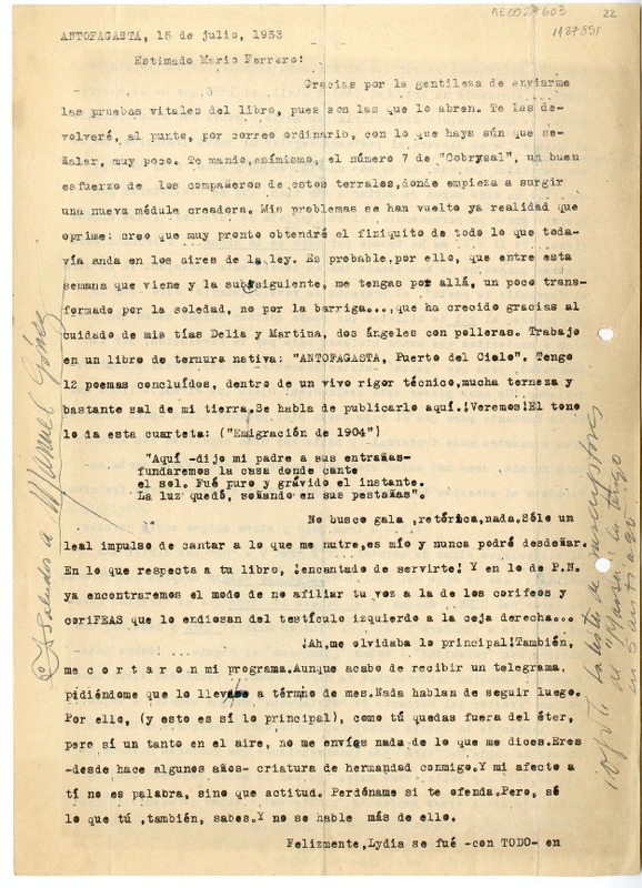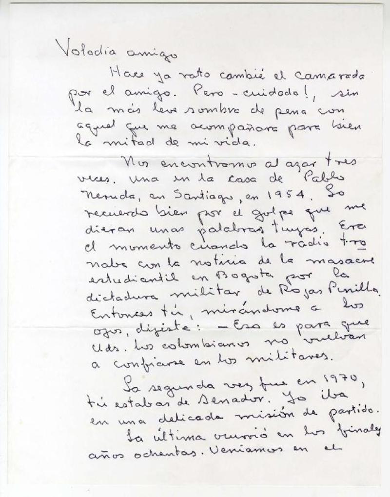 Al poeta libretero [manuscrito] Volodia Teitelboim.