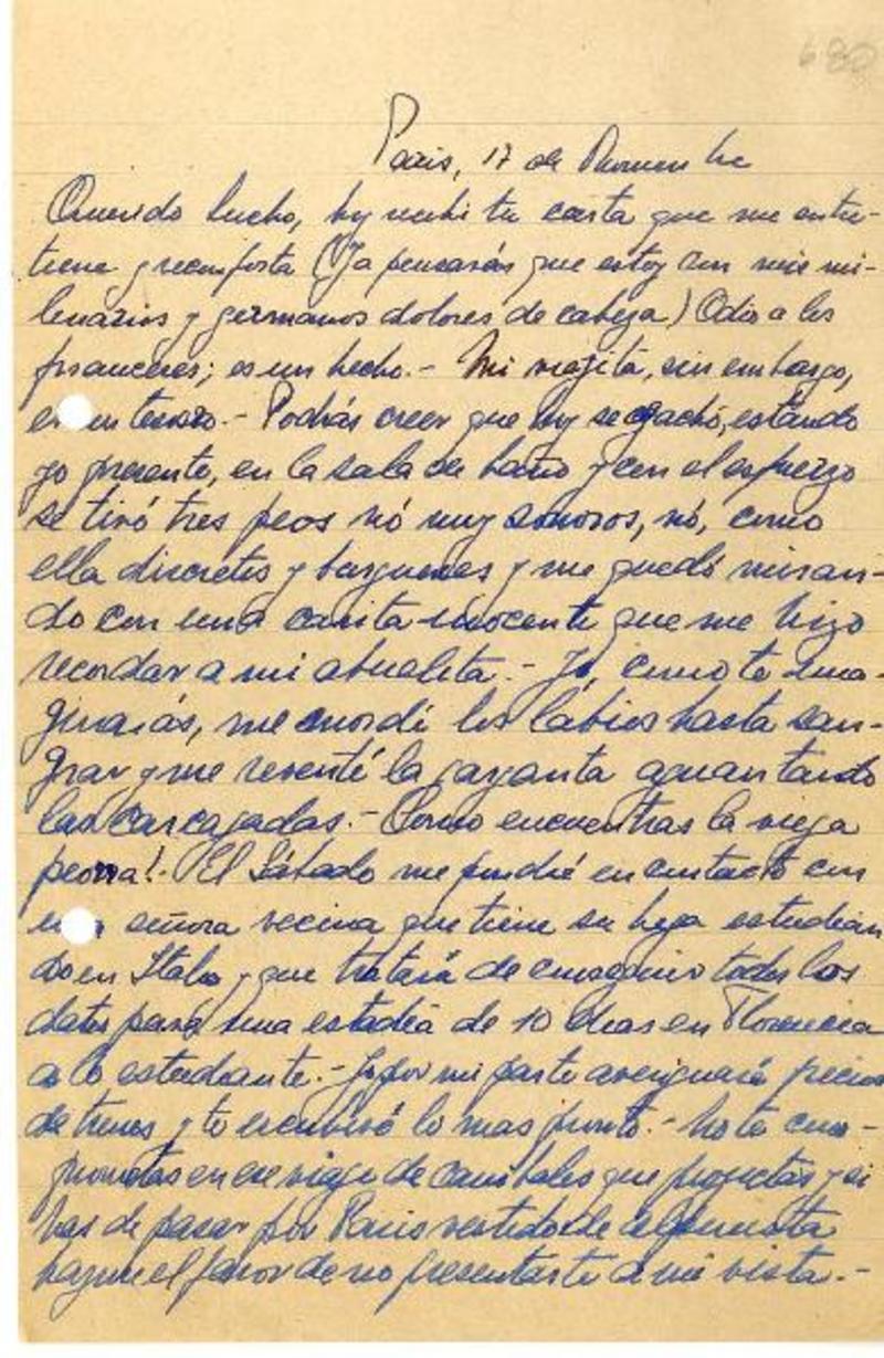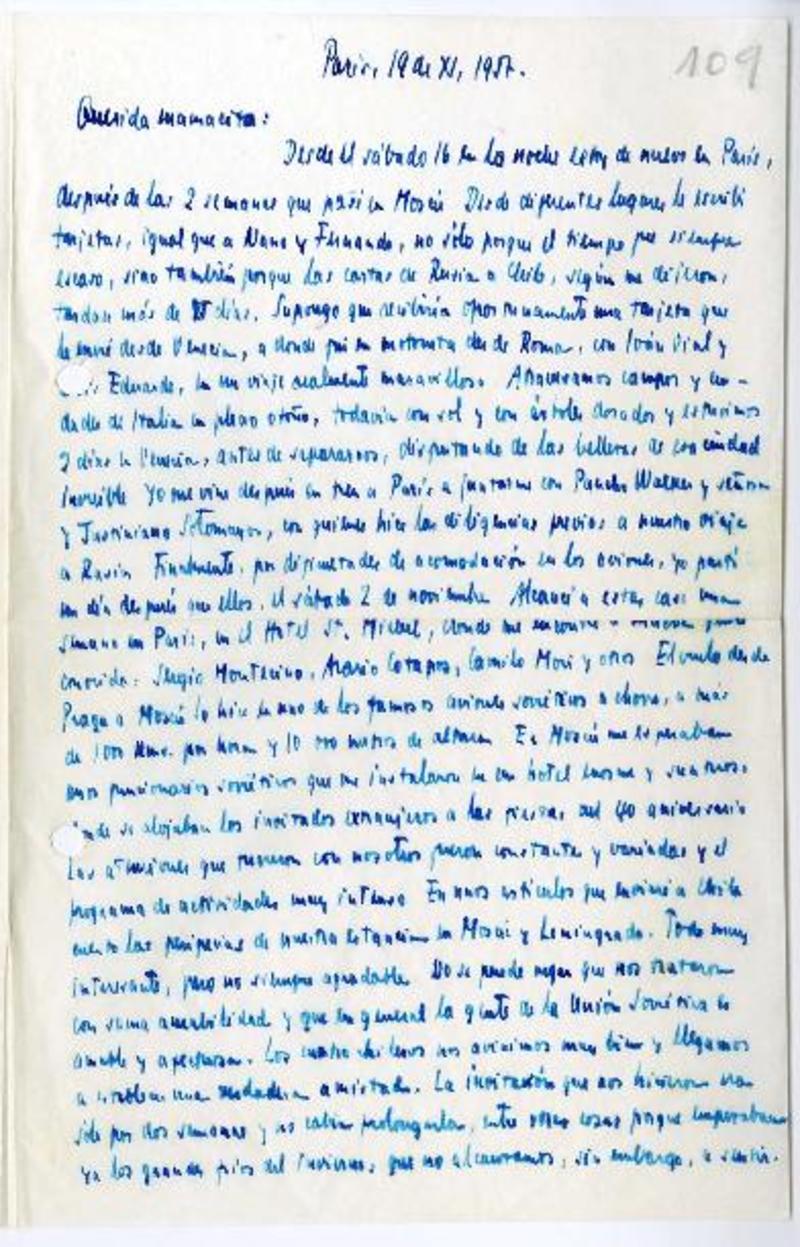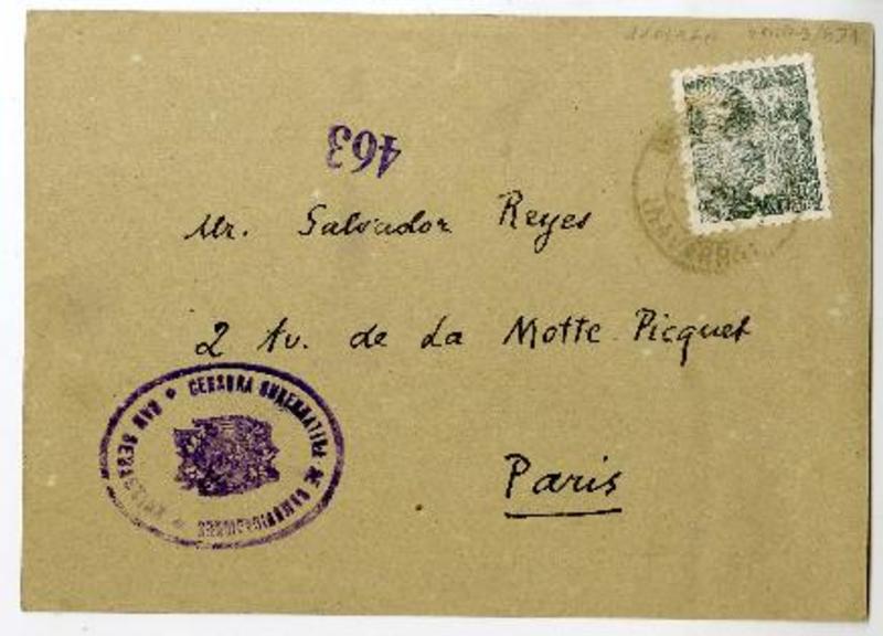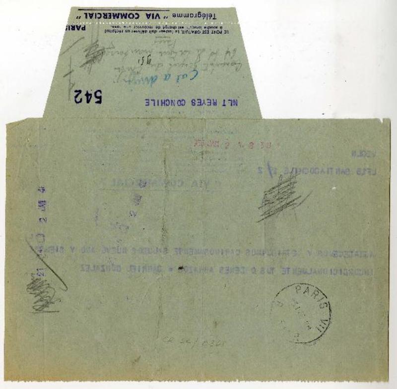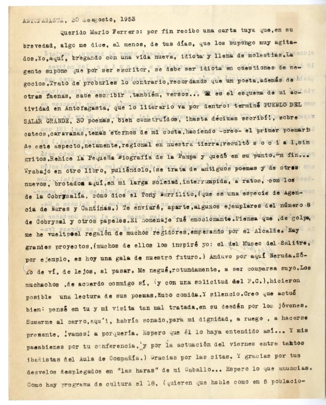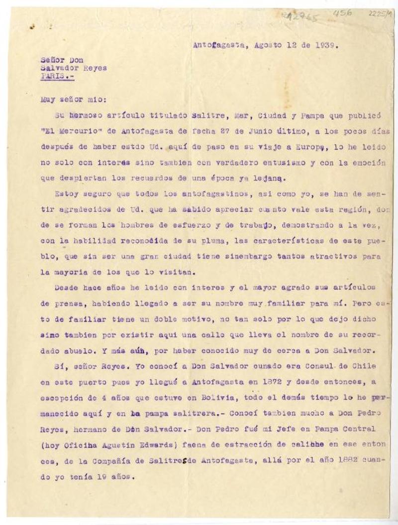 Antofagasta, Chile [a] Salvador Reyes, Paris, Francia Carta, 1939 agosto 12, [manuscrito] Isaac Arce Ramírez.