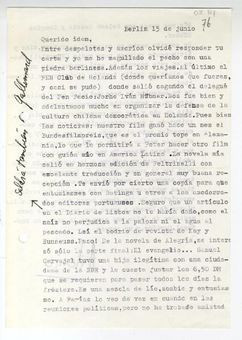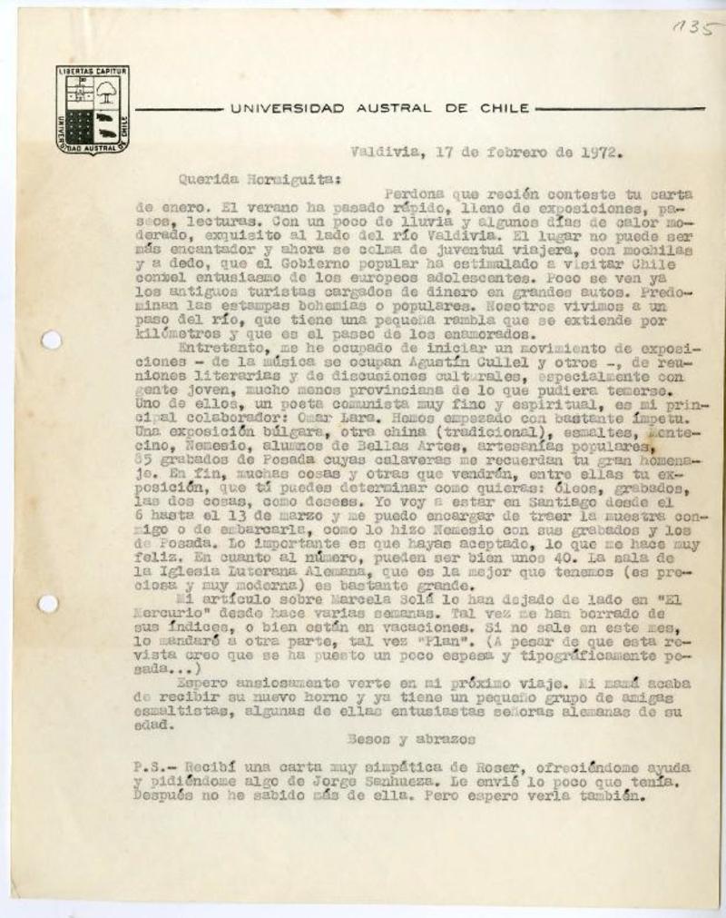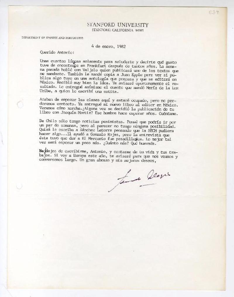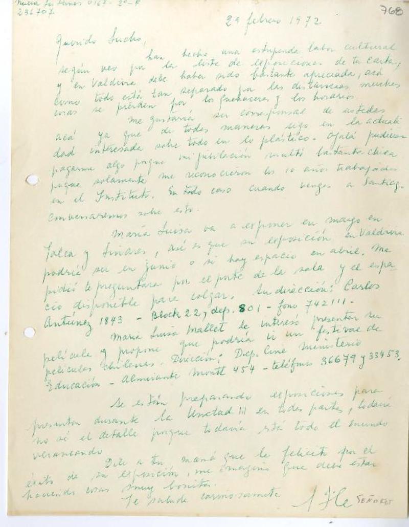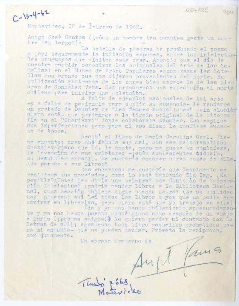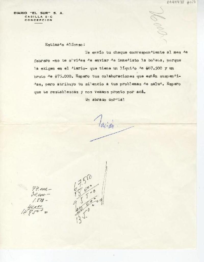Antofagasta, Chile [a] Hugo Montes Carta, 1973 febrero 9, [manuscrito] Andrés Sabella.