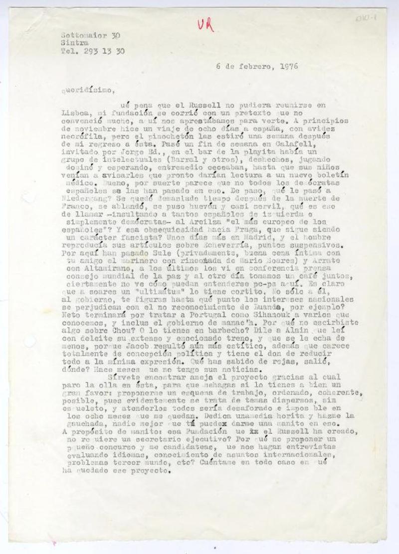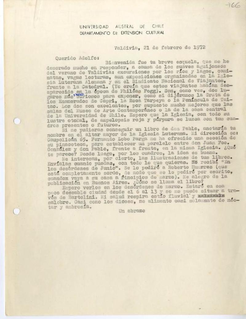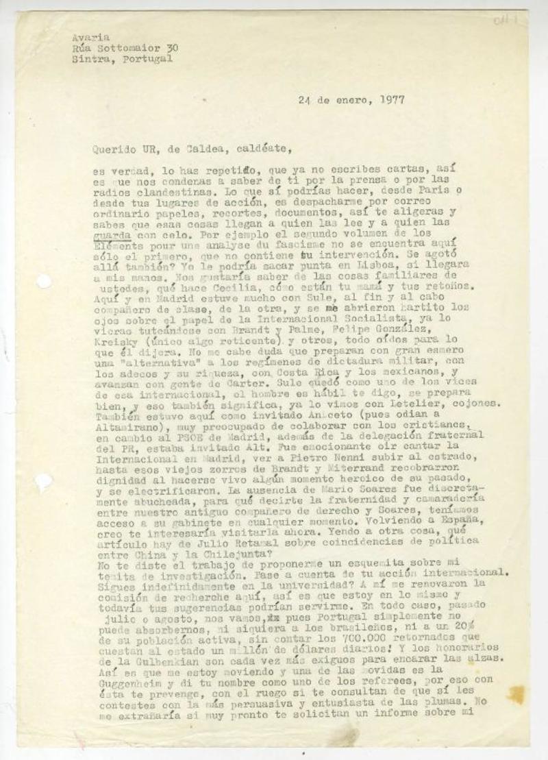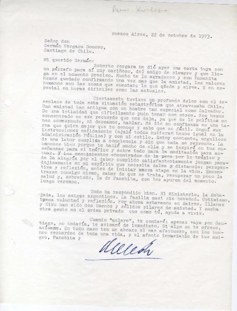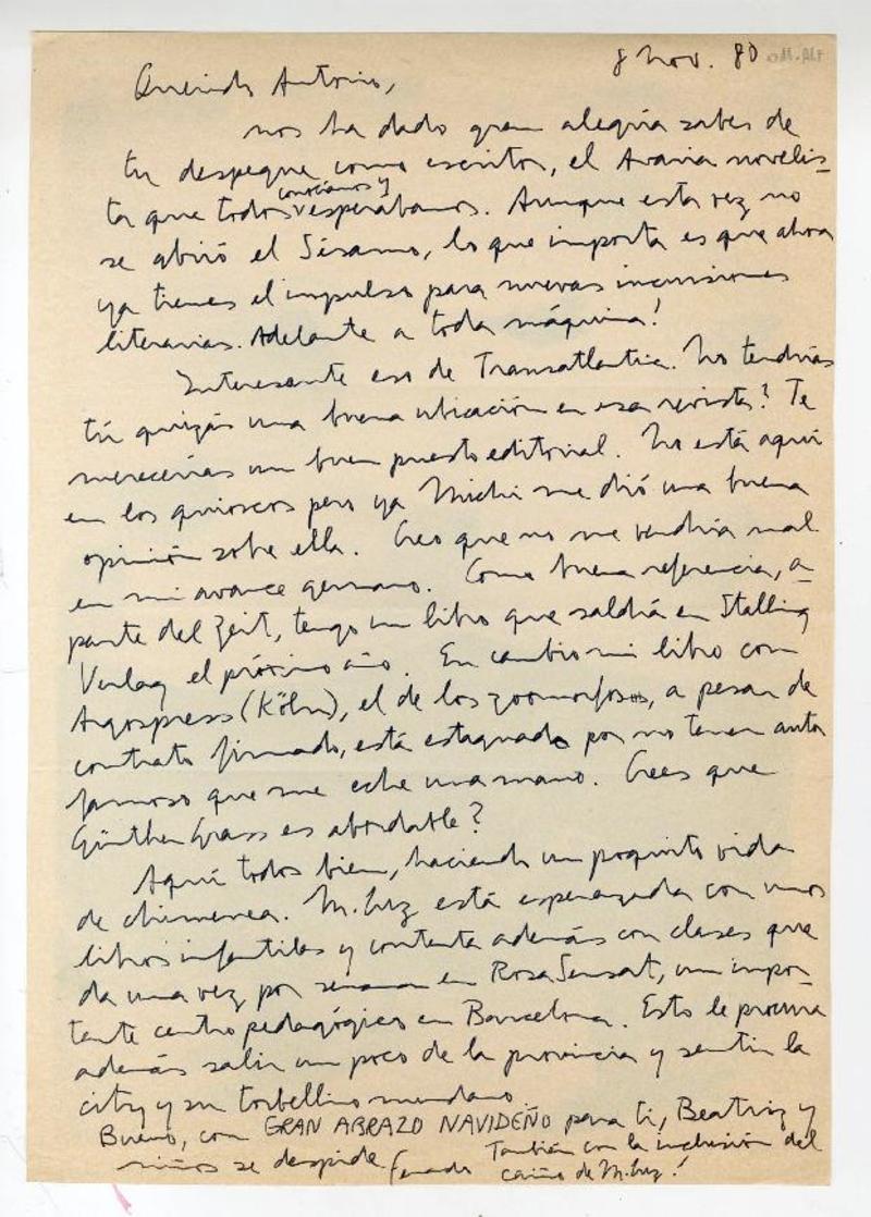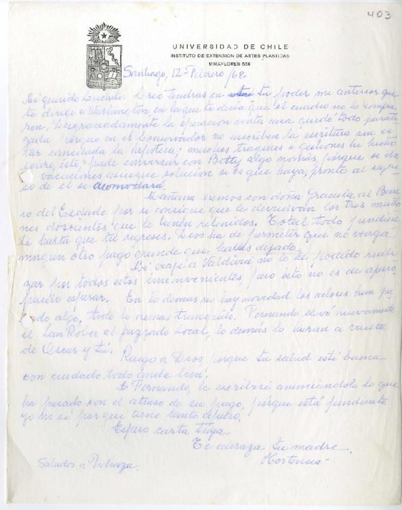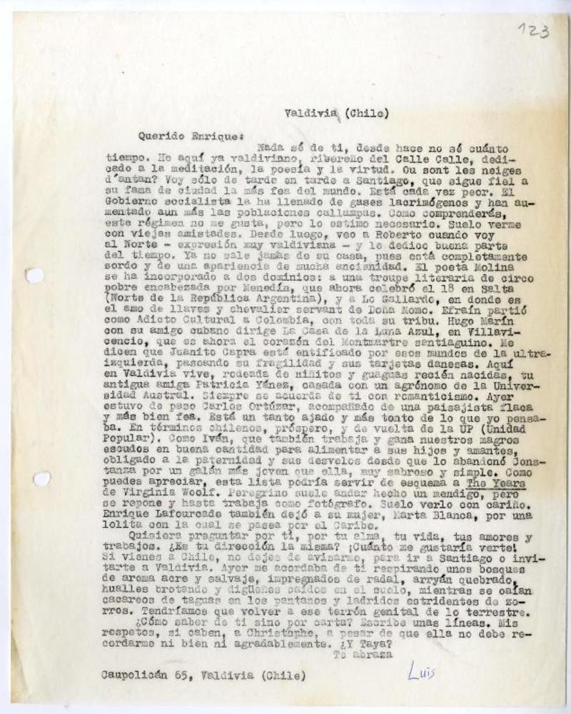 Antofagasta, Chile [a] Hugo Montes Carta, 1973 febrero 9, [manuscrito] Andrés Sabella.