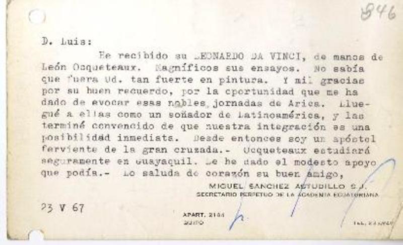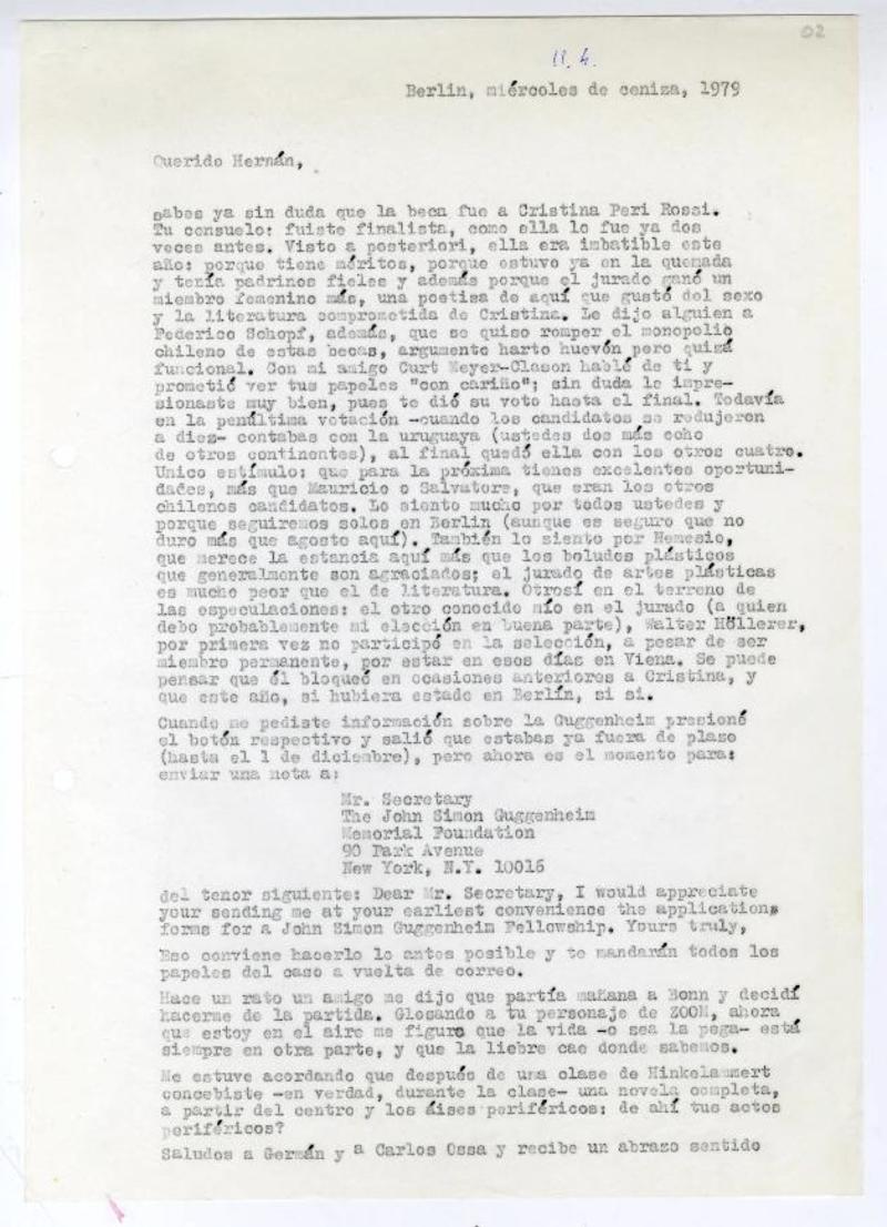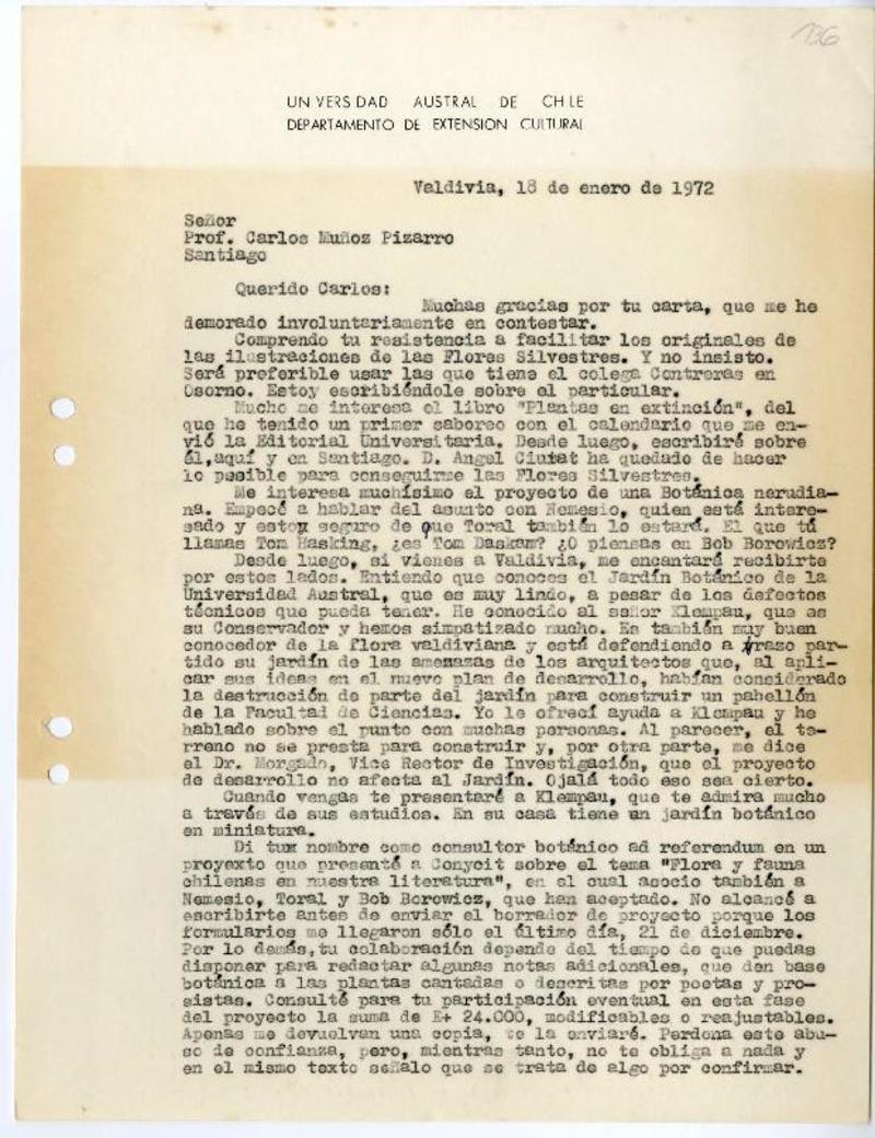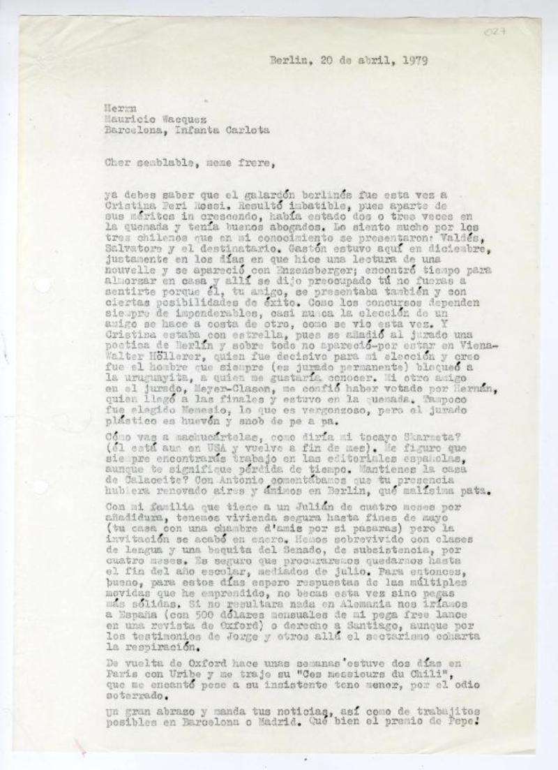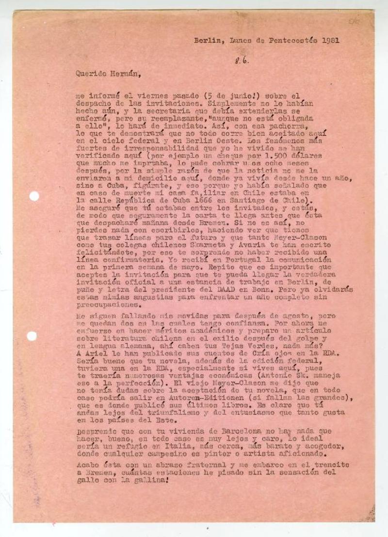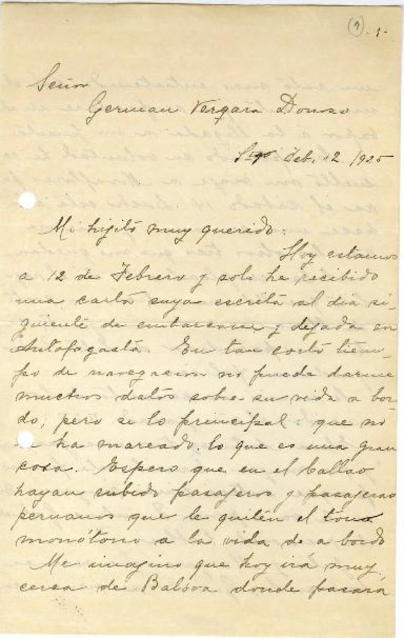 Antofagasta, Chile [a] Hugo Montes Carta, 1973 febrero 9, [manuscrito] Andrés Sabella.