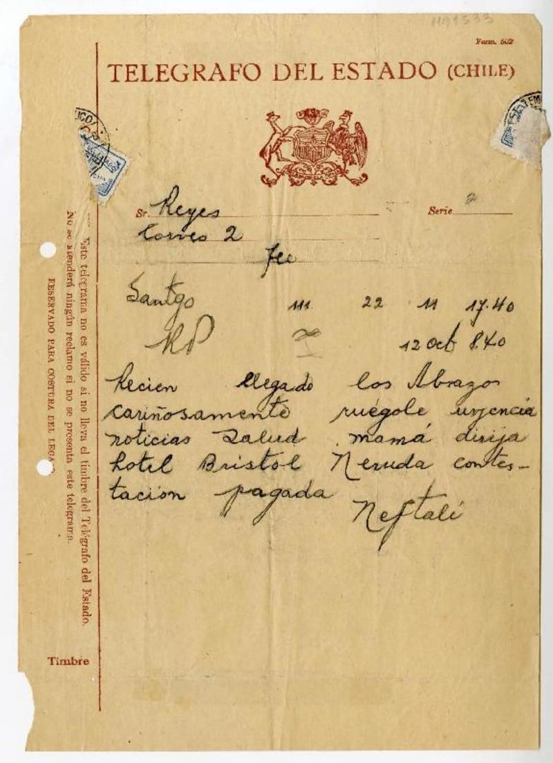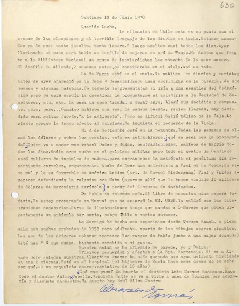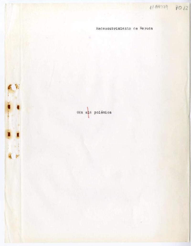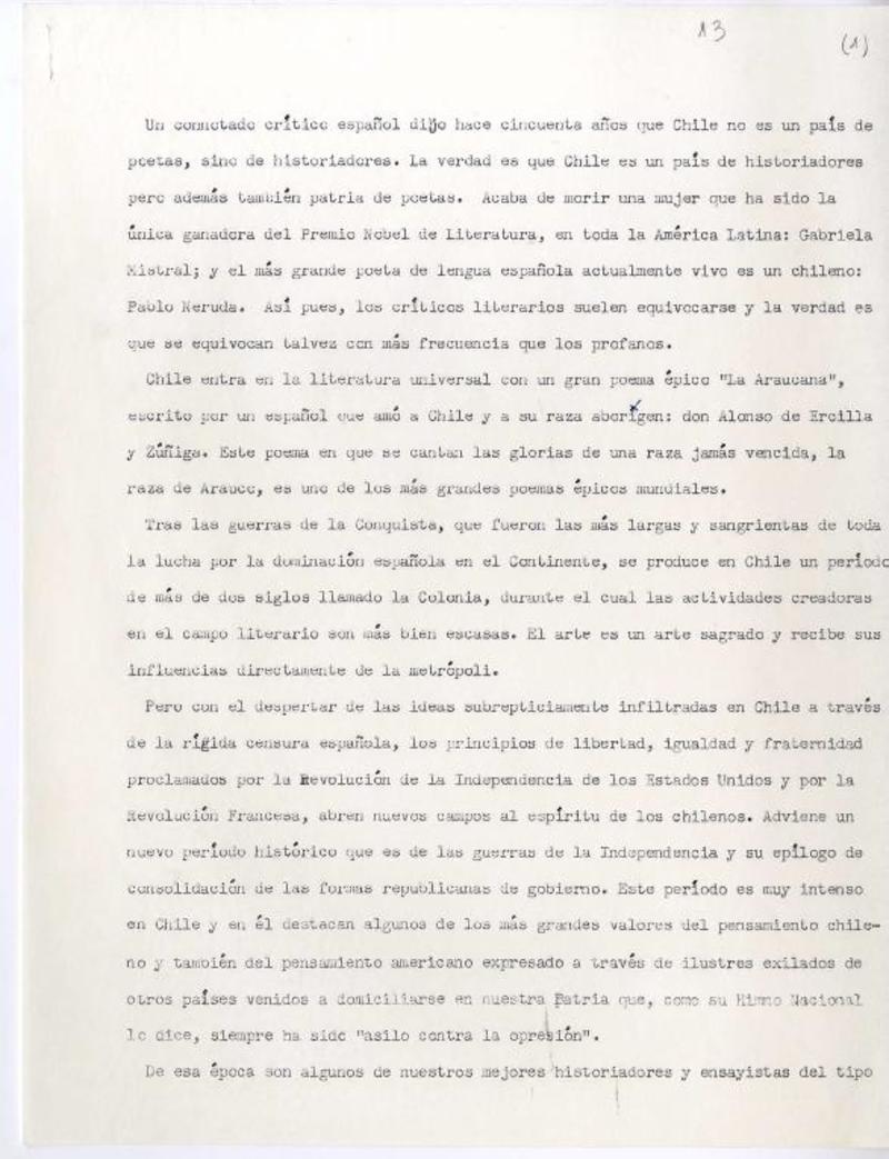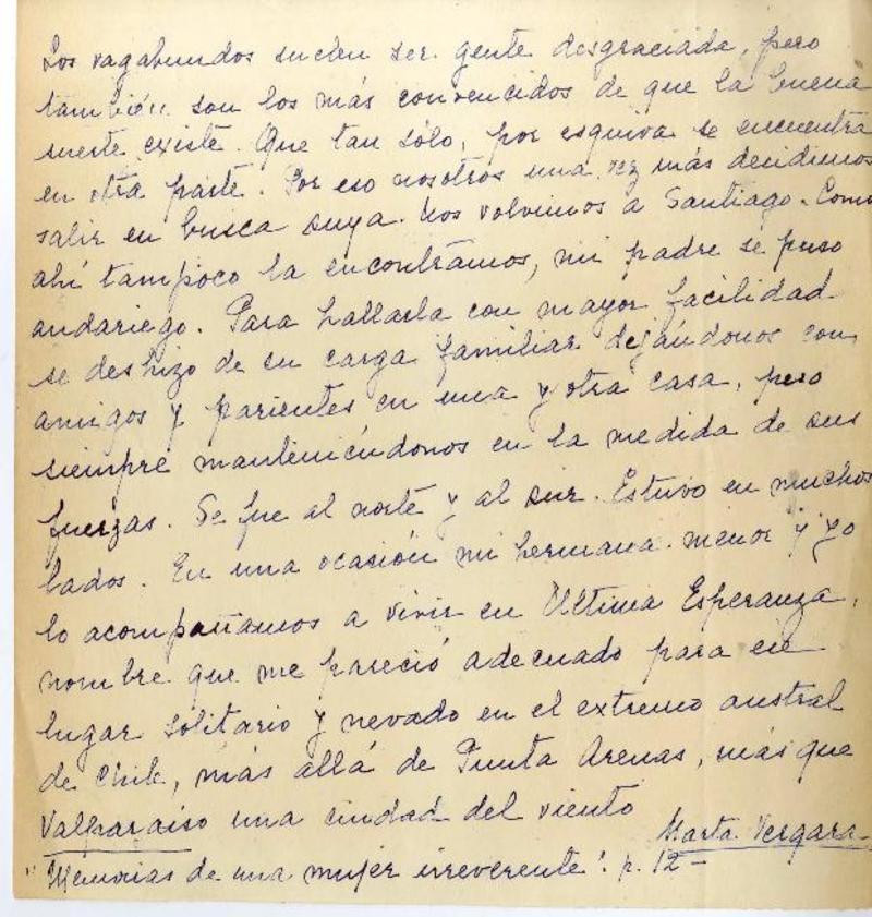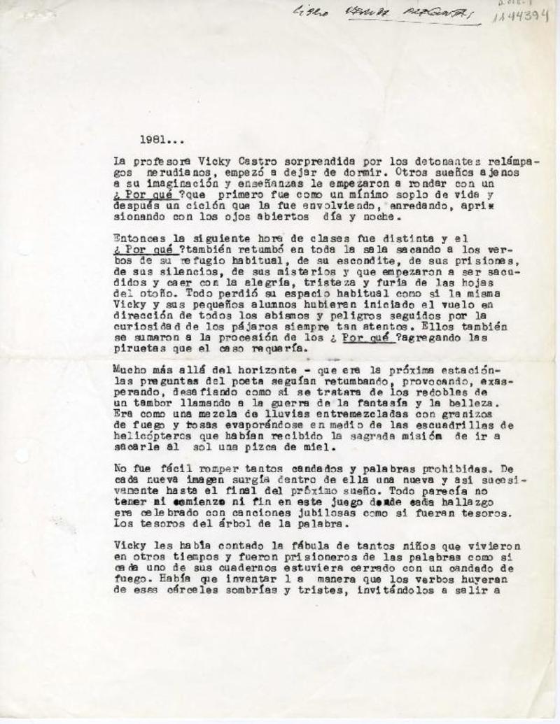 Castro, Vicky - Manuscritos chilenos - Neruda, Pablo - Testimonios