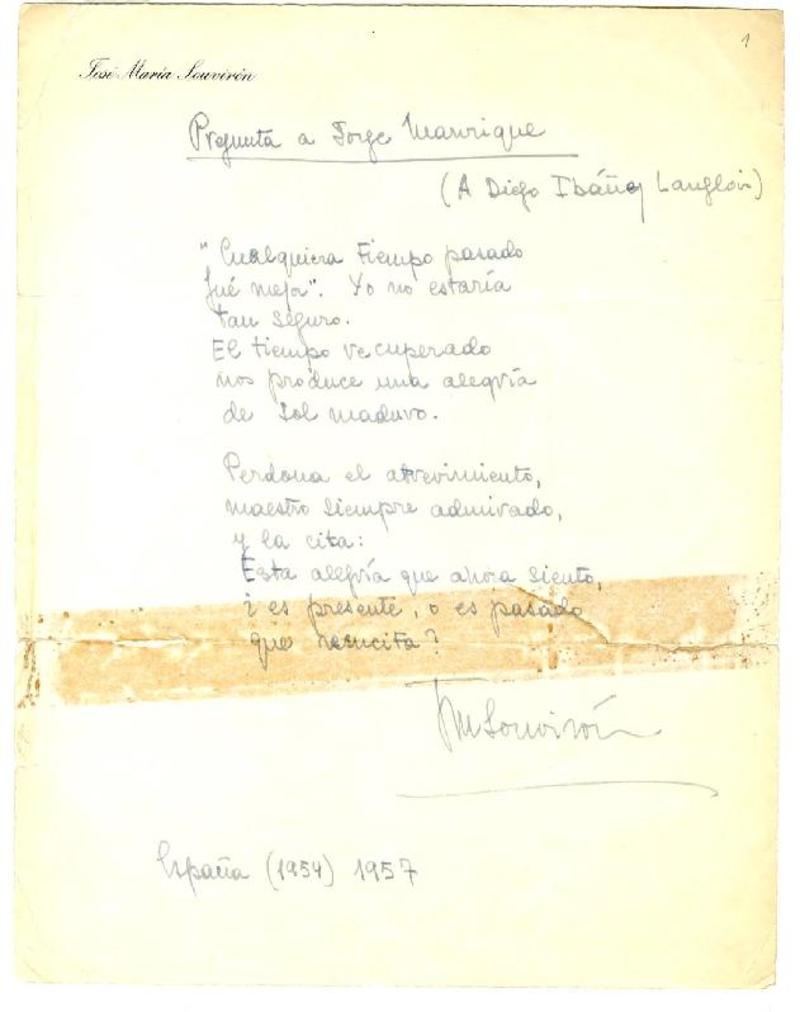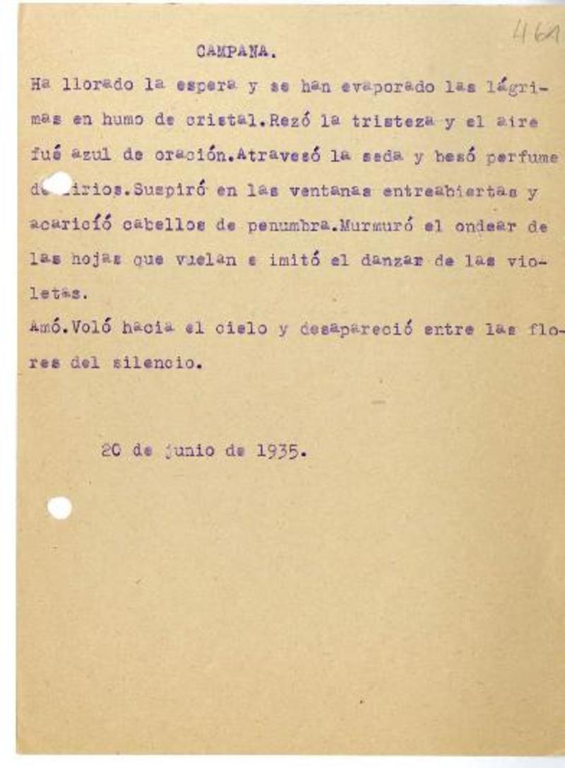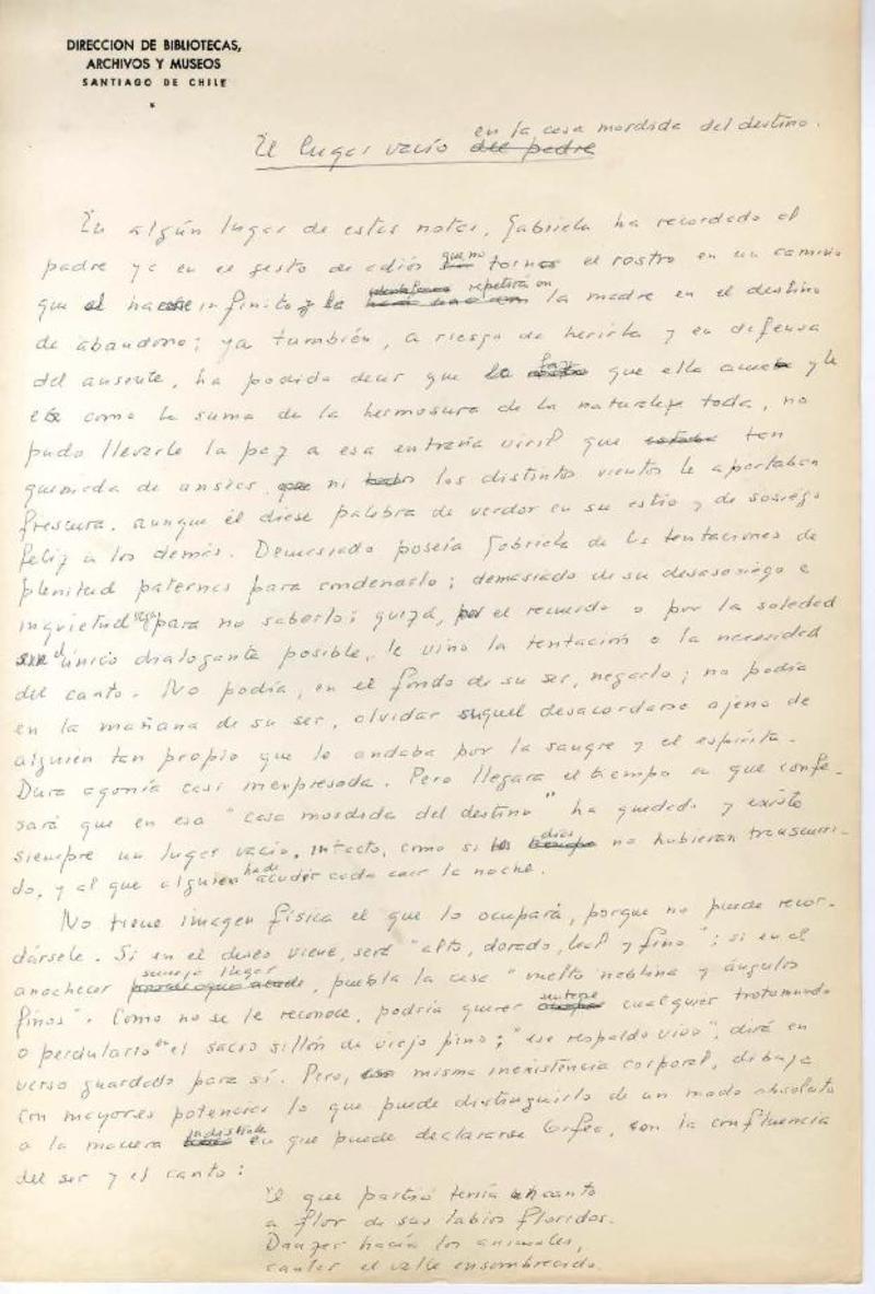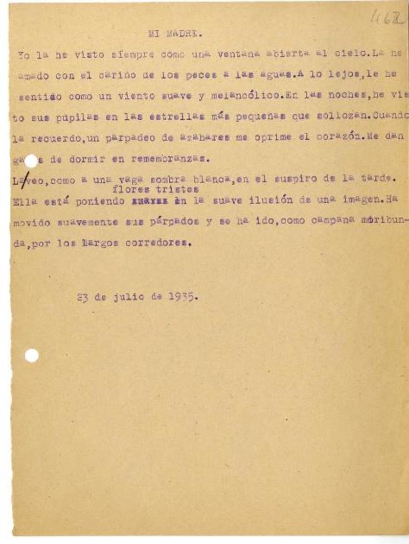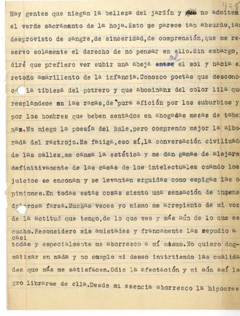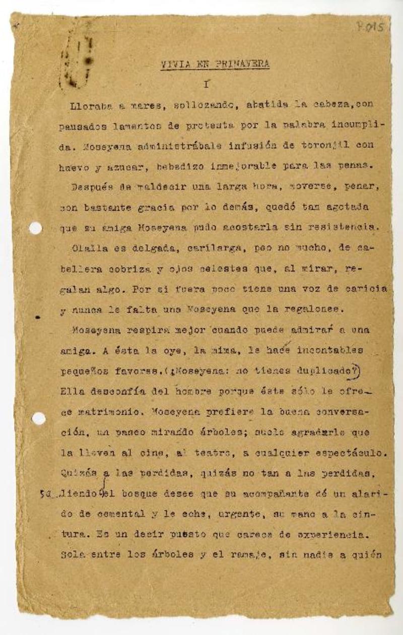 Vivía en primavera [manuscrito] José Santos González Vera.