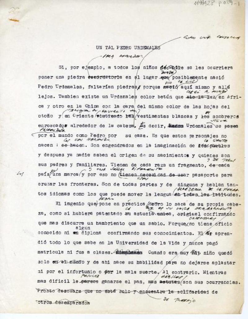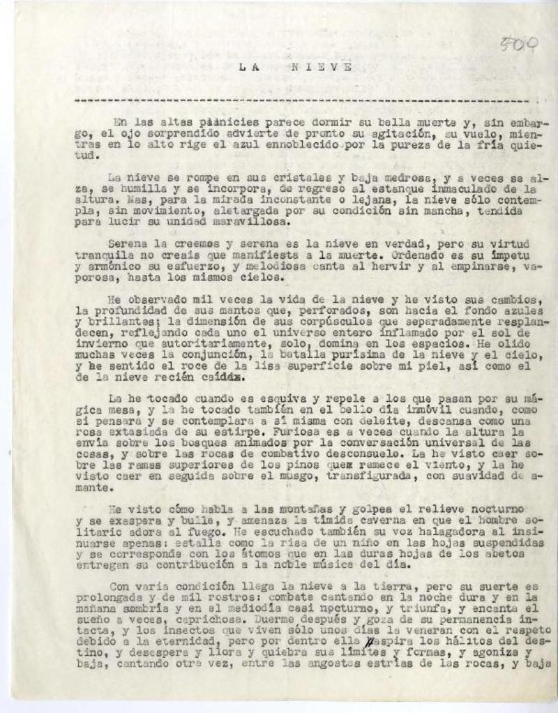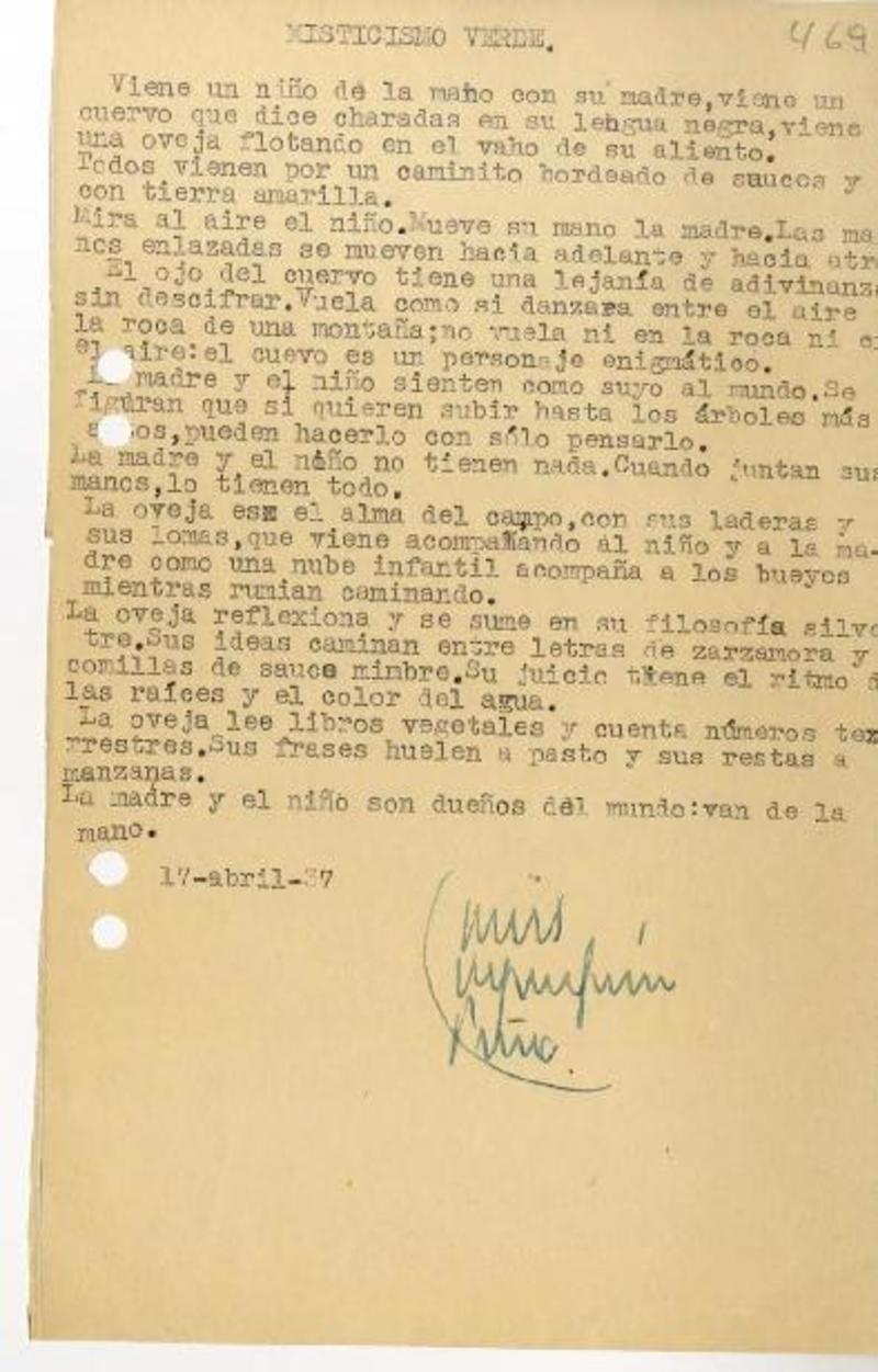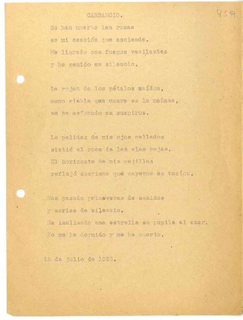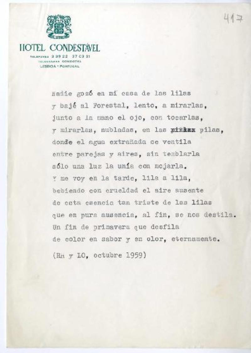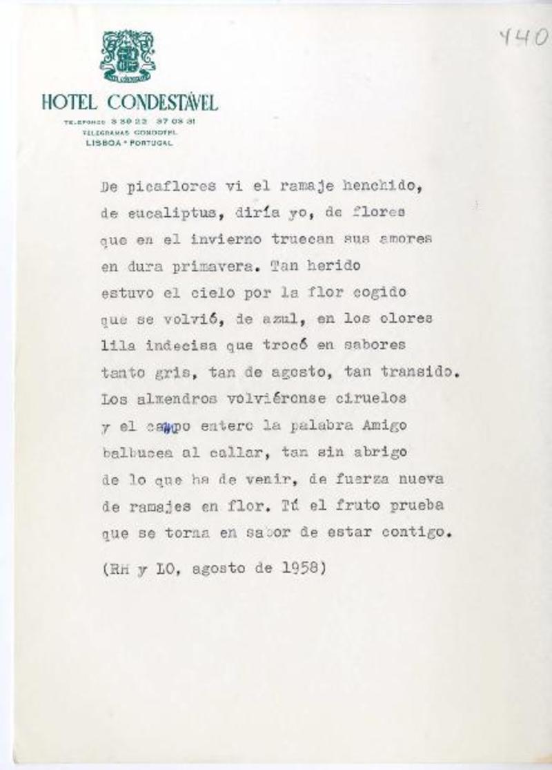 Vivía en primavera [manuscrito] José Santos González Vera.