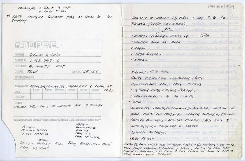 [Agenda de almuerzos] [manuscrito] Rosamel del Valle.