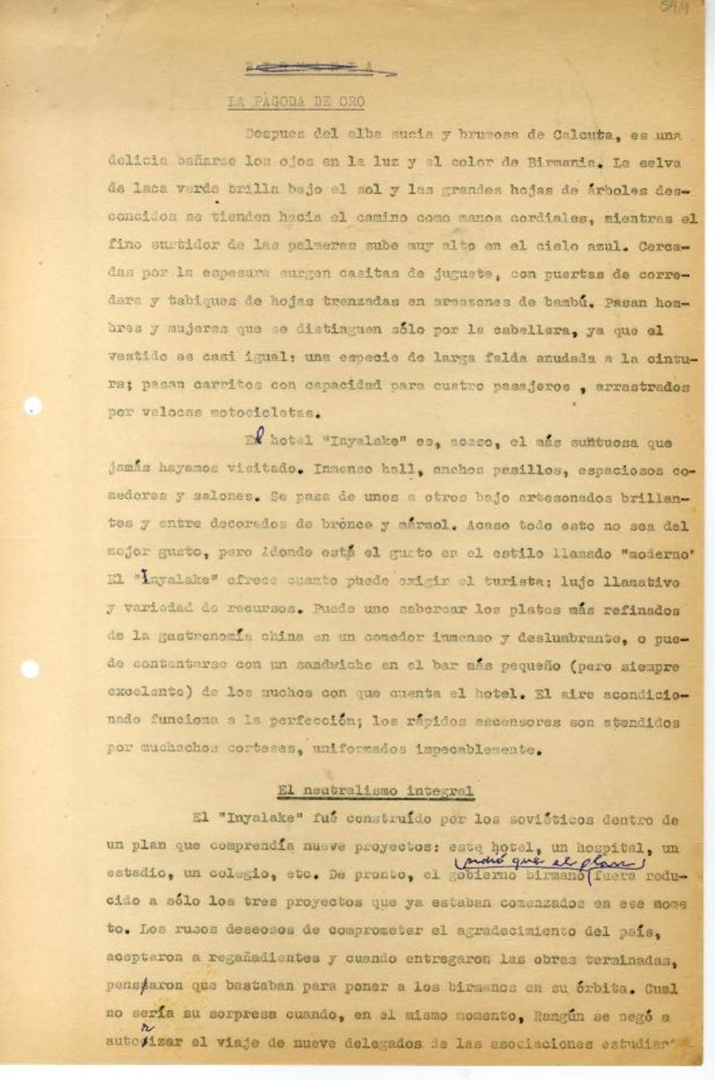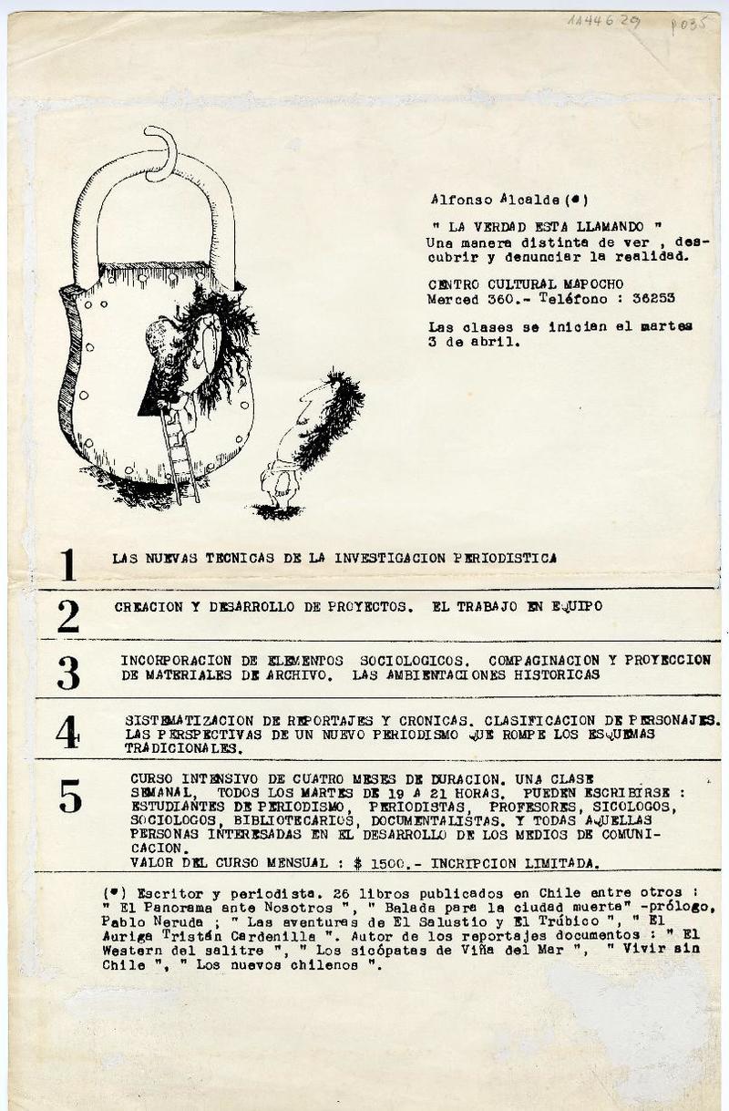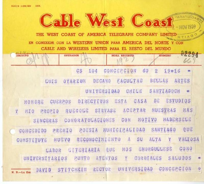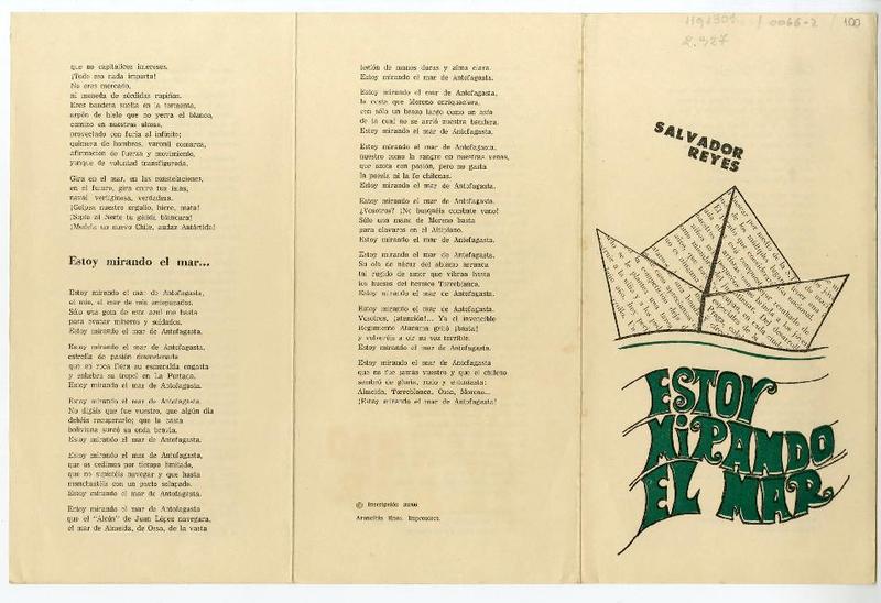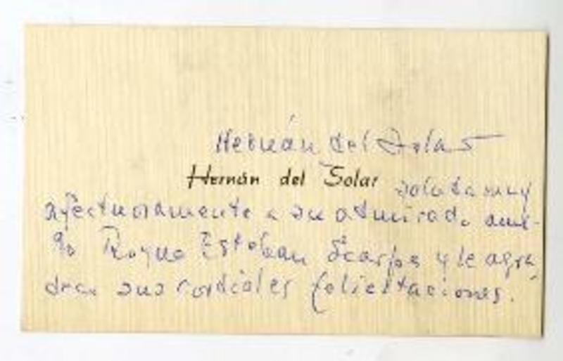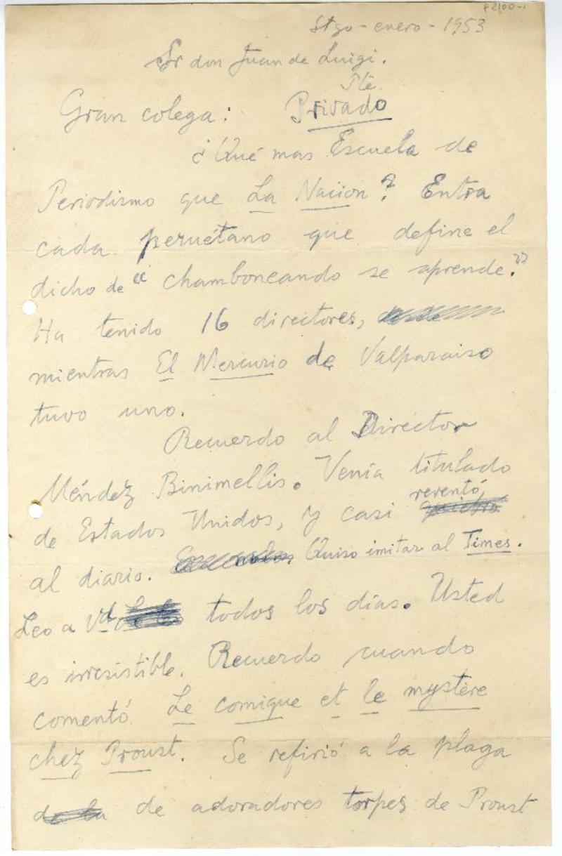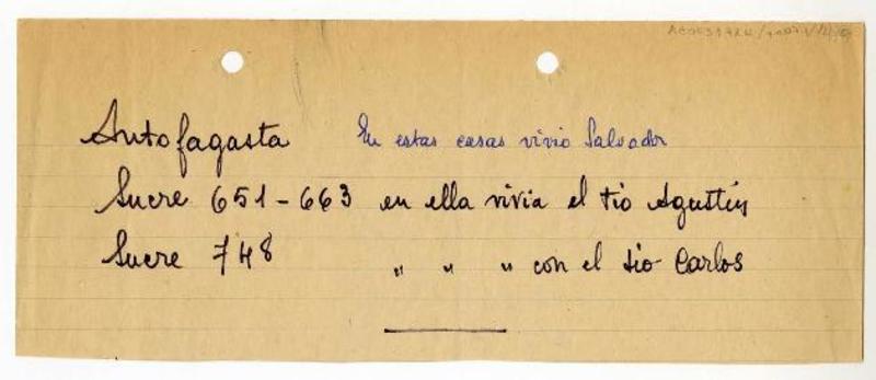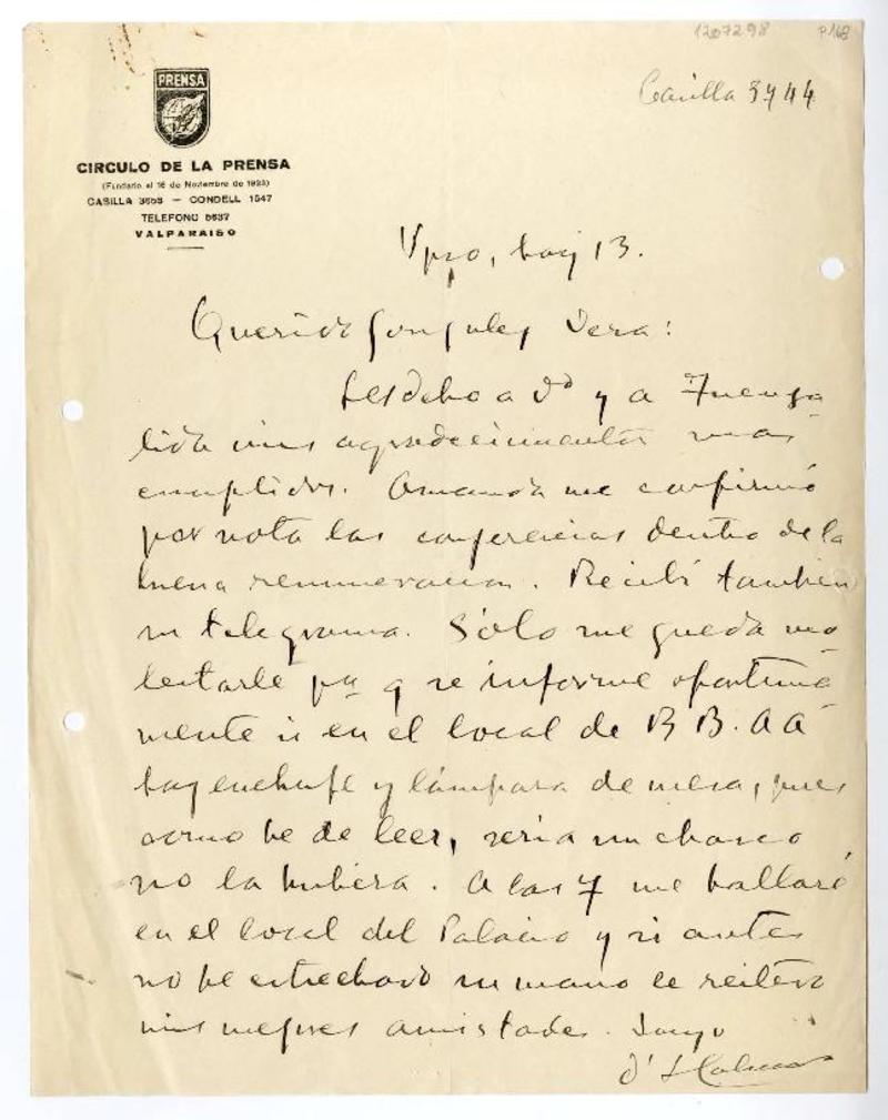 Valparaíso, Chile [a] Salvador Reyes Carné, 1952 enero, [manuscrito] Círculo de la Prensa de Valparaíso (Chile).